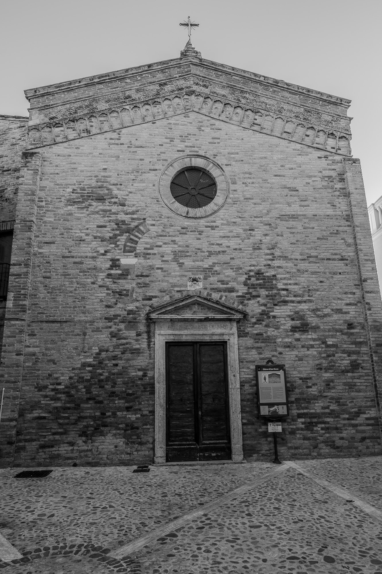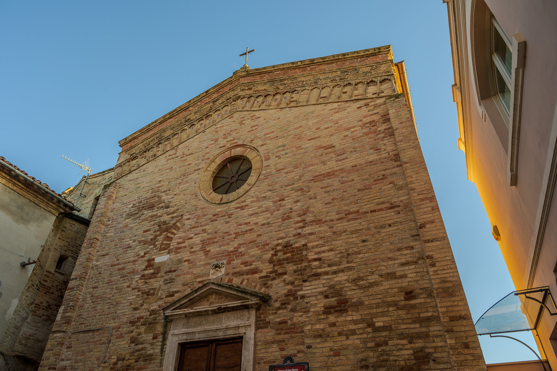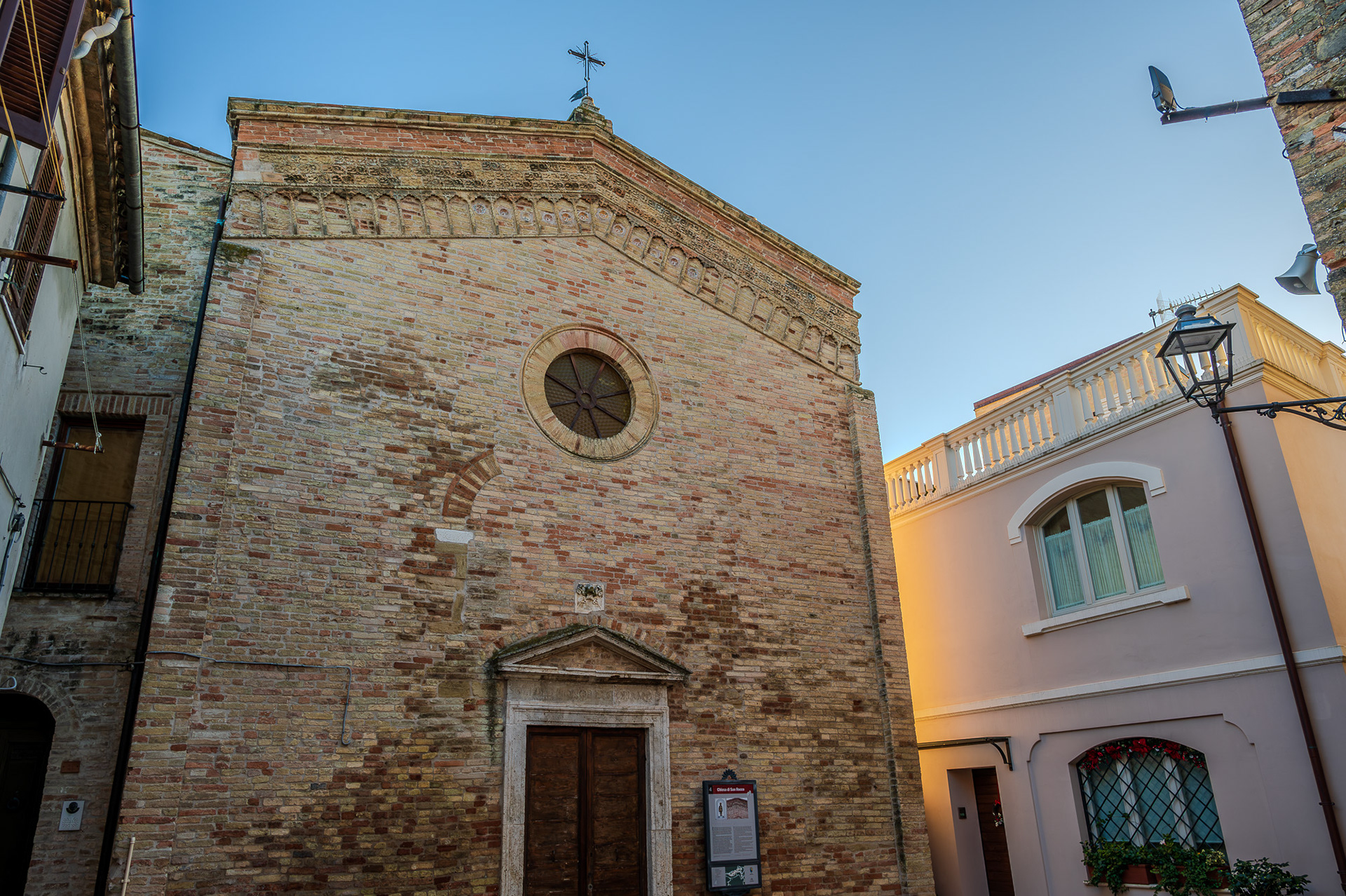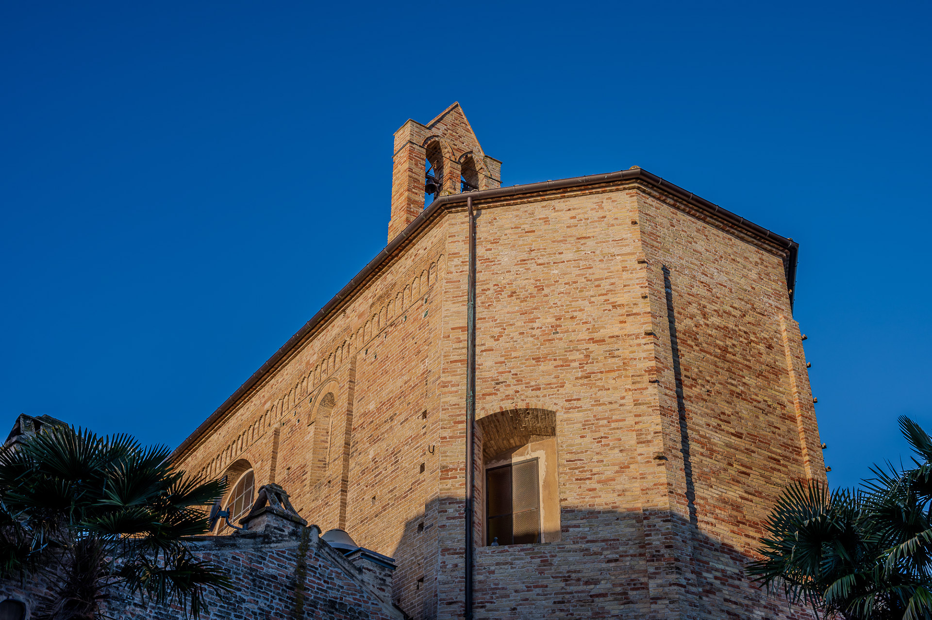 Church of Sant'Agostino. the Polyptych by Vittore Crivelli. The building is entirely made of brick and has two entrances. The interior has a single room, covered by wooden trusses.