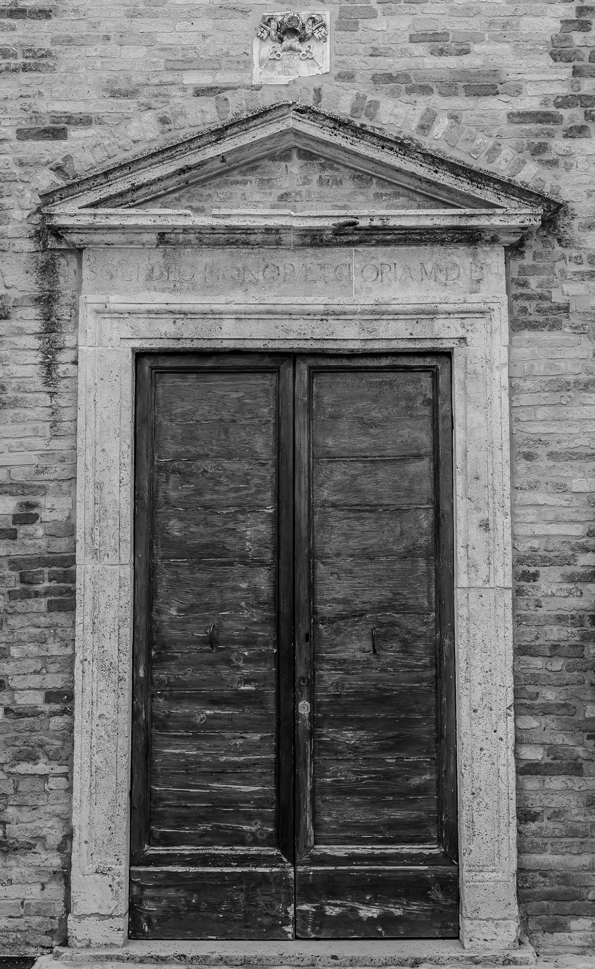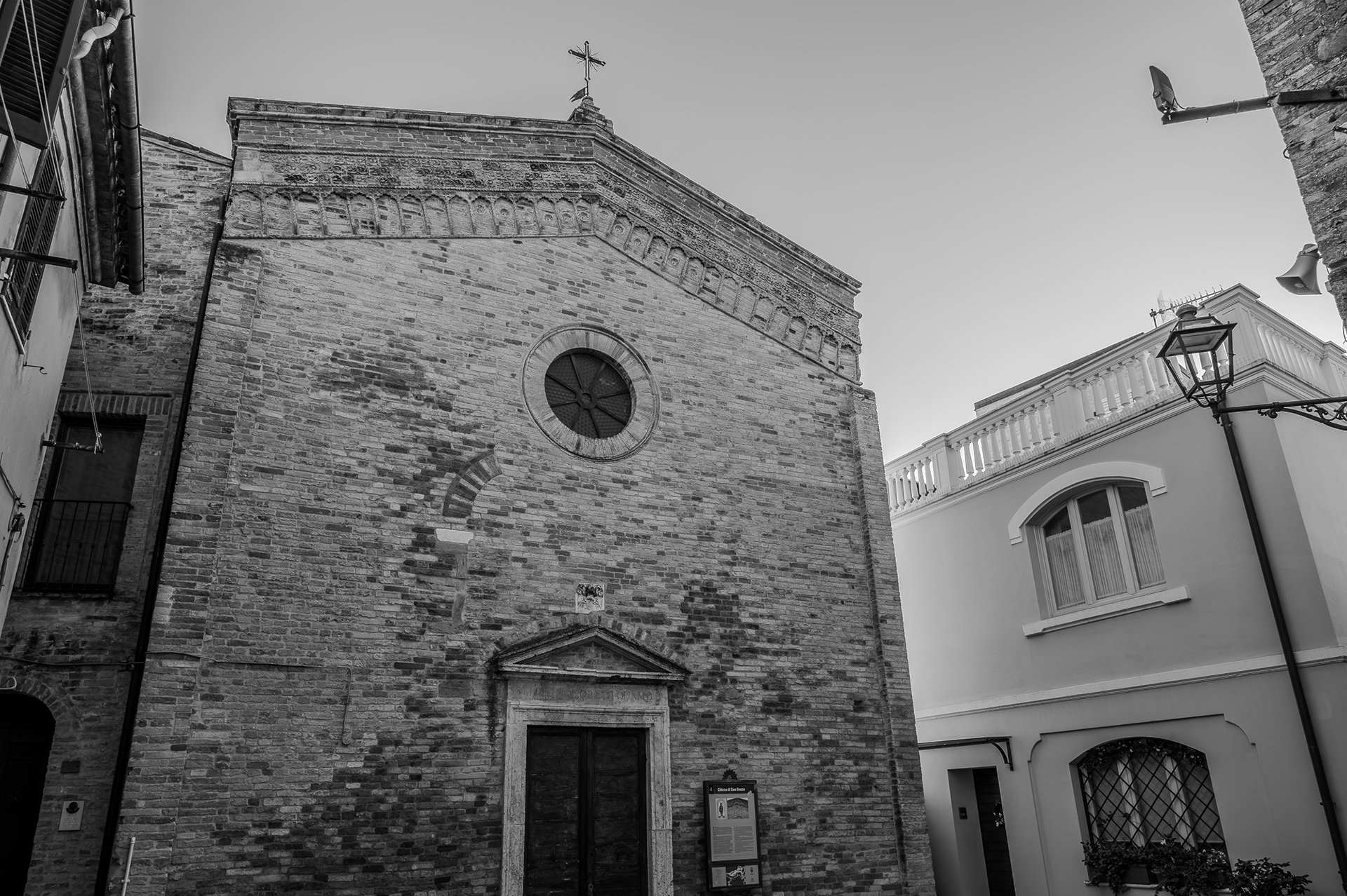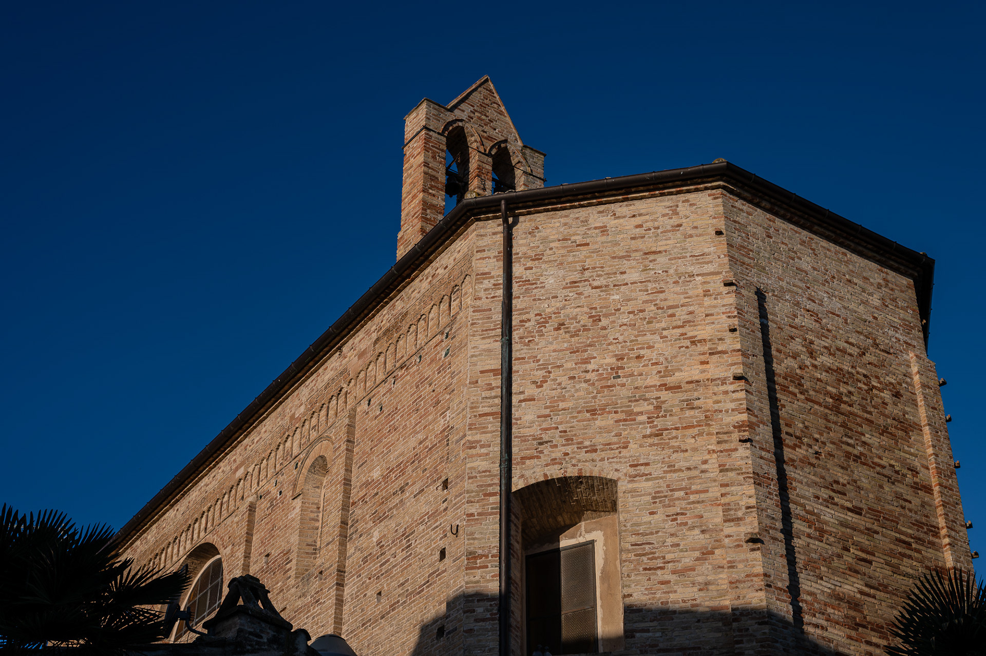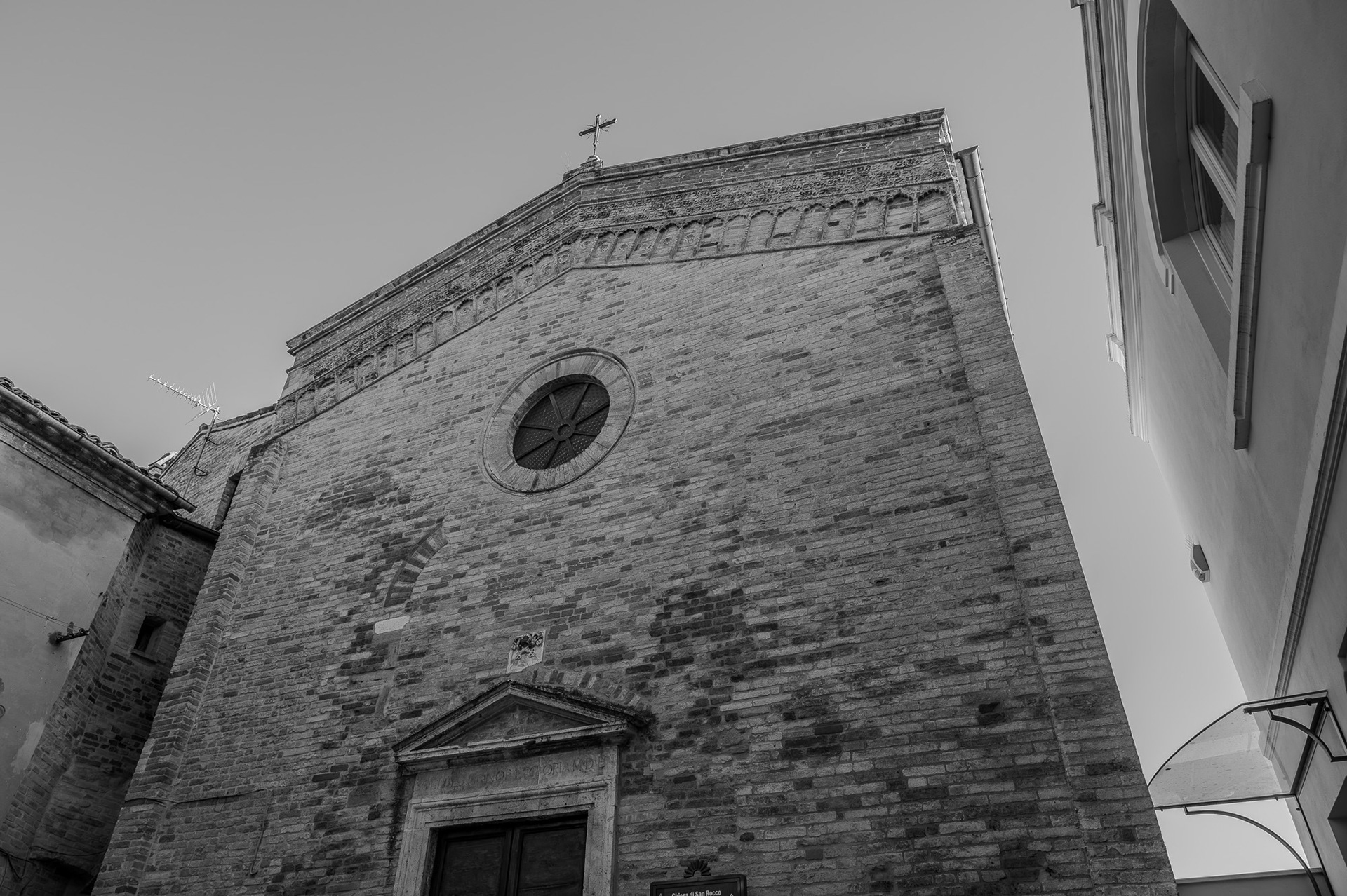 Church of Sant'Agostino. the Polyptych by Vittore Crivelli. The building is entirely made of brick and has two entrances. The interior has a single room, covered by wooden trusses.