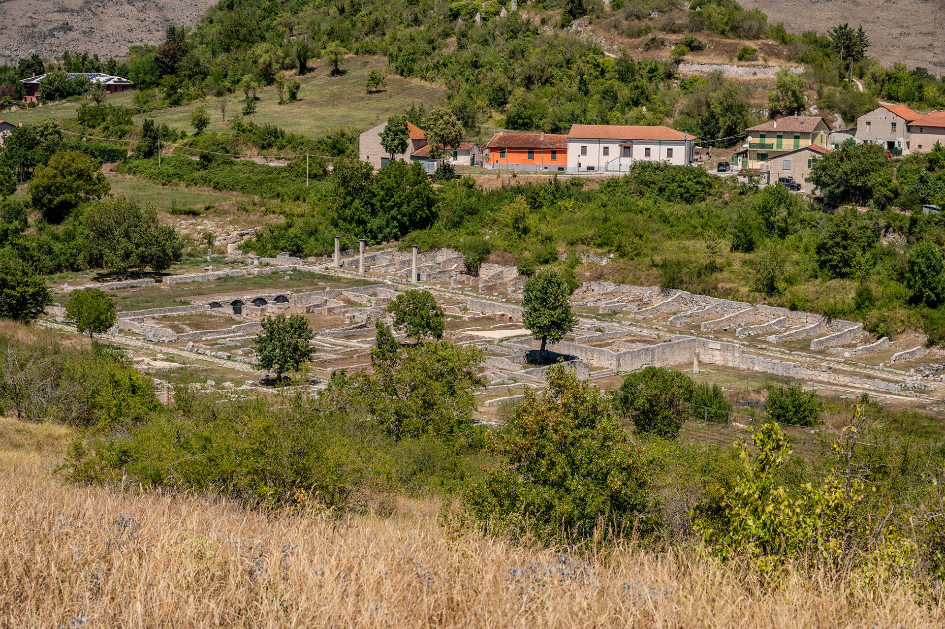Alba Fucens is a site that arose in the 4th century BC in an elevated and well-fortified position, on approximately 34 hectares at 966 m above sea level, on the slopes of Mount Velino in Abruzzo.