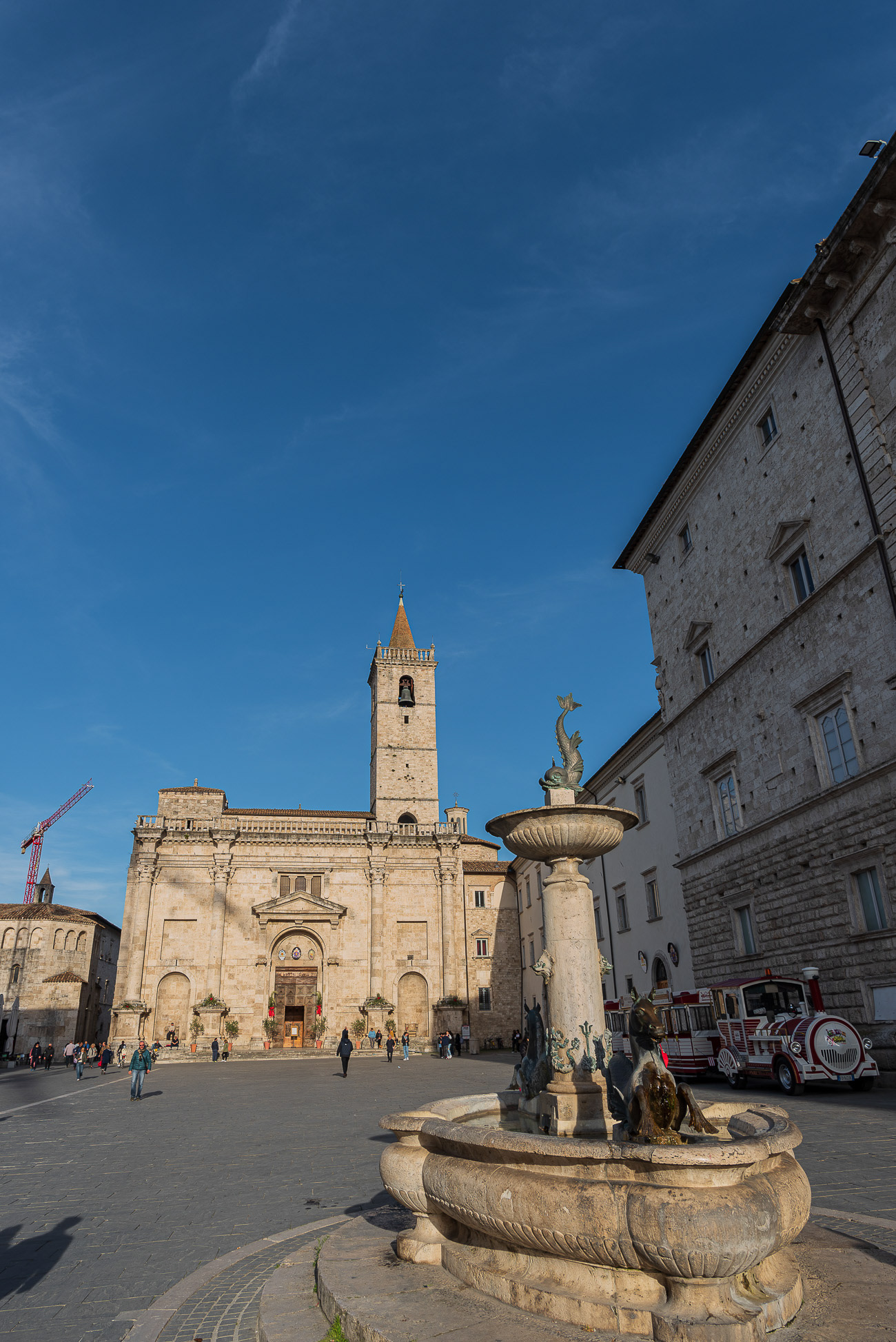 The city's cathedral, dedicated to the patron saint, stands on the site of a Roman public building, perhaps the Basilica del Foro, and is the result of multiple construction events that substantially range from the 11th to the 16th century. The main facade created by Cola dell'Amatrice opens onto Piazza Arringo, while the two side facades date back to the end of the 15th century. The interior, with three naves divided by polygonal pillars, from the end of the fifteenth century, houses, among the various works, in the central apse a late Gothic wooden choir from the first half of the fifteenth century, a wooden pulpit from around 1660; in the Chapel of the Sacrament the Polyptych of Sant'Emidio by Carlo Crivelli, the imposing decorative cycle by Cesare Mariani, and the crypt of Sant'Emidio, built in the mid-11th century which houses, in a 4th century sarcophagus, the relics of the patron saint of the city.