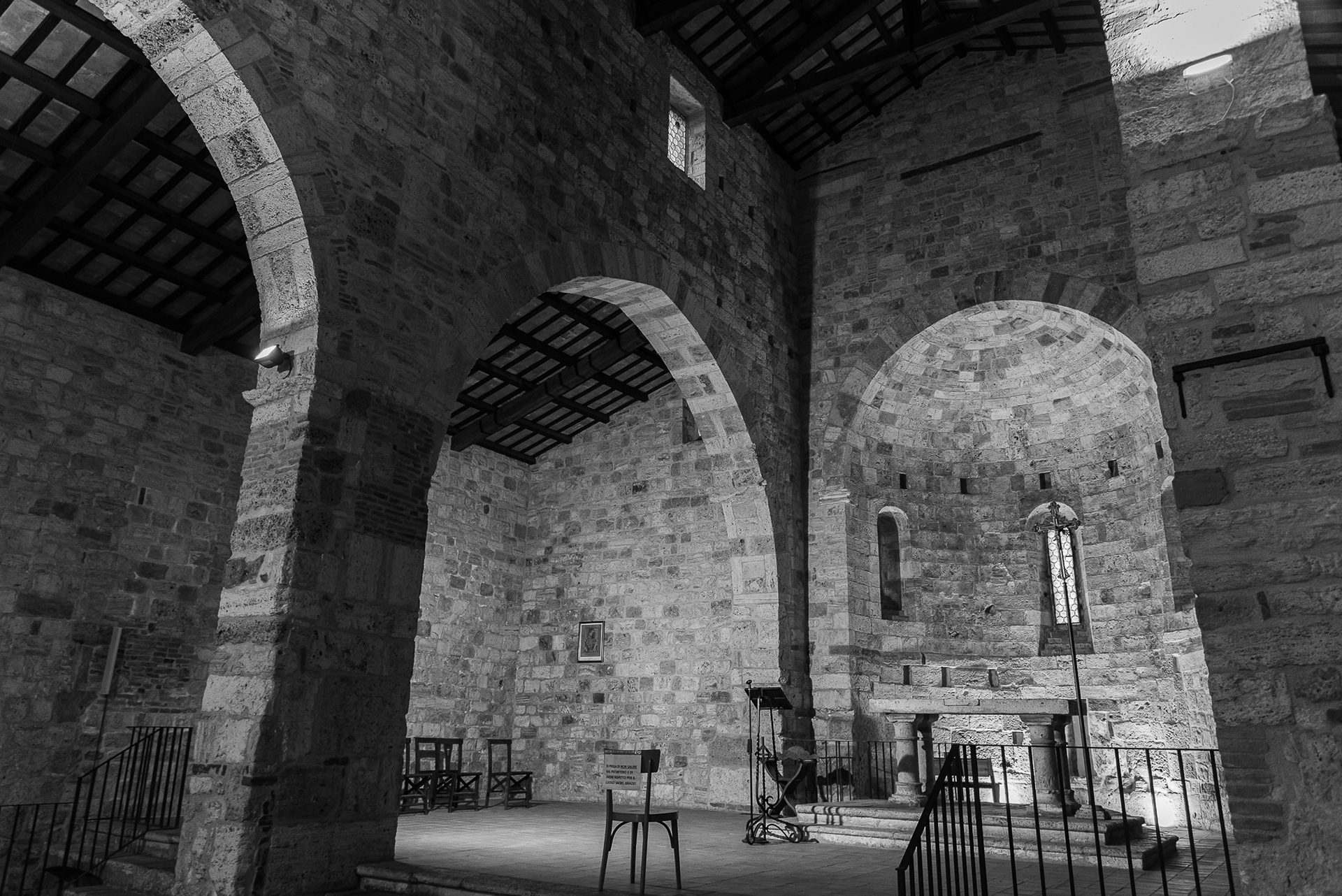 Church of Sant'Agostino. the Polyptych by Vittore Crivelli. The building is entirely made of brick and has two entrances. The interior has a single room, covered by wooden trusses.