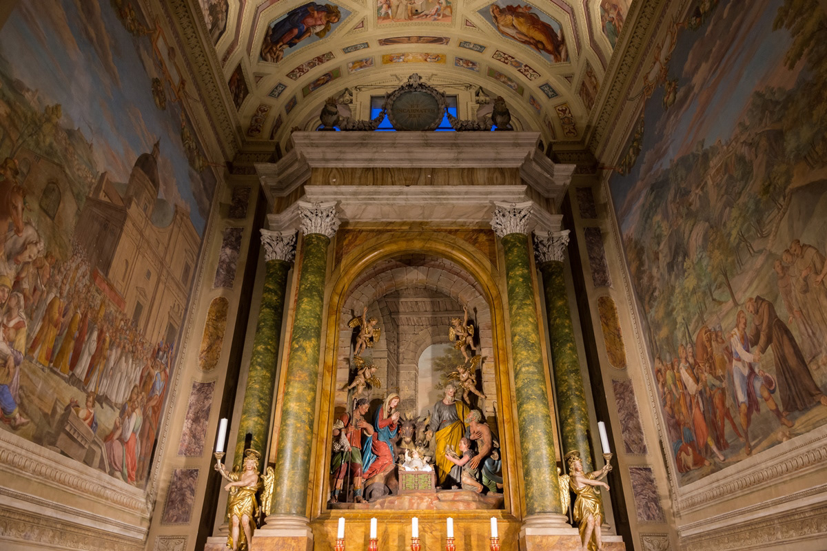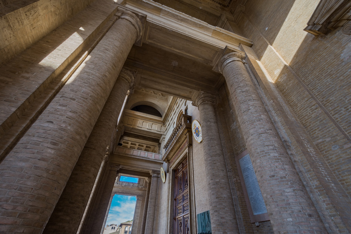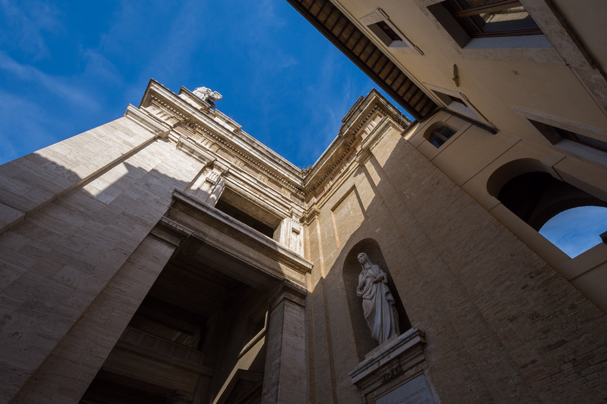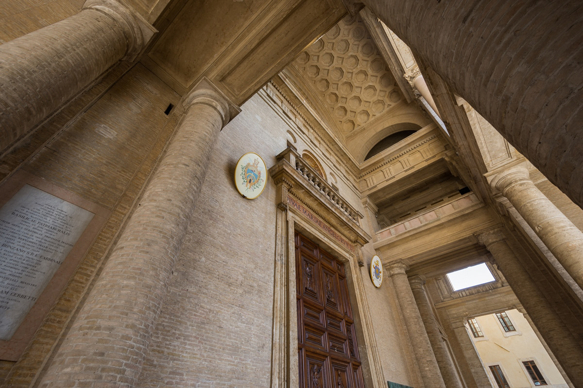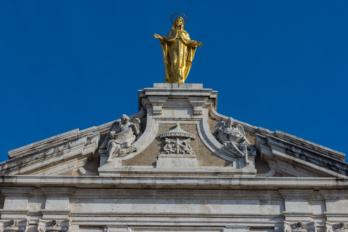 The Basilica of Santa Maria degli Angeli is a Roman Catholic rite church located in Assisi, in the hamlet of the same name. It was built on a project by Galeazzo Alessi and with interventions by Jacopo Barozzi da Vignola starting from the second half of the sixteenth century. On top of the facade of the temple stands the statue of the Madonna in gilded bronze modeled by Colasanti and cast by the Ferdinando Marinelli Artistic Foundry of Florence. It has the dignity of a papal basilica. Inside there is the Porziuncola, the chapel where Francis of Assisi gathered in prayer, and for this reason the center of Franciscan spirituality.