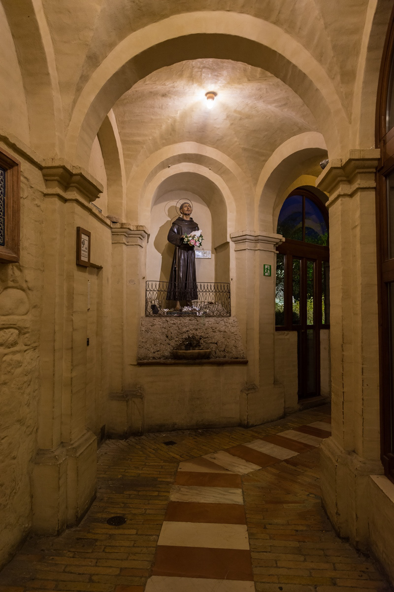 The church of San Damiano is an important Catholic place of worship in Assisi, located on the southern outskirts of the city. The first biographer of Saint Francis, Tommaso da Celano, in the Life before him, narrates that in 1205 Saint Francis of Assisi after wandering in the countryside, enters the church of San Damiano, in the countryside of Assisi. Praying in front of the crucifix present inside the church, and after having insistently asked for light for his path, faith and hope, he hears him speak and ask him three times to "repair his house which is in ruins". This event will have a profound impact on the life of the saint who, right here, in the last years of his life, composed the Canticle of creatures. The crucifix has a very particular aspect: Christ on the cross does not show suffering, but seems almost to stand up to communicate a message of hope with open arms. Between 1211 and 1212 St. Clare, following a prophecy of St. Francis, founded an order of cloisters who resided there until 1260. The same church, according to Catholic historiography, was the protagonist of the main miracles of the saint: the multiplication of bread, the gift of oil, the escape of the Saracens from the cloister, some exorcisms and healings, the appearance of the cross on bread in front of the pope.