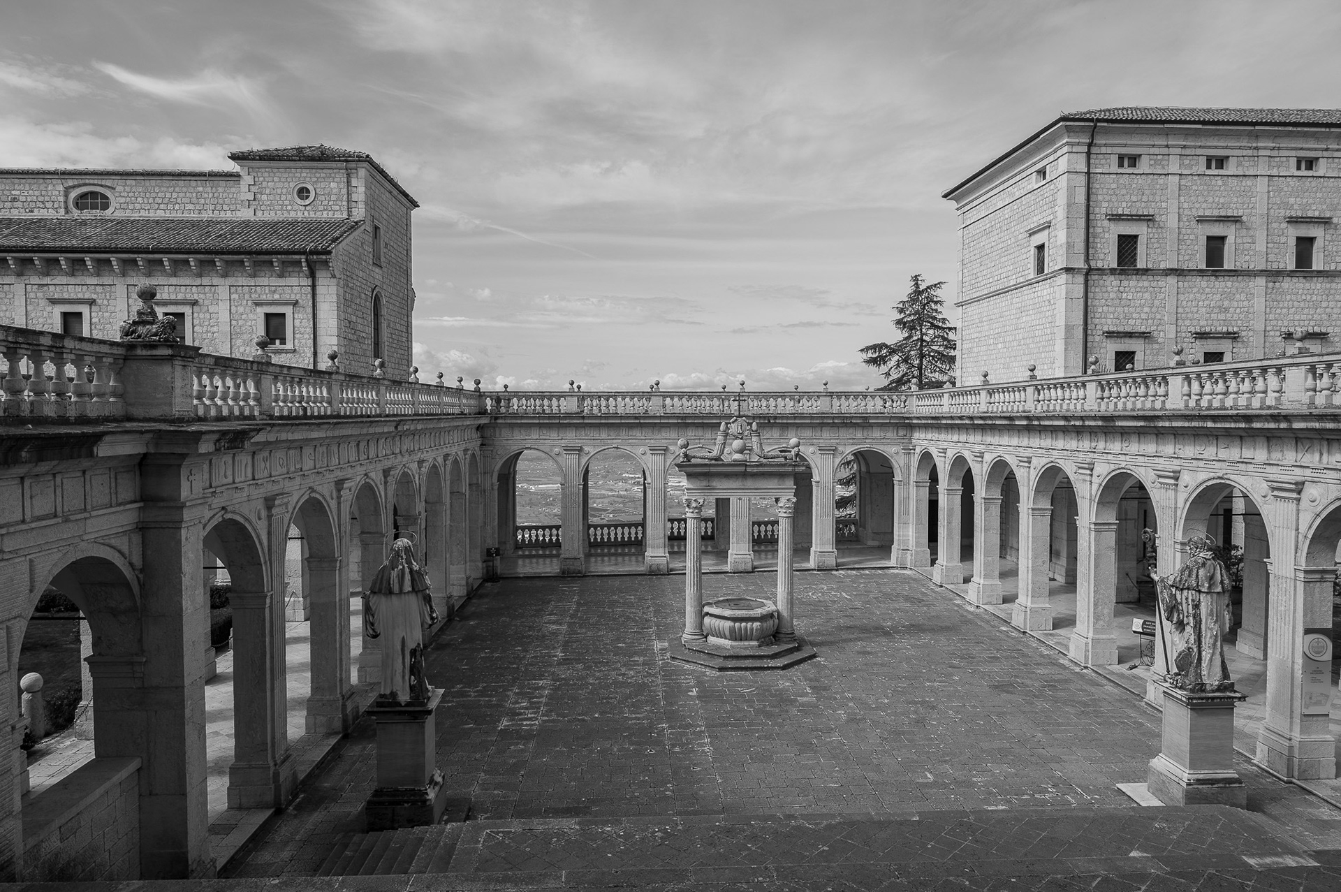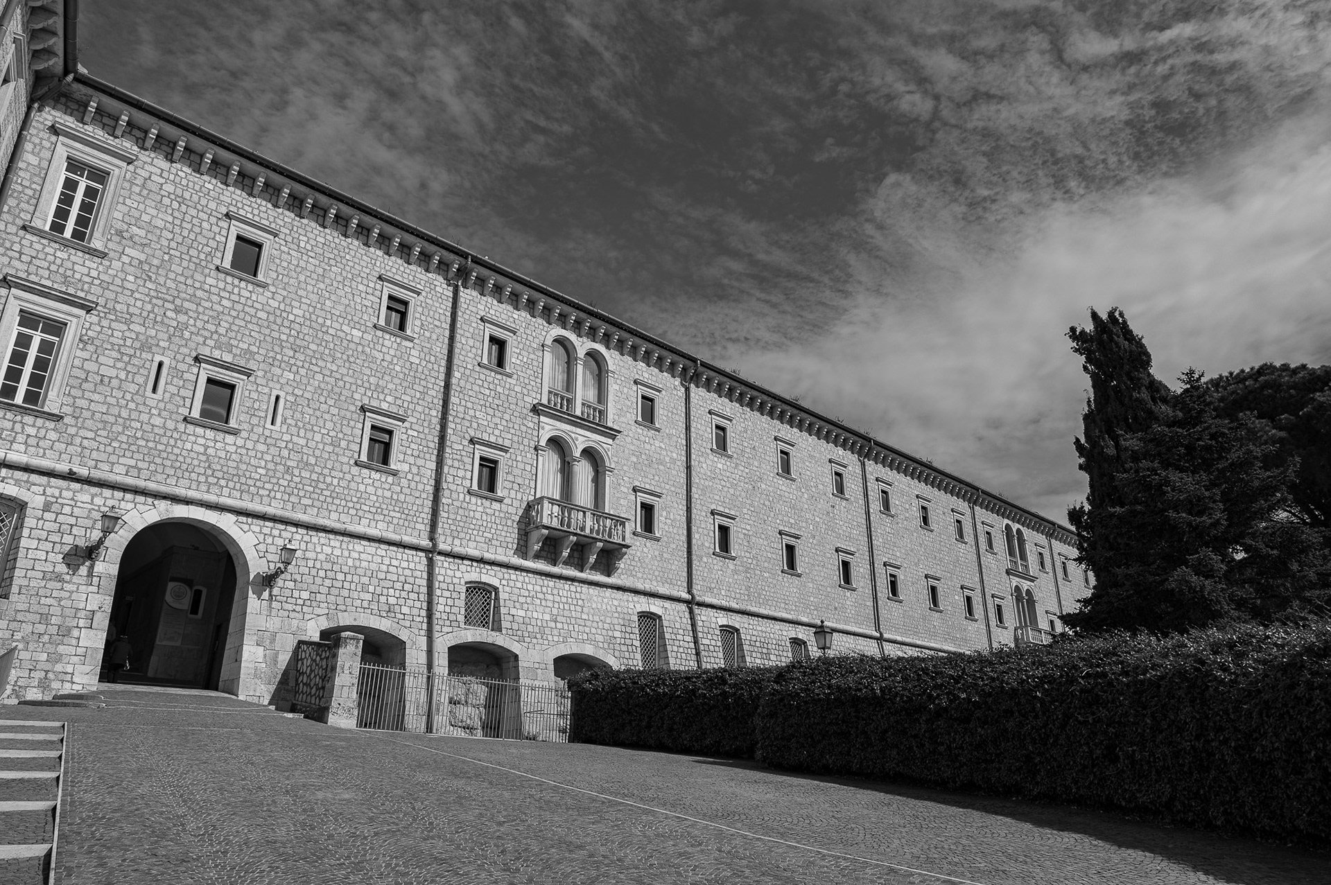 The abbey of Montecassino is a Benedictine monastery located on the top of Montecassino, in Lazio. It is the oldest monastery in Italy together with the monastery of Santa Scolastica.