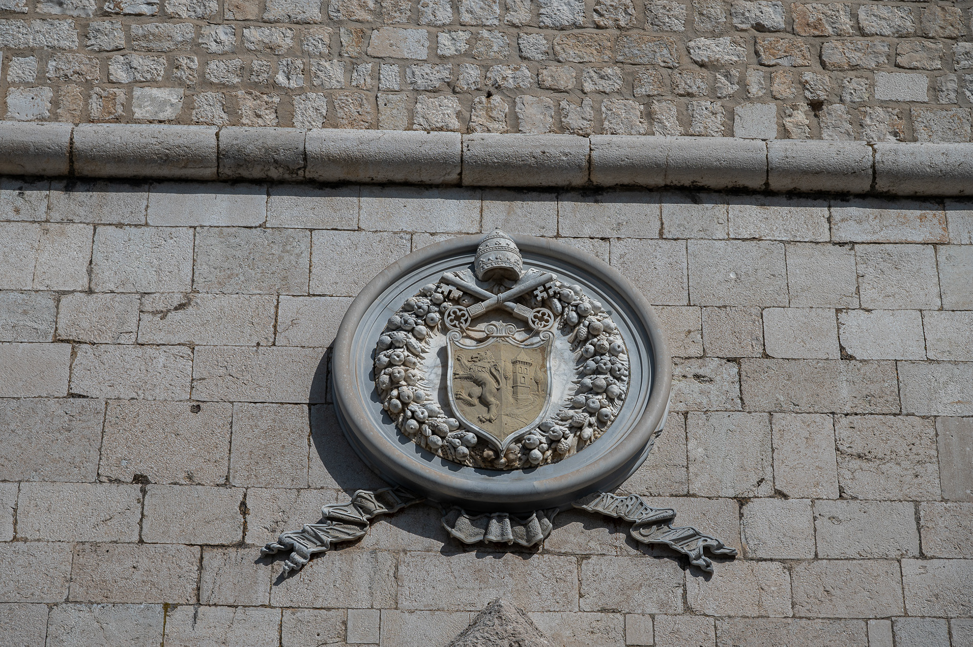 Anagni Cathedral stands on the summit of the acropolis and is the result of several construction phases. The Romanesque style (1072-1104) was joined by the Gothic style around the mid-13th century. On one of the exterior walls is a statue of Pope Boniface VIII. In 1160, Alexander III pronounced the excommunication of Barbarossa here, and Pope Innocent IV was elected here. The interior is predominantly Gothic, and retains a Cosmatesque-style floor and the Caetani Chapel with a large tomb. The crypt contains a cycle of frescoes (1104-1255) depicting scenes from the Old and New Testaments. The cathedral also houses the reliquary of Saint Thomas Becket.