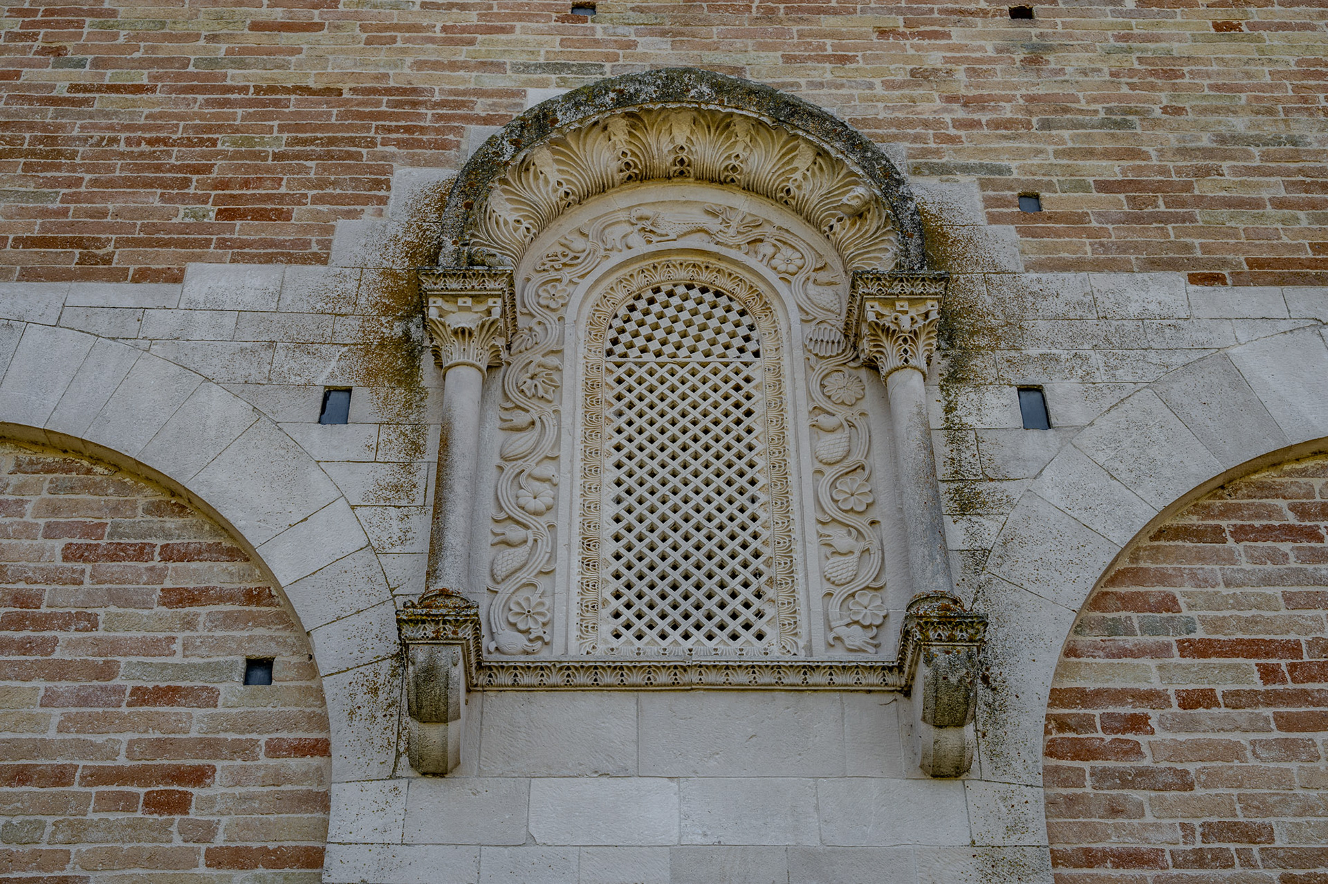 Begun in the 13th century, it was completed in the 15th century. The rose window has the head of the Baptist in the center. The three internal naves are divided by octagonal pillars