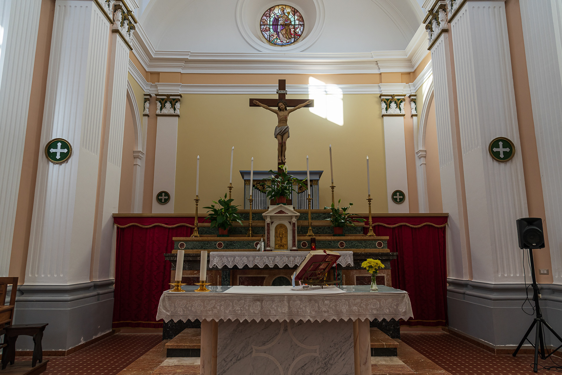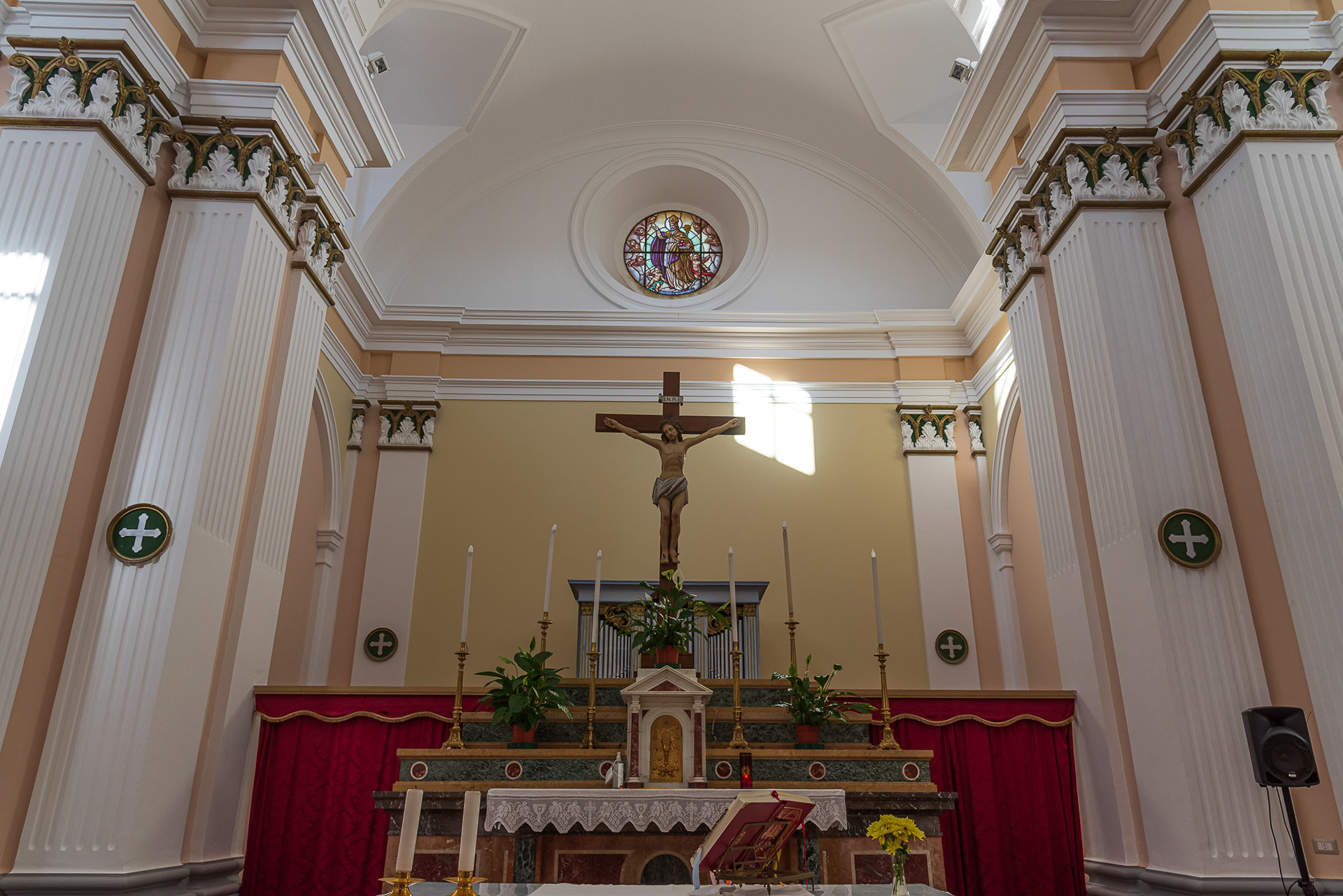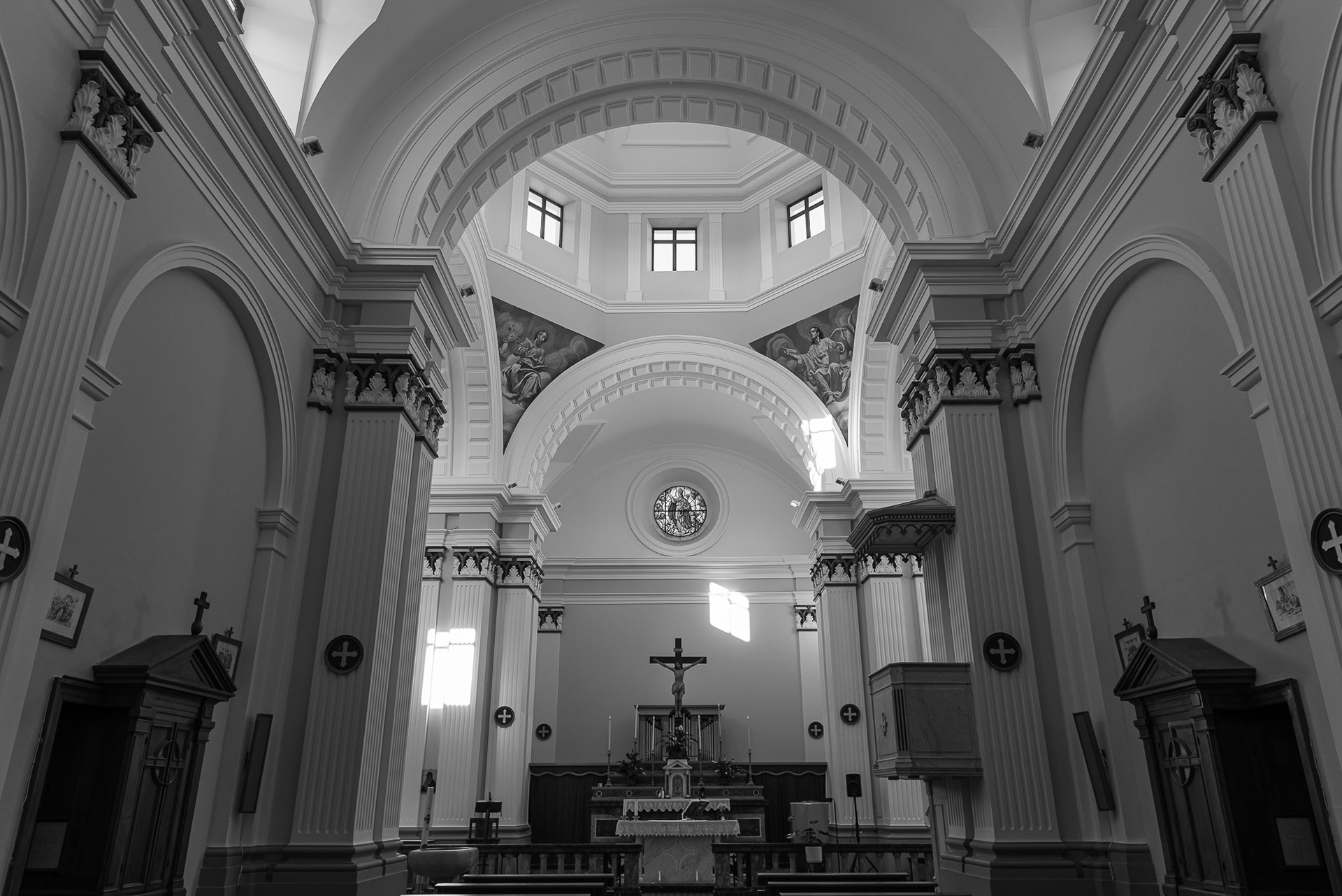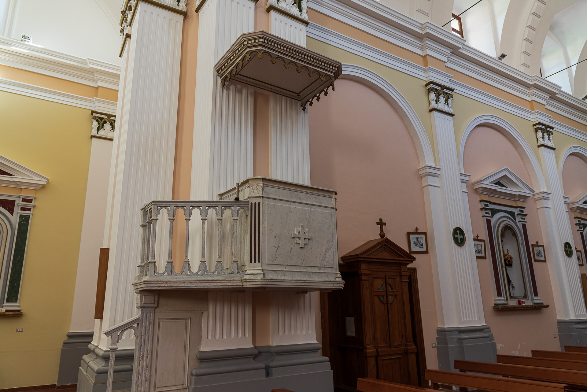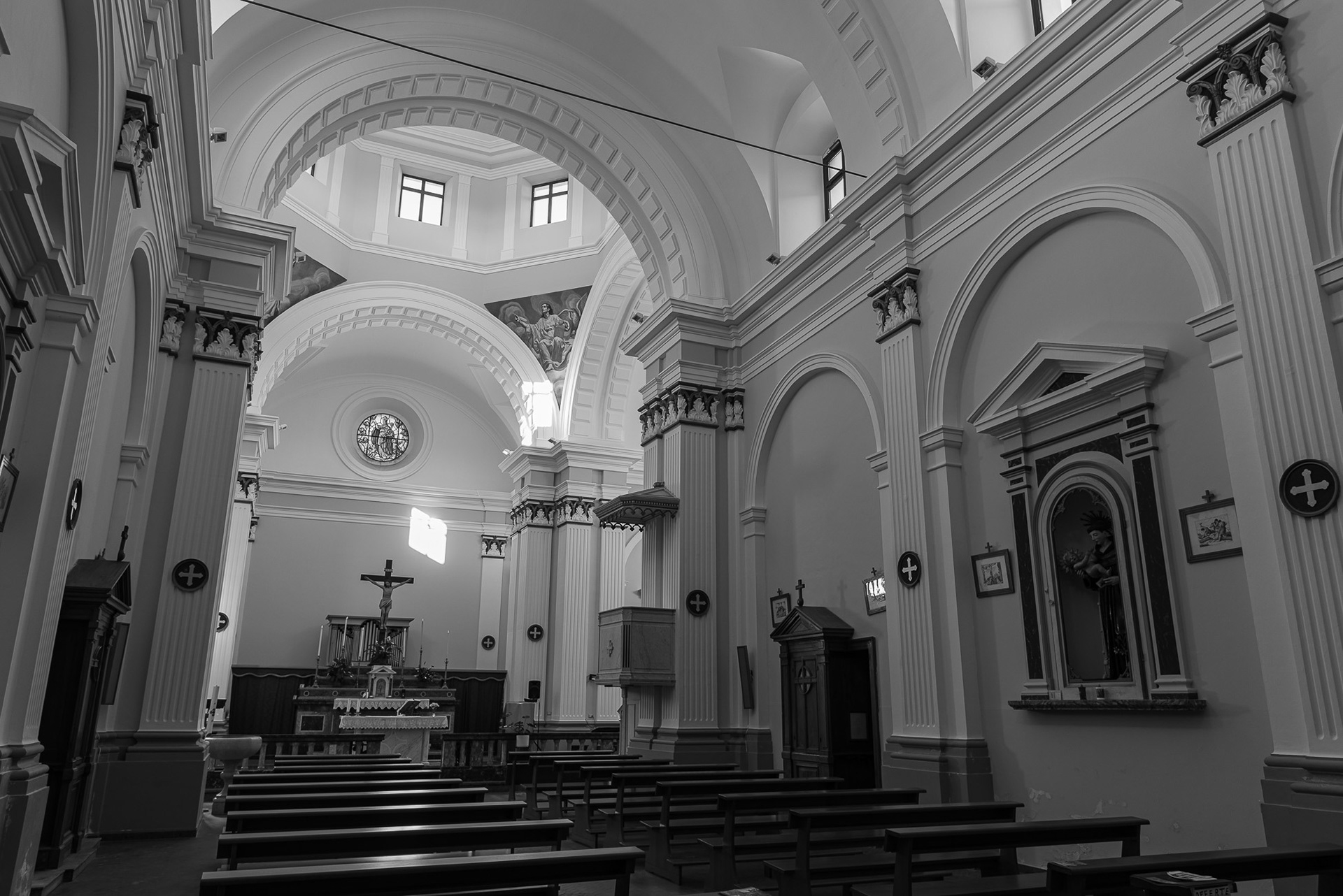 Mother church of San Bartolomeo Apostolo. Formerly dedicated to S. Maria Assunta in cielo. Its shape is a Latin cross, with three naves separated by two rows of columns.