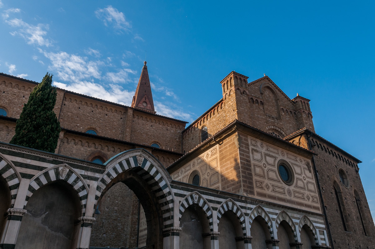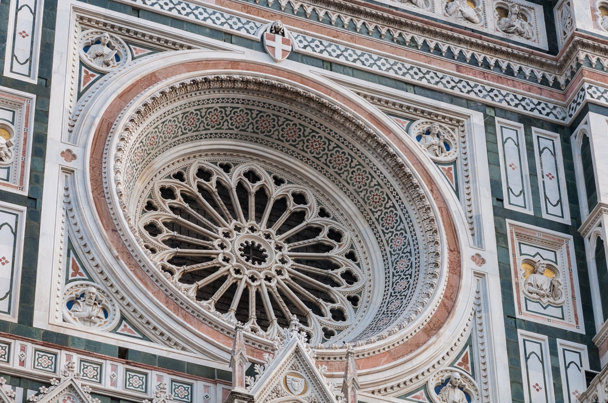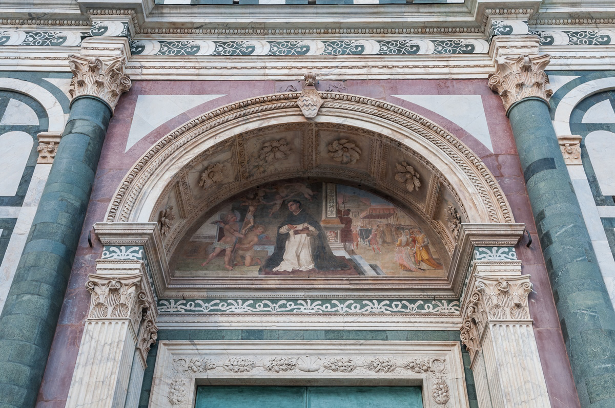 The church, with three naves, is built in white and green marble. It most likely dates back to the 6th century. It is one of the most important examples of religious architecture between the twelfth and fifteenth centuries in the region, with an elegant passage inside it between the large Romanesque-Lombard arches and the impetus of Gothic in the transept, most likely designed by the famous Giovanni Pisano , which inside will create a wooden crucifix and his last masterpiece, the Madonna della Cintola, in 1317. The relic of the sacred Cintola is kept there. The most important works are the external pulpit (built by Michelozzo and decorated by Donatello), the internal pulpit by Mino da Fiesole and Antonio Rossellino from 1472, the Madonna dell'Ulivo, the only work created together by the famous brothers Da Maiano, Giovanni, Benedetto and Giuliano. In the transept instead there are the frescoes by Filippo Lippi (in the Cappella Maggiore), one of the greatest expressions of the Italian Renaissance, the frescoes by Paolo Uccello (in the Cappella dell'Assunta), and by Agnolo Gaddi (in the Chapel of the sacred Cintola), all interior of a bronze gate made by some of the most important goldsmiths of the fifteenth century.