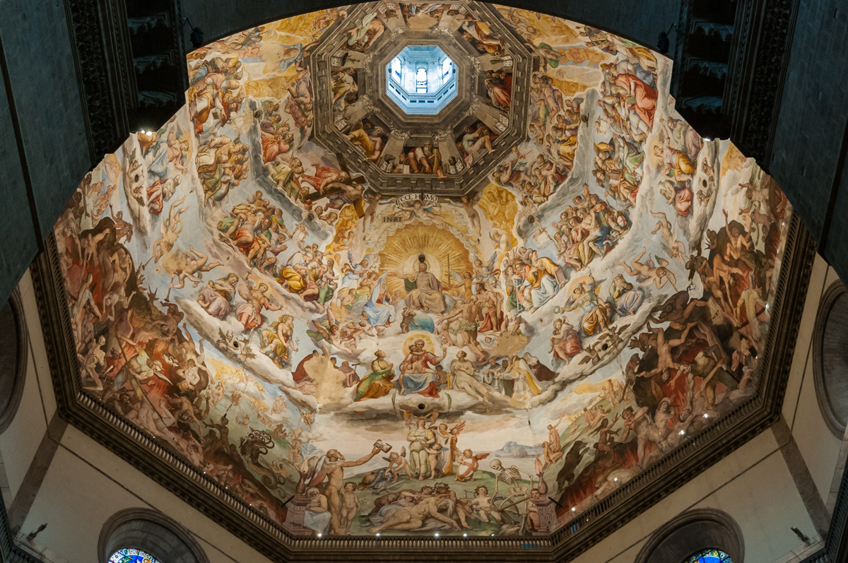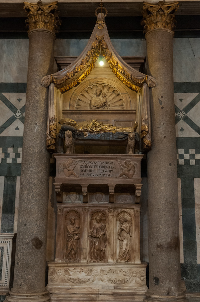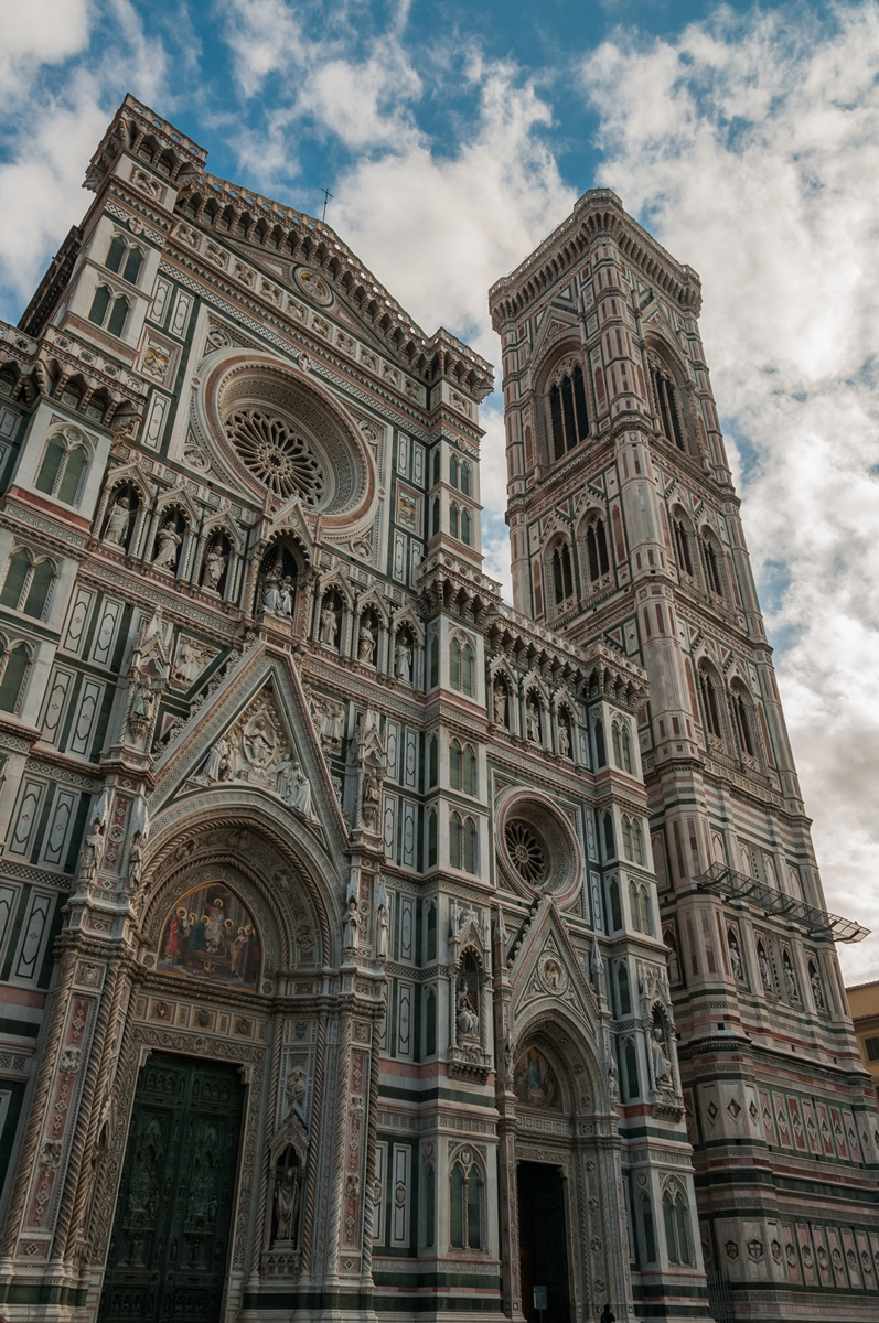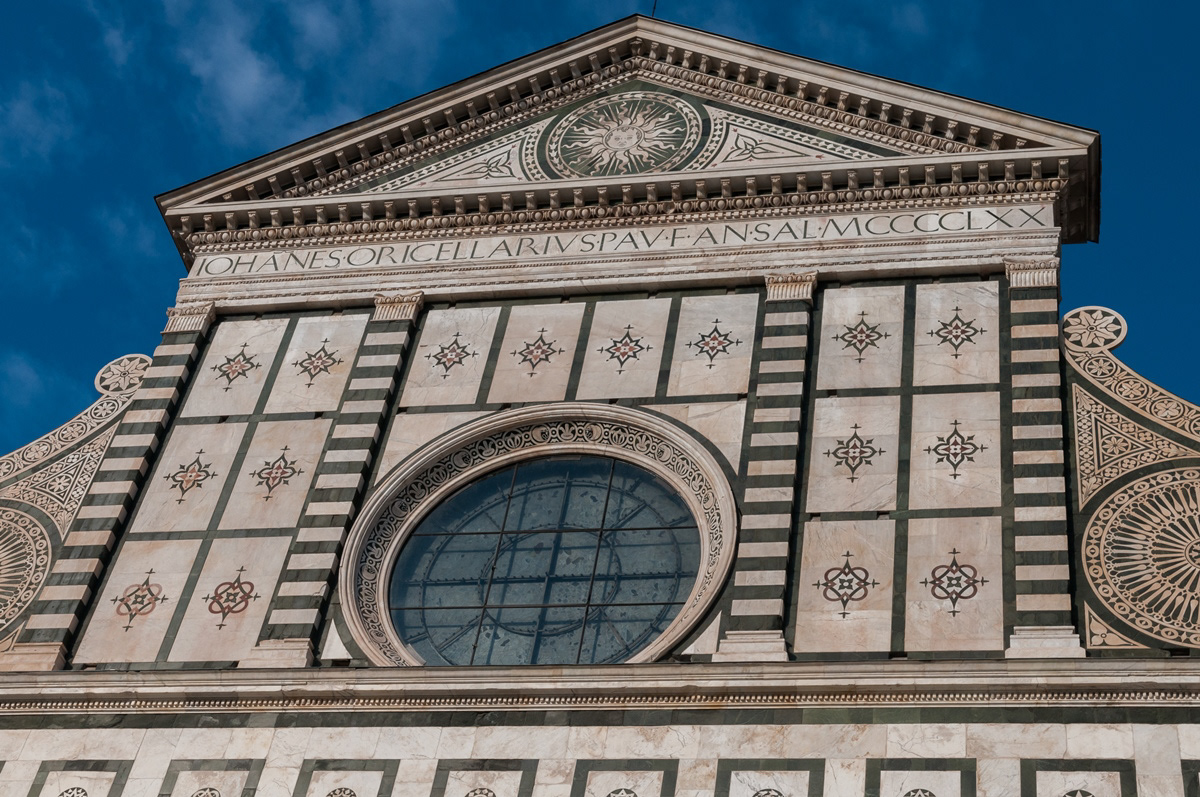 The church, with three naves, is built in white and green marble. It most likely dates back to the 6th century. It is one of the most important examples of religious architecture between the twelfth and fifteenth centuries in the region, with an elegant passage inside it between the large Romanesque-Lombard arches and the impetus of Gothic in the transept, most likely designed by the famous Giovanni Pisano , which inside will create a wooden crucifix and his last masterpiece, the Madonna della Cintola, in 1317. The relic of the sacred Cintola is kept there. The most important works are the external pulpit (built by Michelozzo and decorated by Donatello), the internal pulpit by Mino da Fiesole and Antonio Rossellino from 1472, the Madonna dell'Ulivo, the only work created together by the famous brothers Da Maiano, Giovanni, Benedetto and Giuliano. In the transept instead there are the frescoes by Filippo Lippi (in the Cappella Maggiore), one of the greatest expressions of the Italian Renaissance, the frescoes by Paolo Uccello (in the Cappella dell'Assunta), and by Agnolo Gaddi (in the Chapel of the sacred Cintola), all interior of a bronze gate made by some of the most important goldsmiths of the fifteenth century.