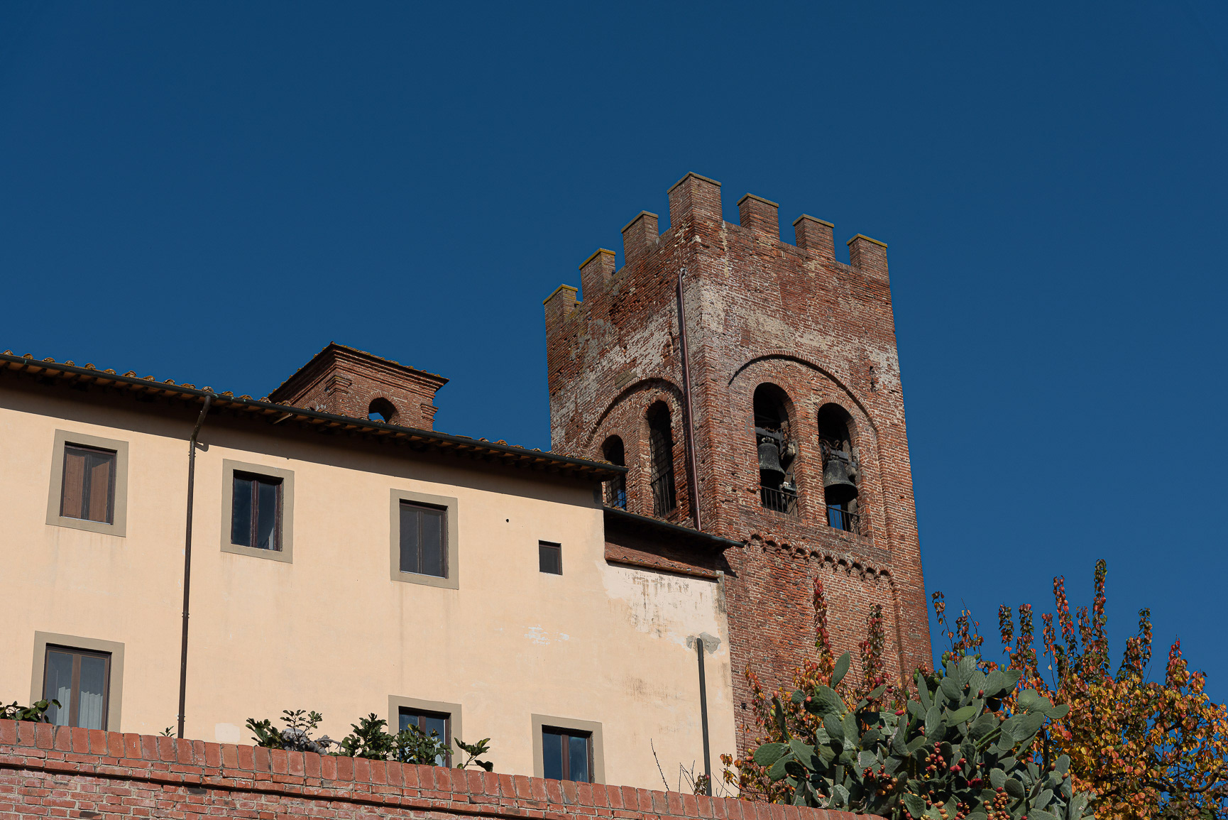 The parish church of S. Giovanni Battista Decollato opens onto the square of the village. The parish church of Montemurlo has an ancient and controversial history, we find the first trace of it when Otto III, on the occasion of his coronation as emperor (995), descends to Italy for Rome and on his journey (998) confirms the possessions of Bishop Antonino of Pistoia among which our pieve is noted. It has a simple plan, with a single nave with presbytery and choir, modified in the second half of the last century. Originally the parish church had very small dimensions and it was only during the 16th century that we witness the first expansion works carried out by the humanist Bartolomeo Fonzio, parish priest in Montemurlo from 1494 to 1520, who had the rectory and the cloister built alongside the church, of which however, the round arches and columns with Corinthian capitals now walled up can still be traced. The parish church is 'protected' by an imposing bell tower which was originally a watchtower then transformed and refined, in the first half of the 16th century as part of the transformations carried out by the active parish priest, with the large mullioned windows that we see on each side, surmounted by brick arches. The large window is supported by octagonal columns and the shutters of the arches that conclude the tower are decorated with a notched frame that also surrounds the roof. Entering the church we cross a loggia, added during the 17th century, supported by brick columns with Ionic-inspired capitals. The interior of the church, with a goat-like roof, is enriched by four aedicule altars, one of which dates back to the 16th century, a model for the others built in the 18th century. On the altars and walls of the presbytery, valuable paintings by the painters Francesco Granacci, Giovanni Stradano, Matteo rosselli and Giacinto Fabroni.