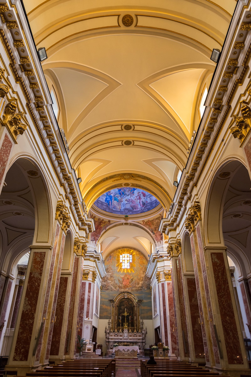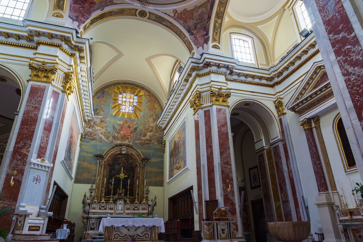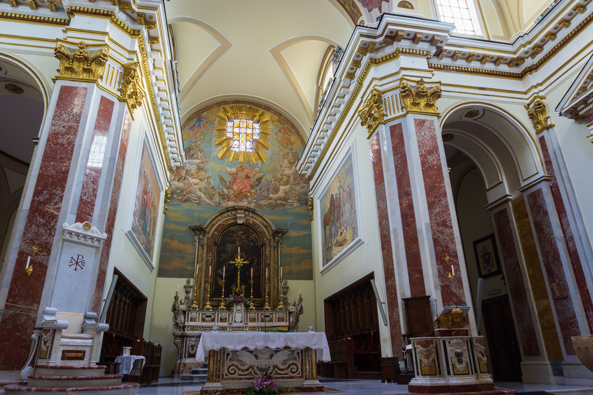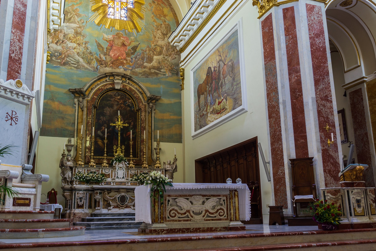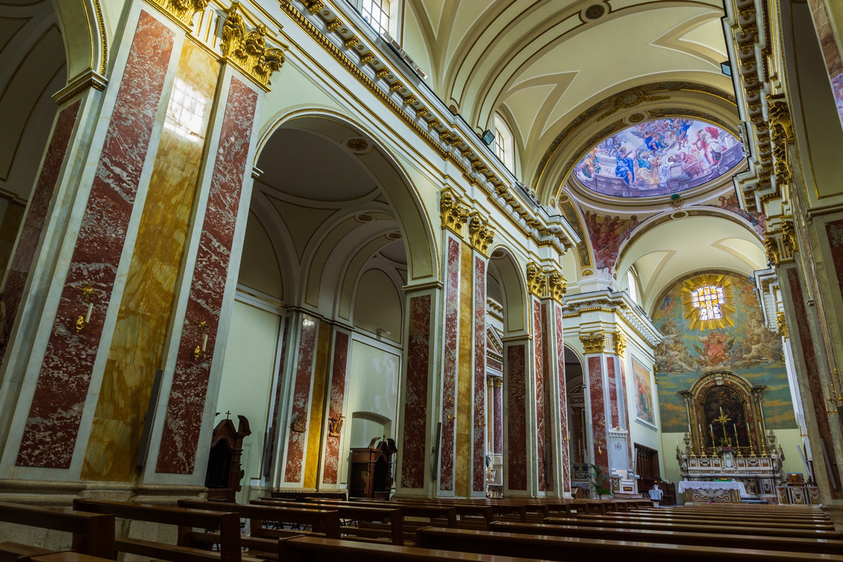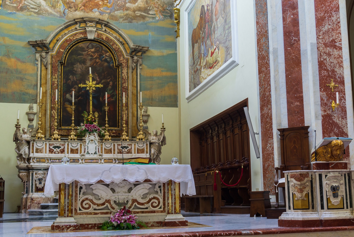 Mother church of San Bartolomeo Apostolo. Formerly dedicated to S. Maria Assunta in cielo. Its shape is a Latin cross, with three naves separated by two rows of columns.