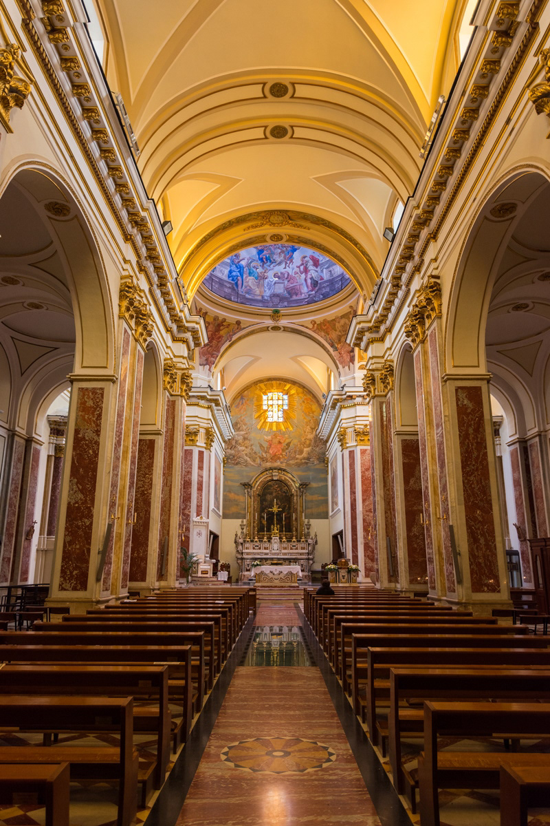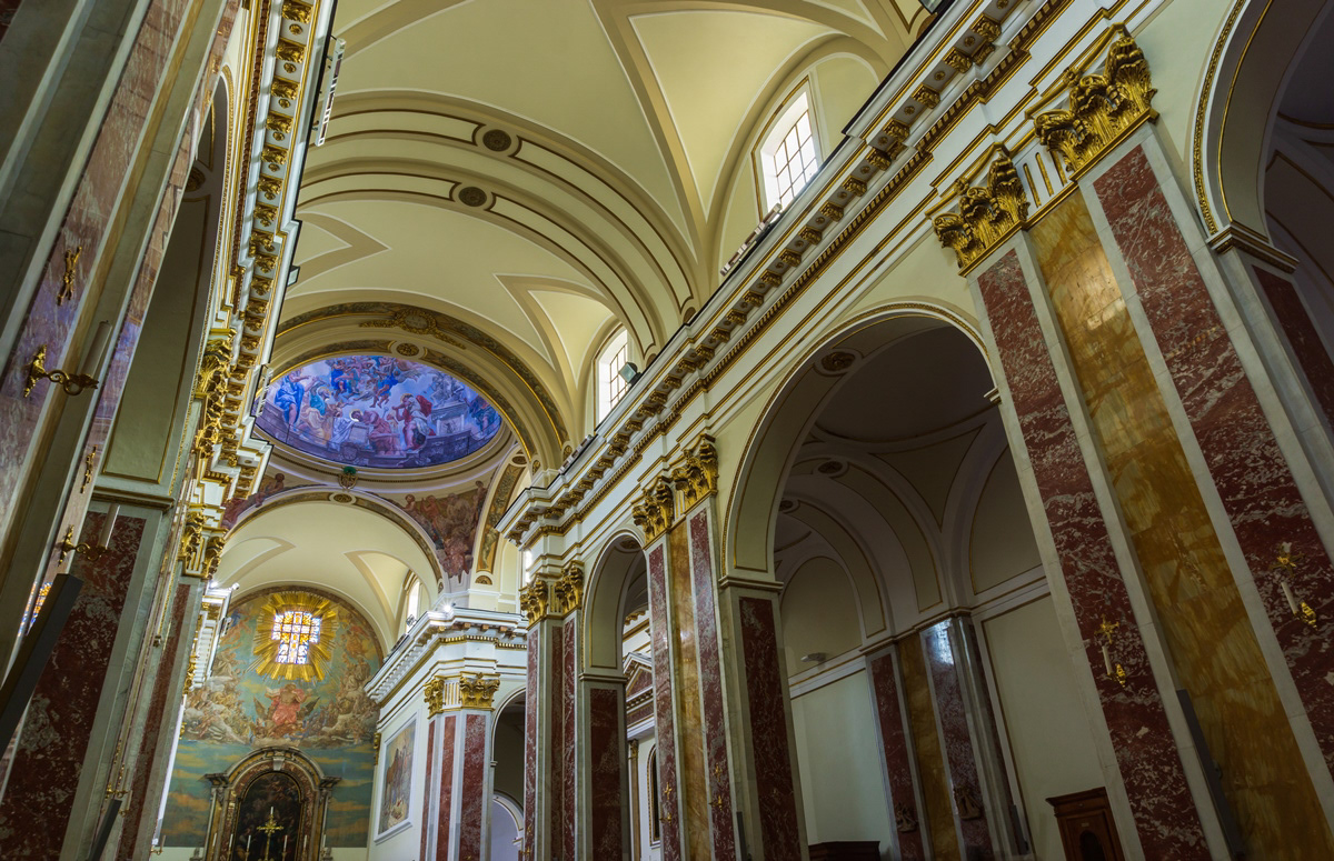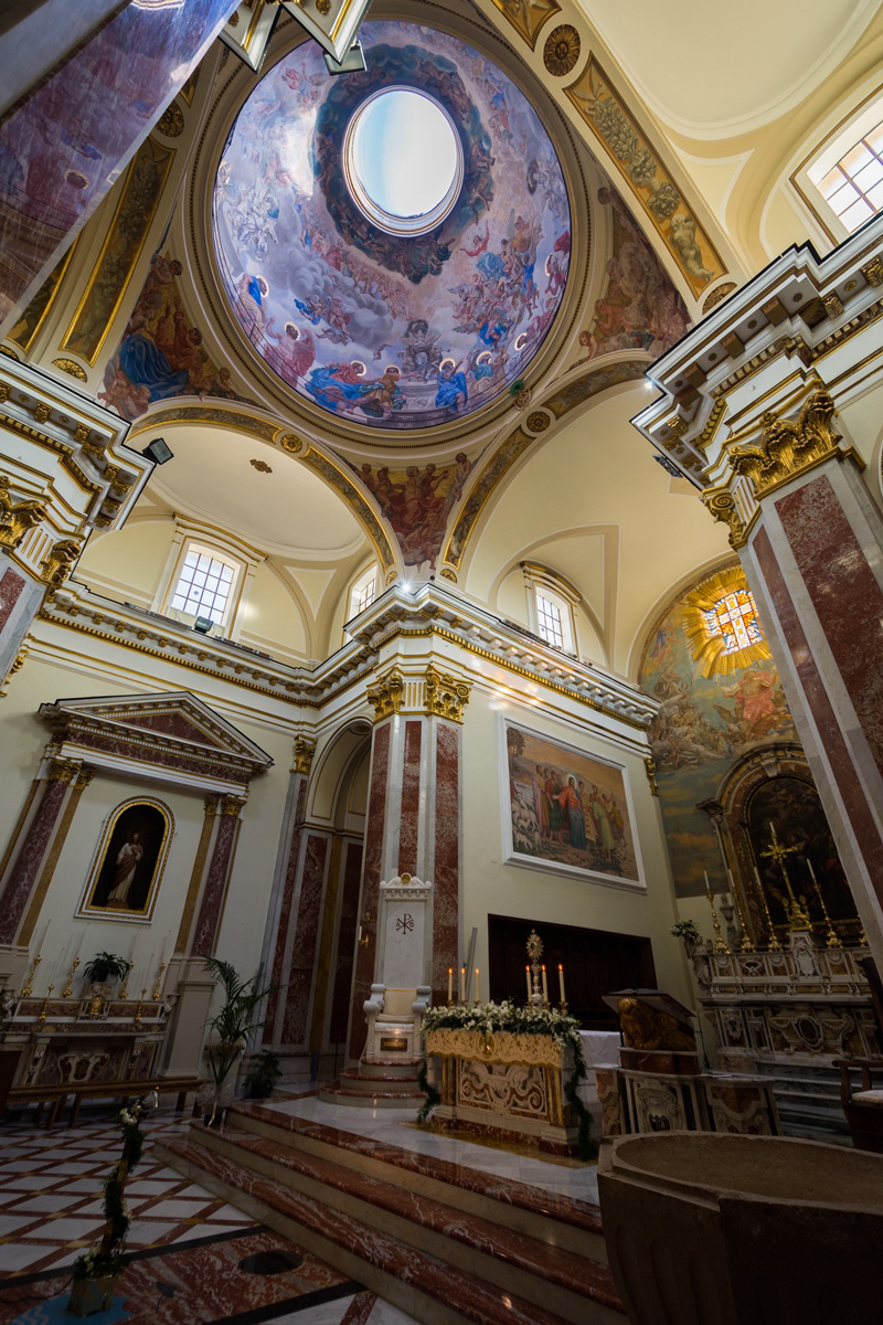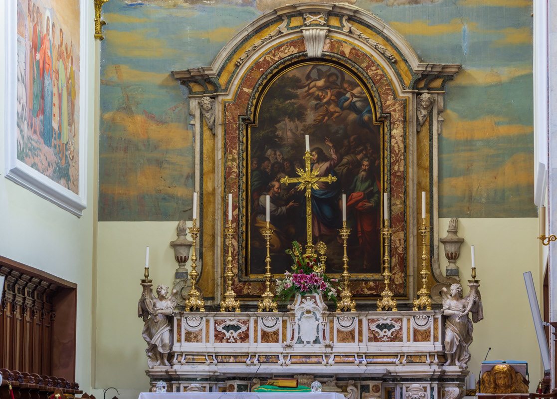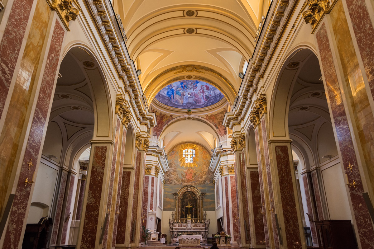 Mother church of San Bartolomeo Apostolo. Formerly dedicated to S. Maria Assunta in cielo. Its shape is a Latin cross, with three naves separated by two rows of columns.