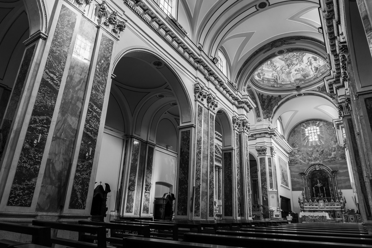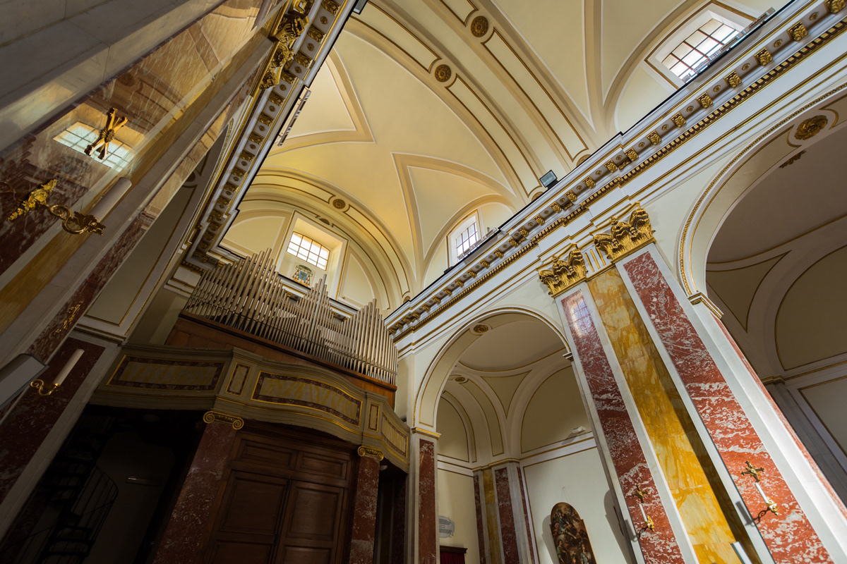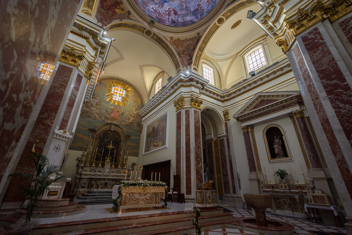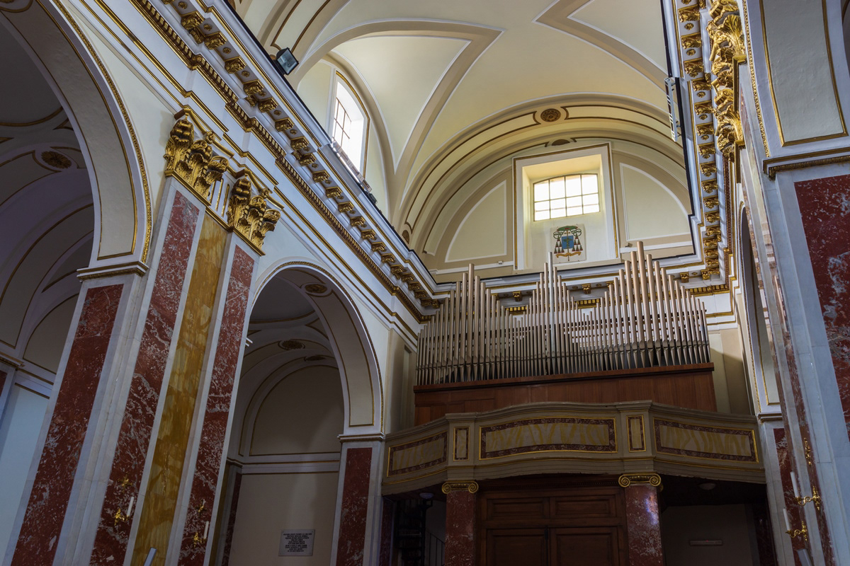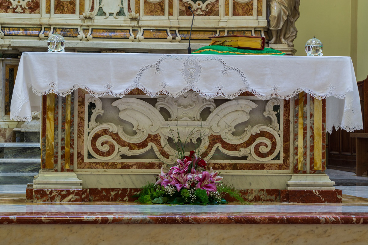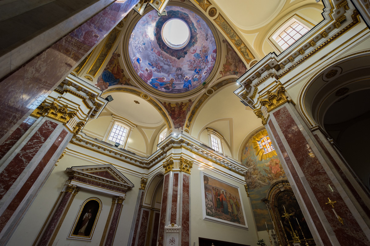 Mother church of San Bartolomeo Apostolo. Formerly dedicated to S. Maria Assunta in cielo. Its shape is a Latin cross, with three naves separated by two rows of columns.