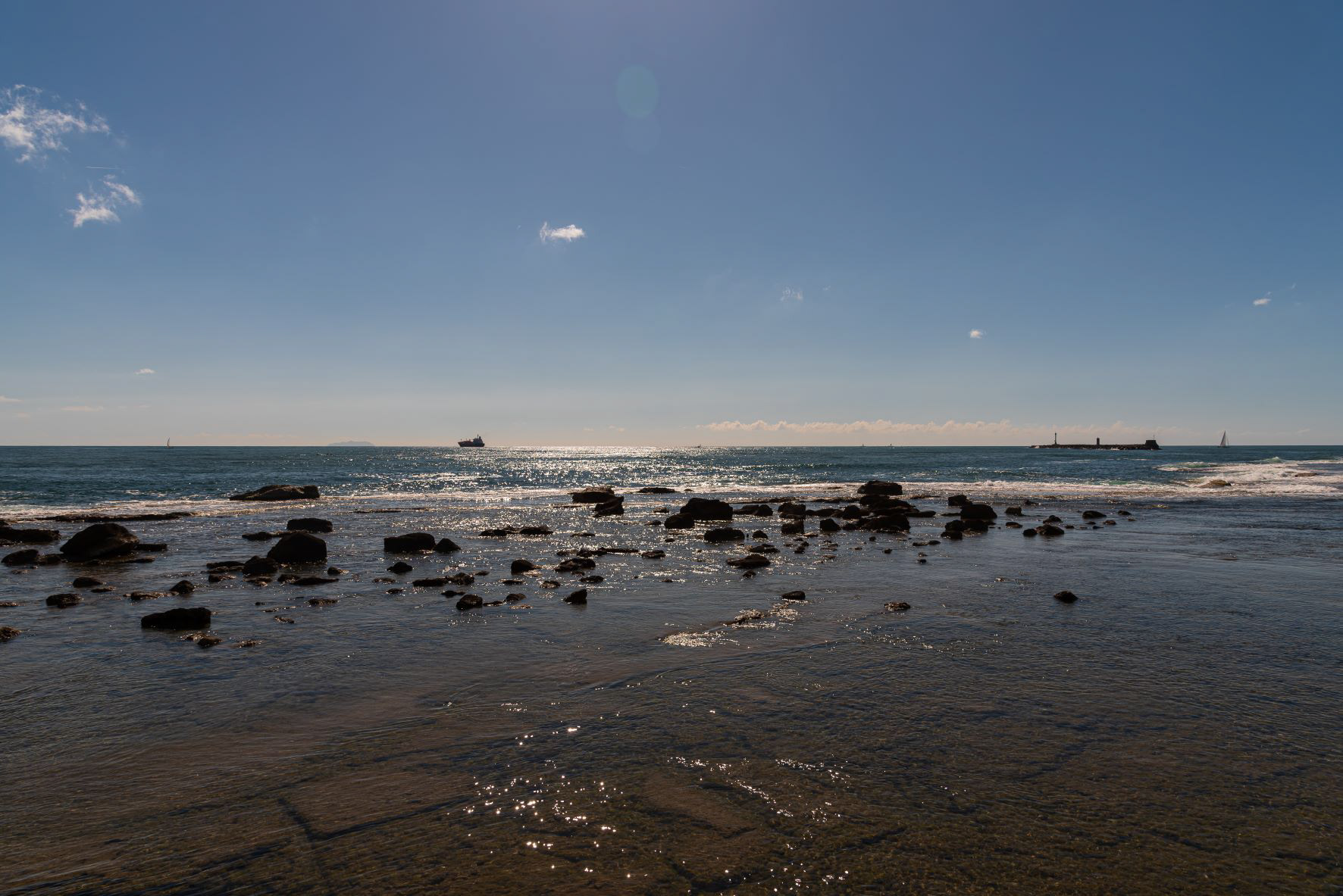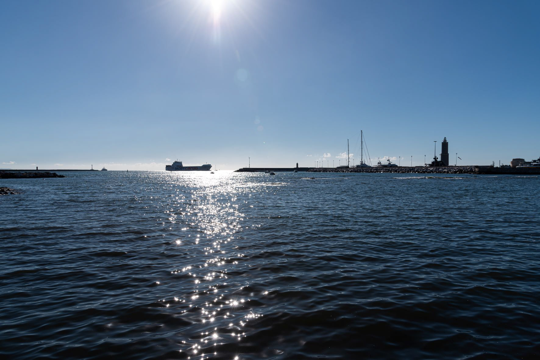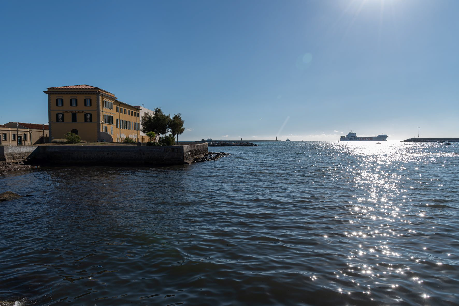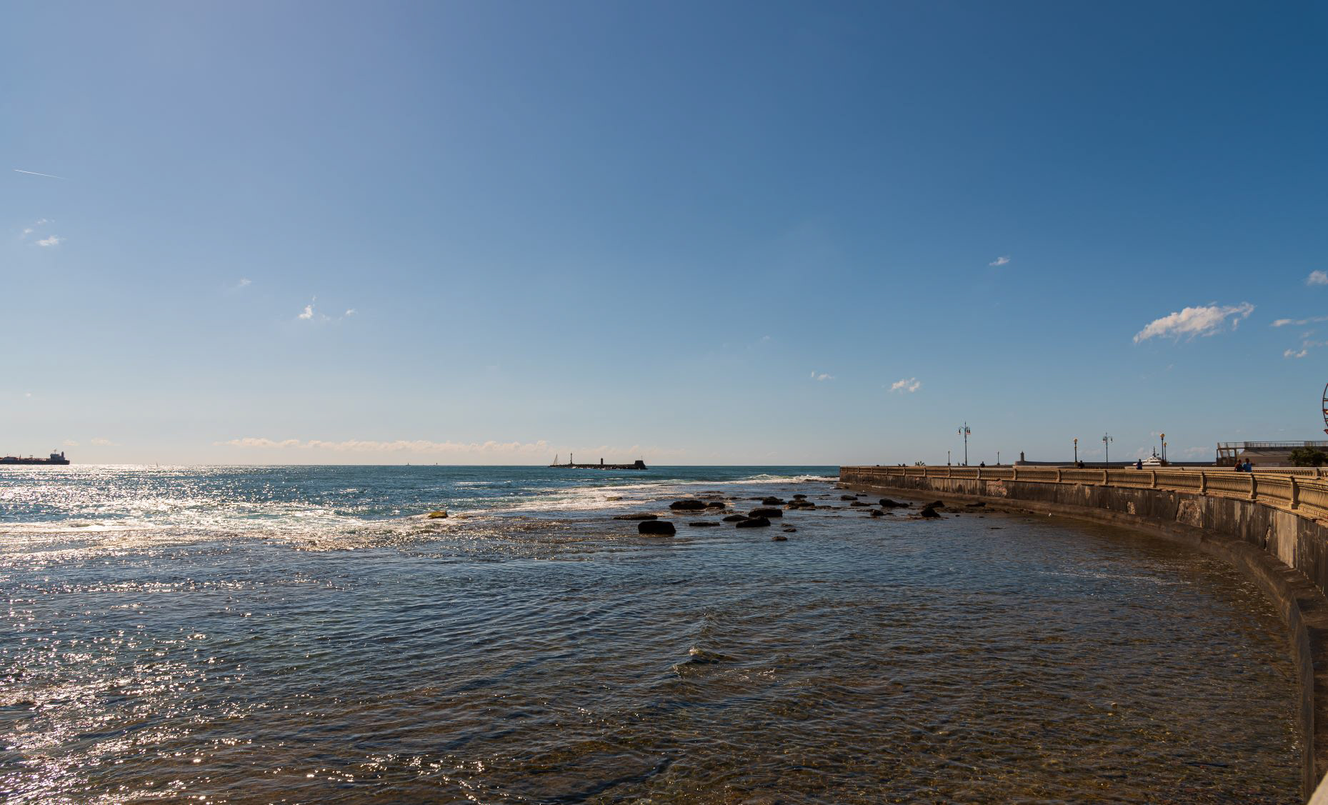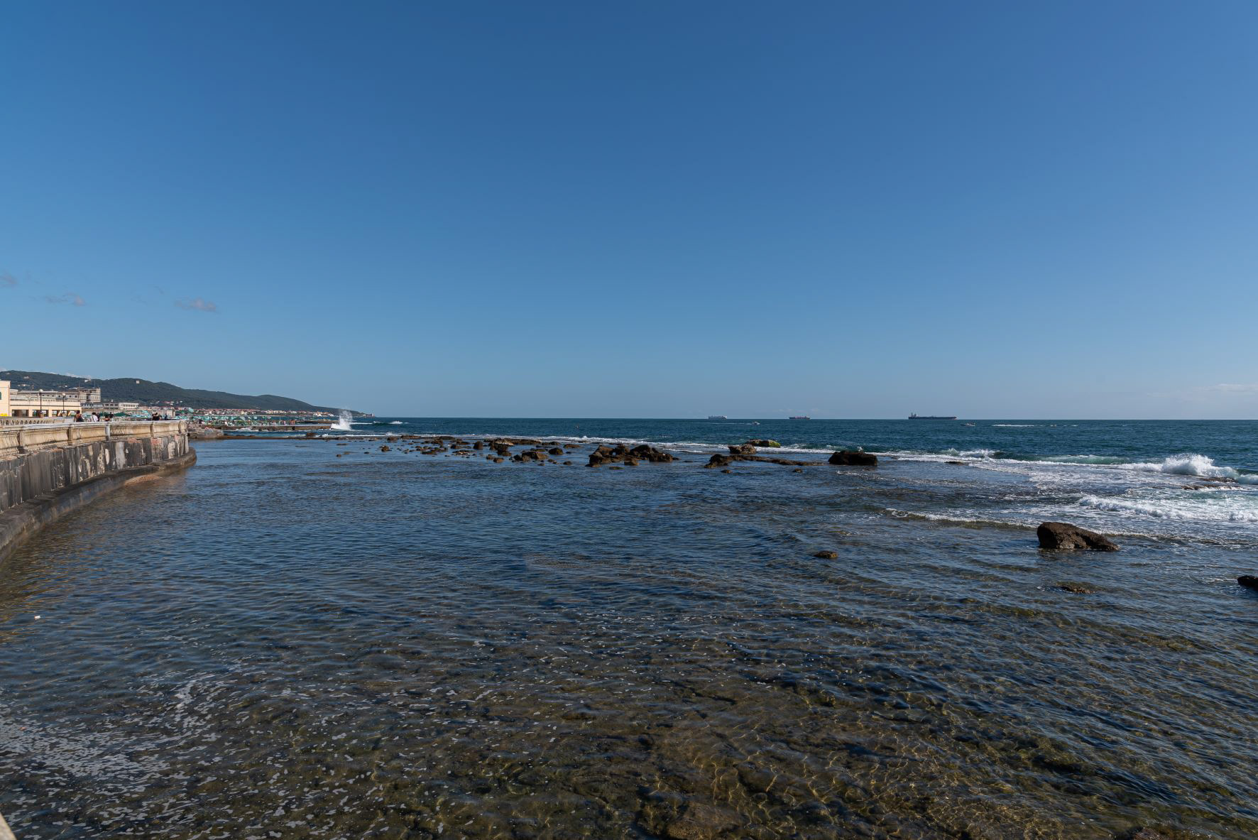 Livorno, Tuscany. The Livorno seafront. The Ligurian sea as seen from Terrazza Mascagni The Livorno seafront is a promenade that winds for several kilometers along the coast of the Ligurian Sea, starting from the port area and ideally ending in the coastal stretch of the Romito.