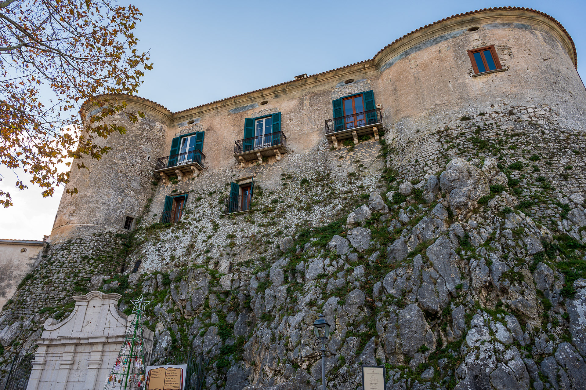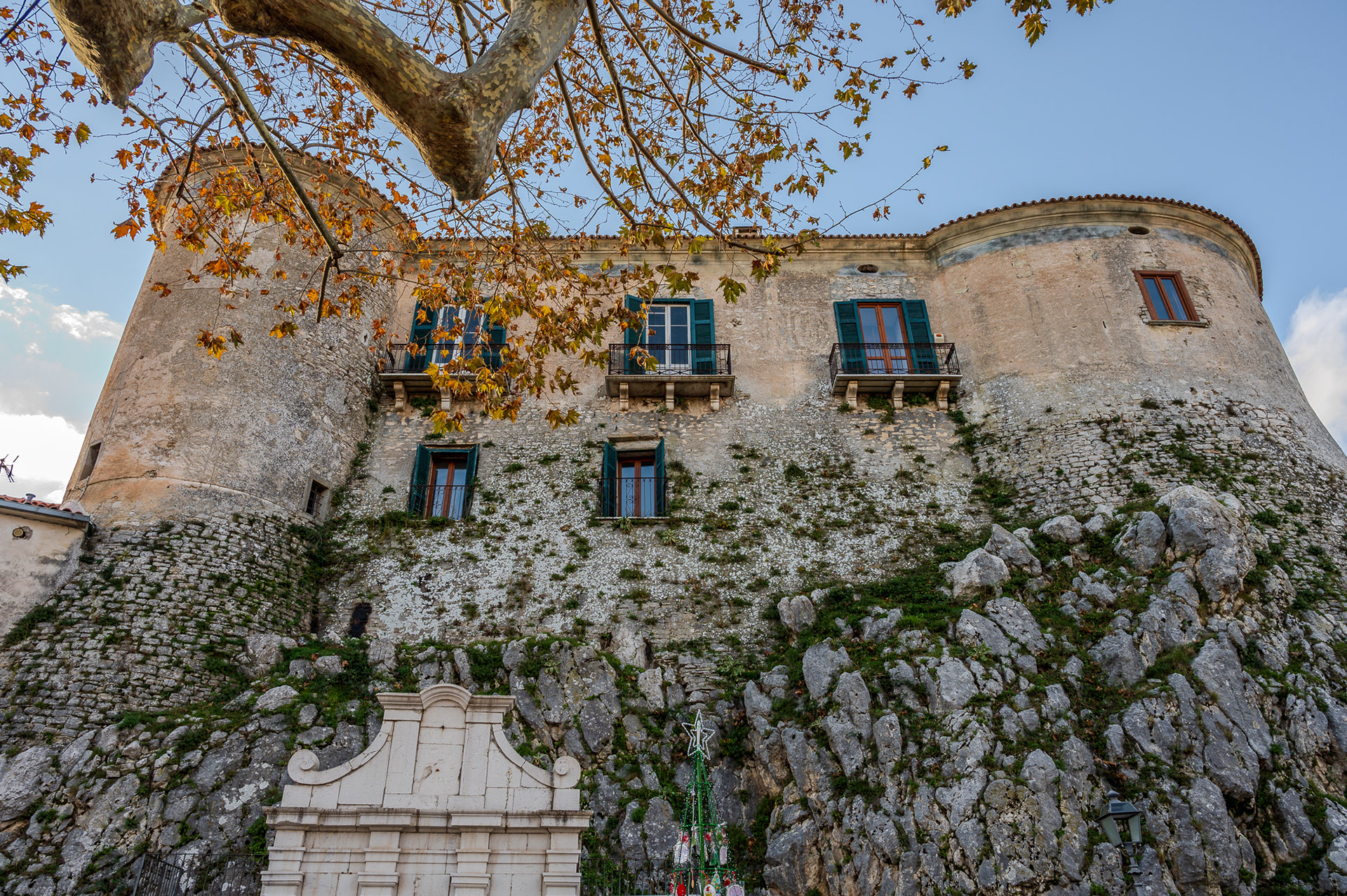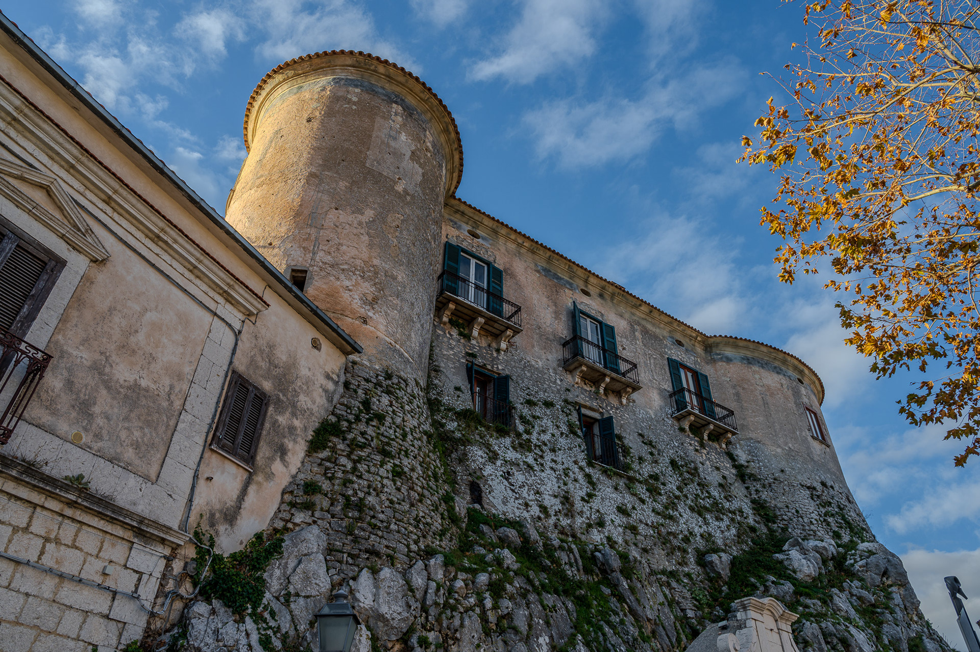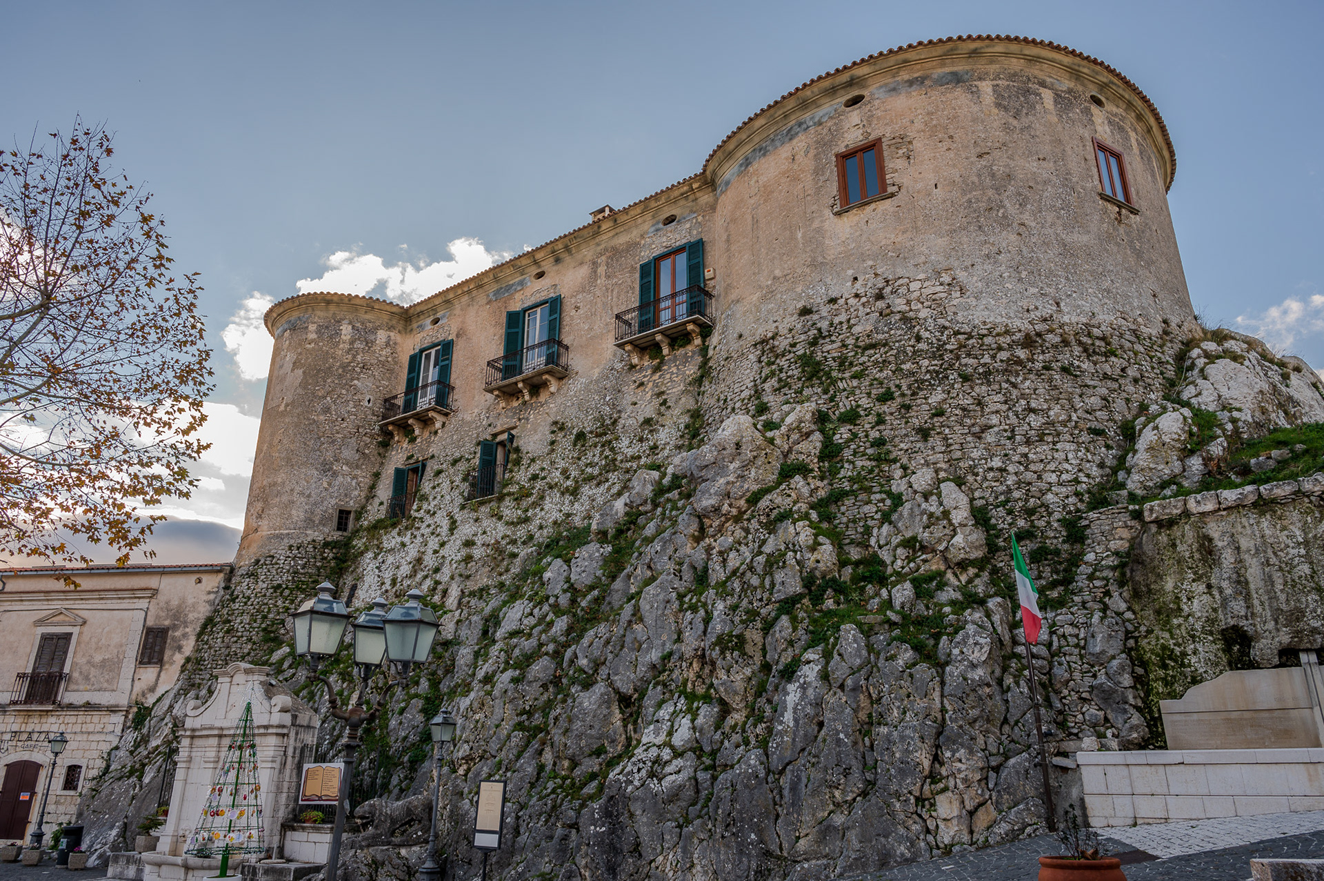 The castle occupies a substantial portion of the ancient circular village. It was built around 1100 by Clementina, daughter of Ruggero II Normanno, king of Sicily, when the fiefdom was part of the county of Ugone del Molise. The garrison passed into the hands of the Anjou, the Afflitto and the Rotondi barons. In 1480 it was restored in the Renaissance style as a patrician residence, purchased by Giovanni Donato della Marra, who was count of Macchia. In 1748 the castle was sold to Maria Grazia Rotondi, then sold to Nicola d'Alena. Celeste d'Alena was baroness of Macchia, married to the Frisari, counts of Bisceglie and patricians of Castel San Vincenzo. The façade of the building dominates the square in front of the village, embellished by a Renaissance loggia with round arches. The first part of this loggia dates back to the Aragonese period, with a roof resting on 5 small arches. The rest of the castle is spread over 3 levels, the highest of which is the attic. In the inner courtyard the beautiful Renaissance staircase with the colonnade, which leads to the noble floors, stands out. On the ground floor there are the cellars, the stables and the servants' rooms. The upper floor was the home of the nobles, with various rooms, including the private chapel with different relics. In 1984 the castle was fully restored, being brought back to its eighteenth-century splendor.