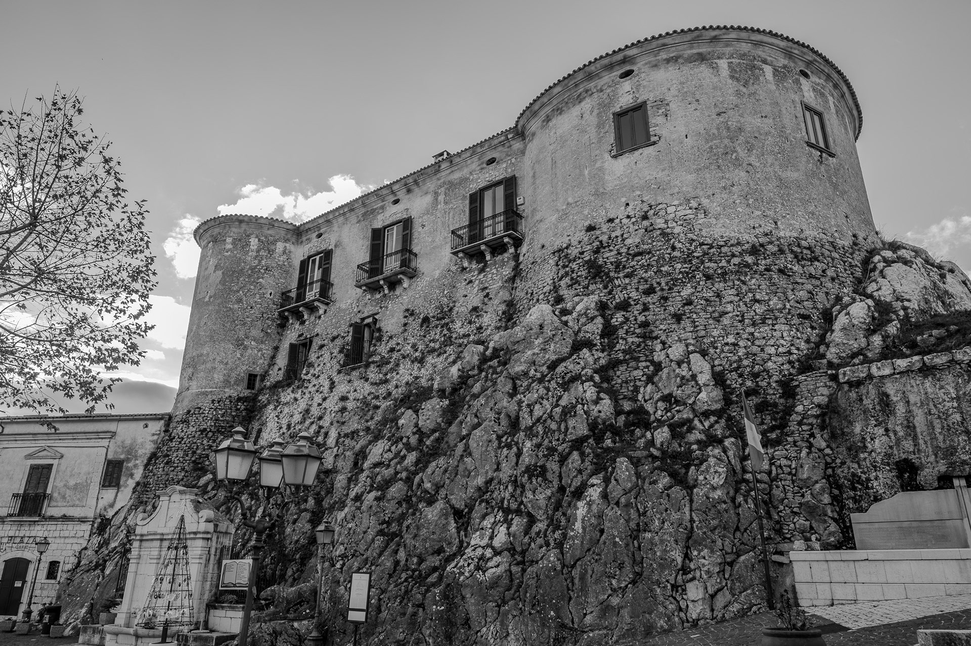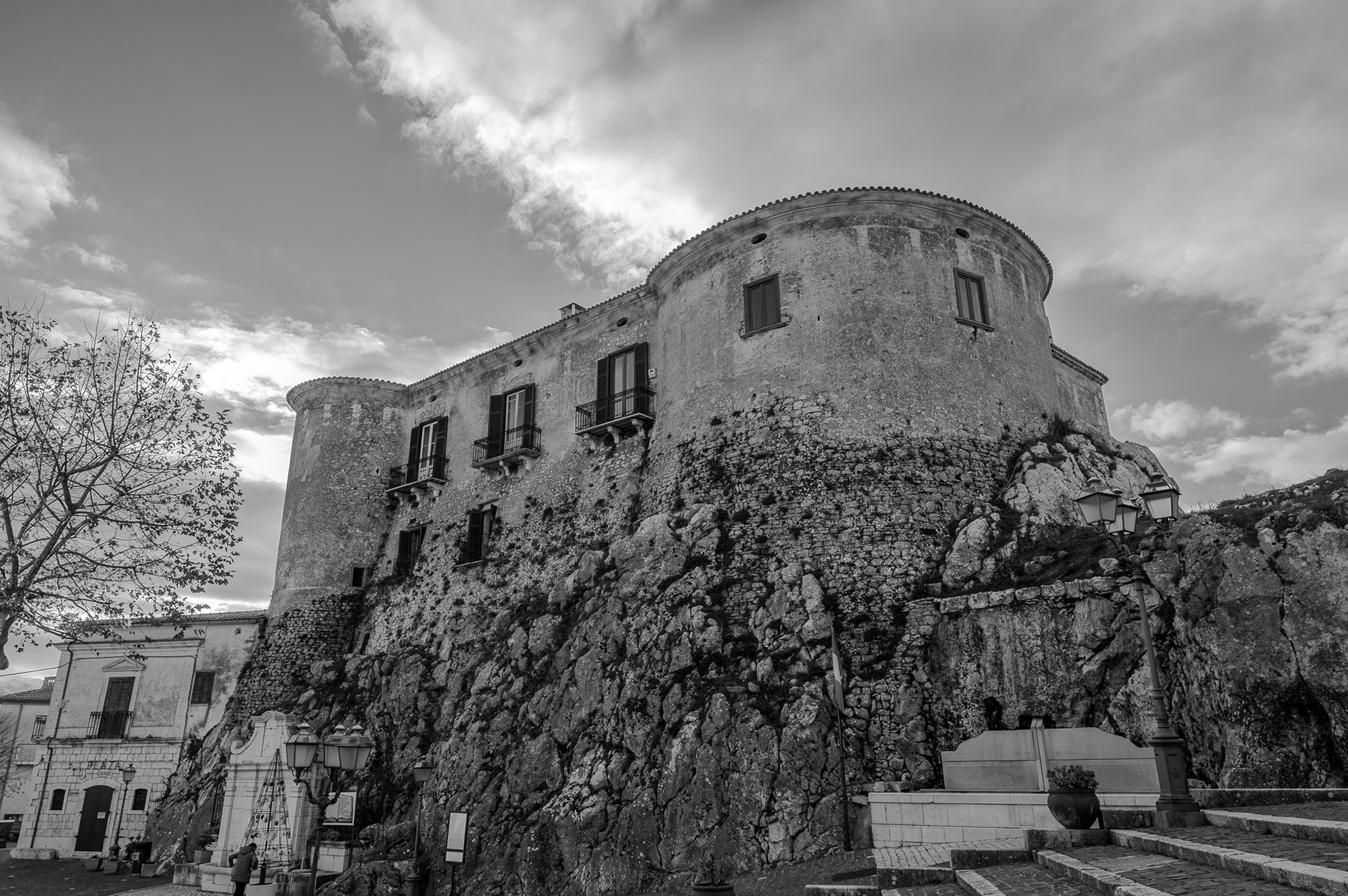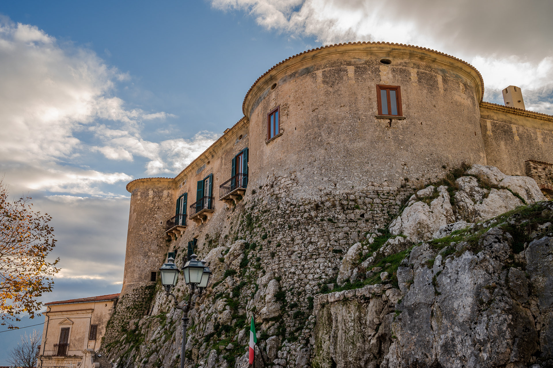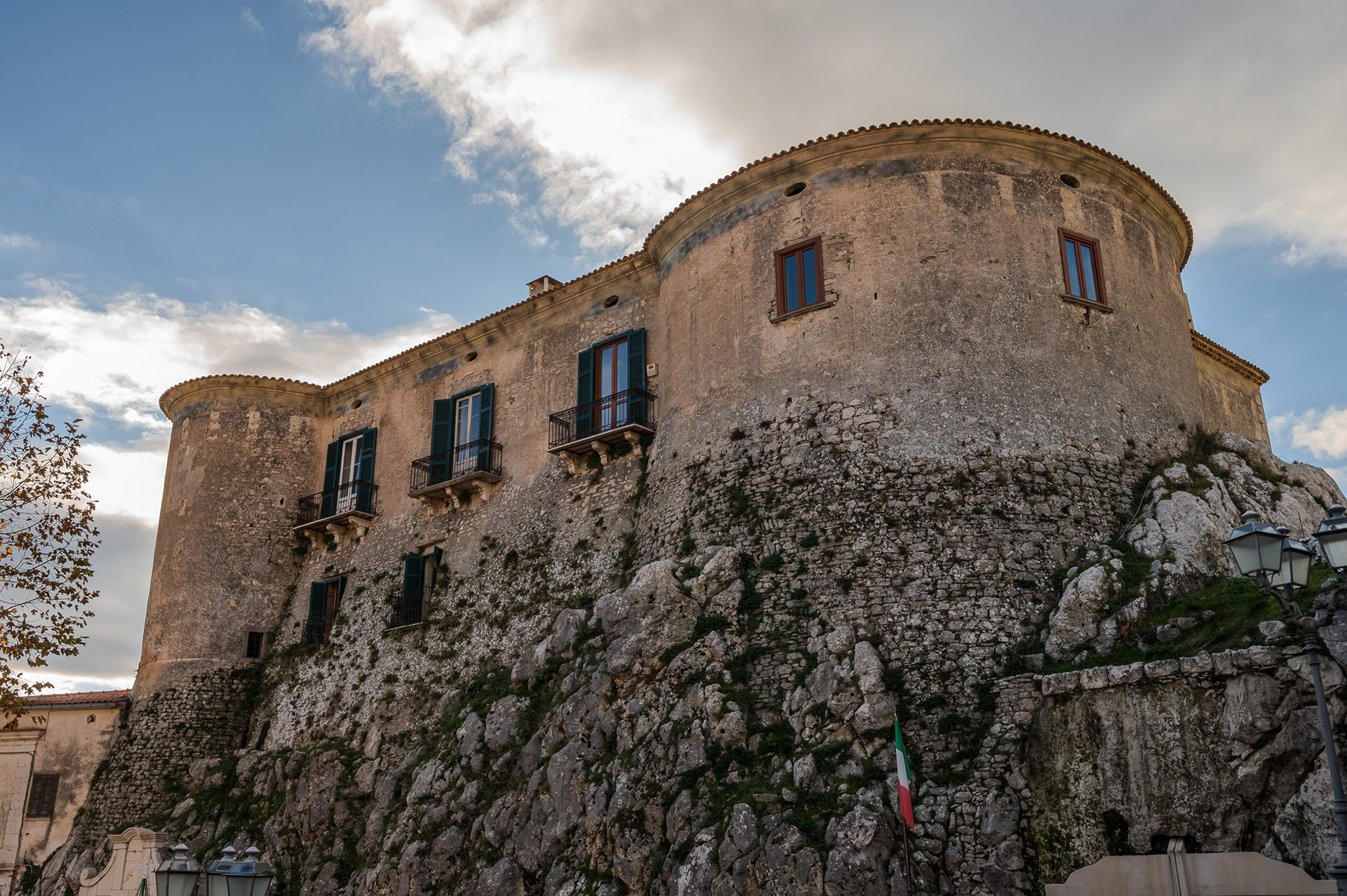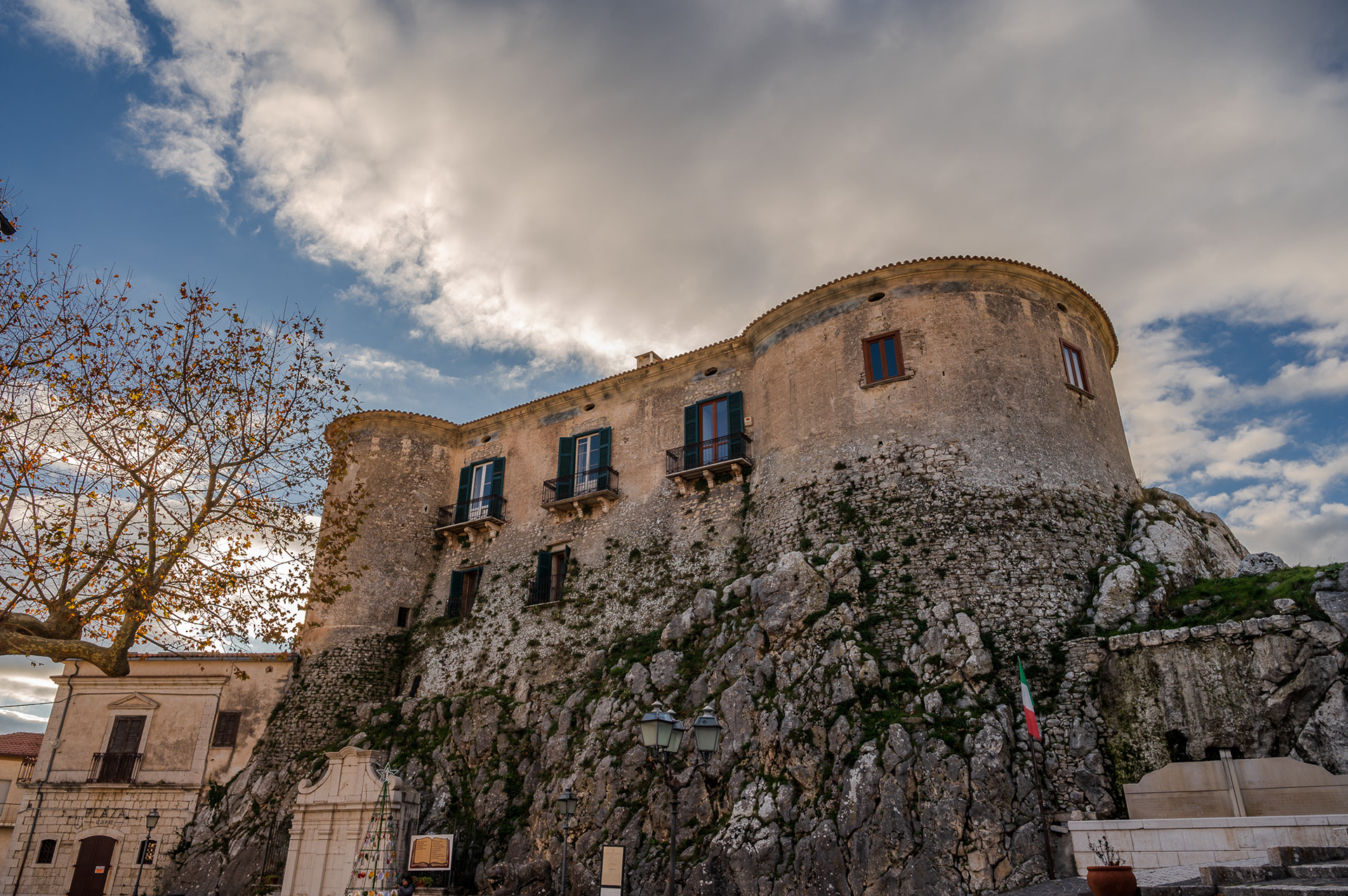 The castle occupies a substantial portion of the ancient circular village. It was built around 1100 by Clementina, daughter of Ruggero II Normanno, king of Sicily, when the fiefdom was part of the county of Ugone del Molise. The garrison passed into the hands of the Anjou, the Afflitto and the Rotondi barons. In 1480 it was restored in the Renaissance style as a patrician residence, purchased by Giovanni Donato della Marra, who was count of Macchia. In 1748 the castle was sold to Maria Grazia Rotondi, then sold to Nicola d'Alena. Celeste d'Alena was baroness of Macchia, married to the Frisari, counts of Bisceglie and patricians of Castel San Vincenzo. The façade of the building dominates the square in front of the village, embellished by a Renaissance loggia with round arches. The first part of this loggia dates back to the Aragonese period, with a roof resting on 5 small arches. The rest of the castle is spread over 3 levels, the highest of which is the attic. In the inner courtyard the beautiful Renaissance staircase with the colonnade, which leads to the noble floors, stands out. On the ground floor there are the cellars, the stables and the servants' rooms. The upper floor was the home of the nobles, with various rooms, including the private chapel with different relics. In 1984 the castle was fully restored, being brought back to its eighteenth-century splendor.