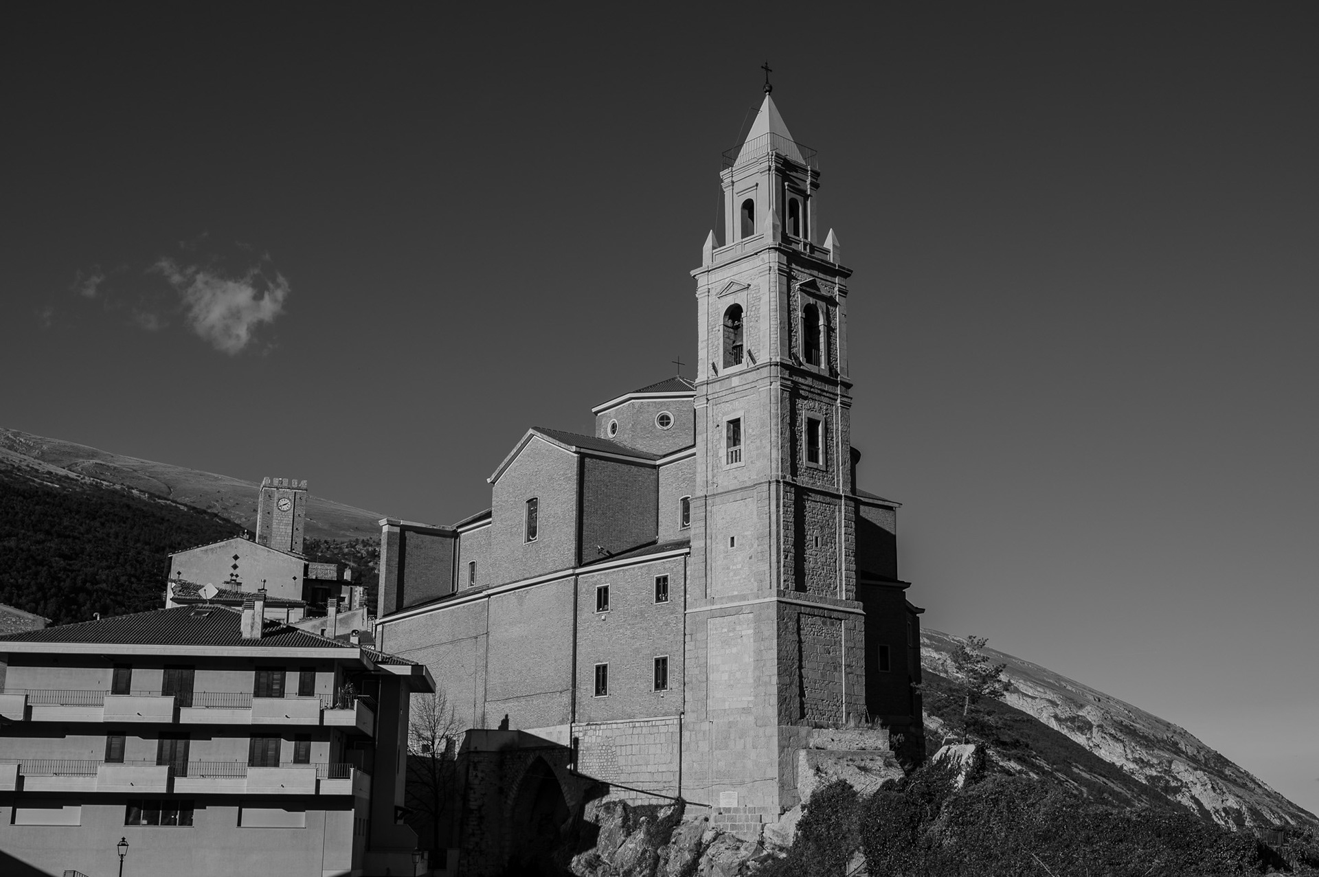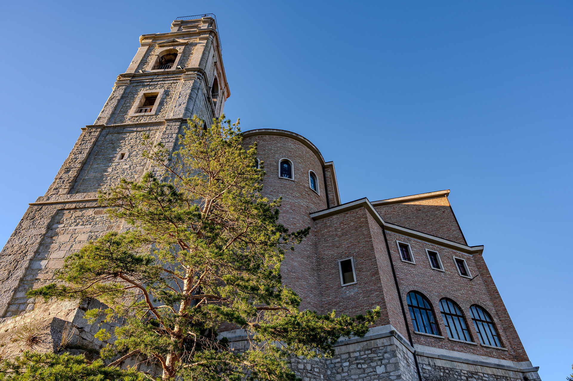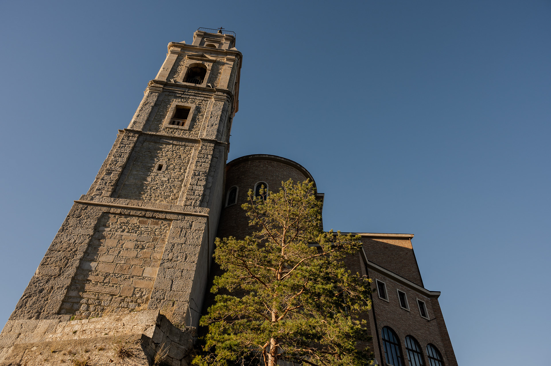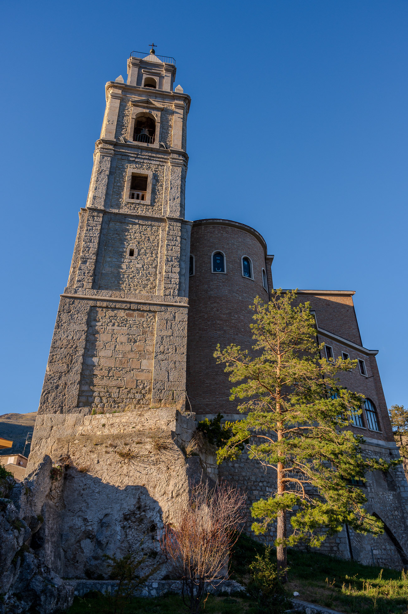 The church of San Pietro in Albe stands on the hill of San Pietro, one of the three hills surrounding Alba Fucens, the Roman city founded in 304 BC at the foot of Mount Velino.