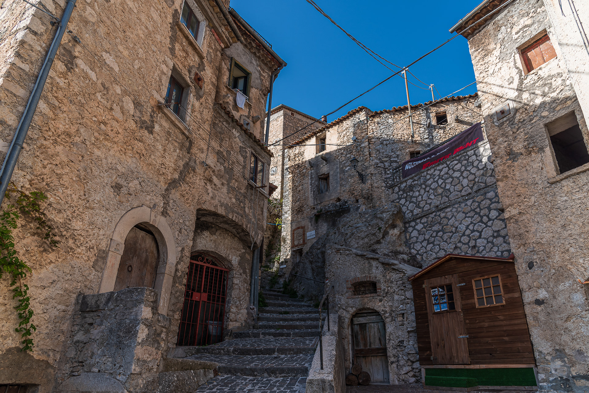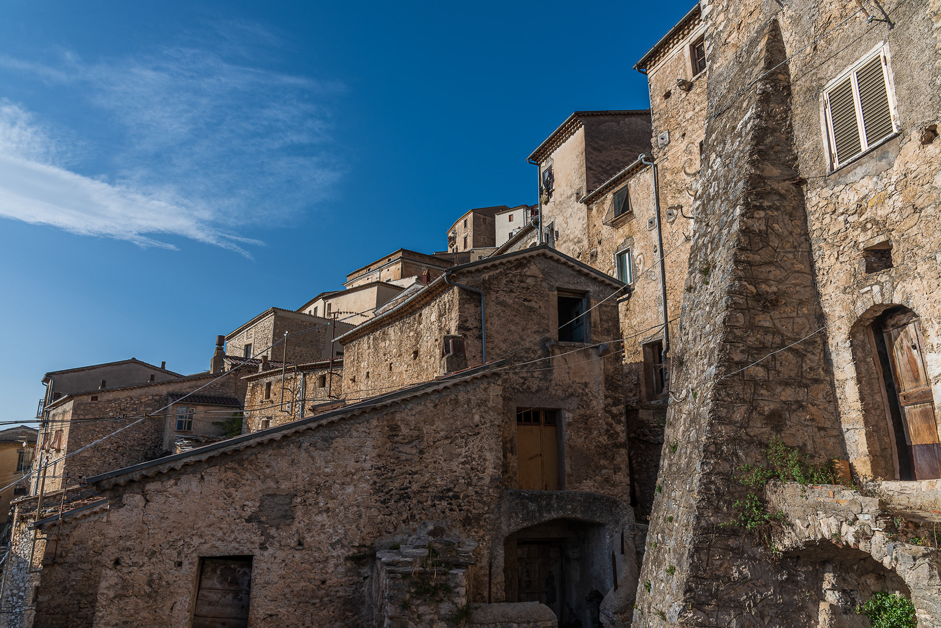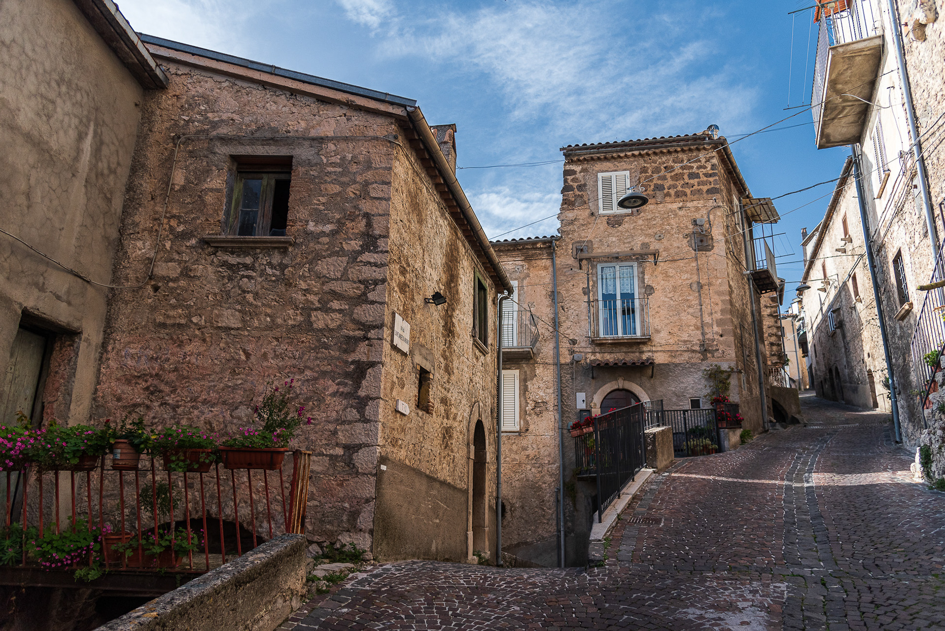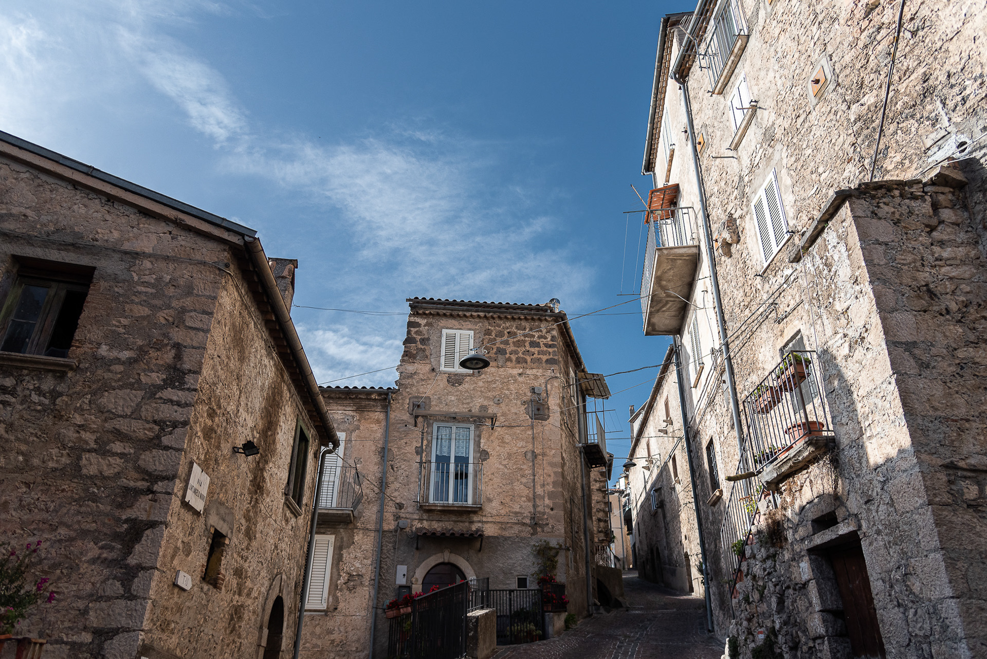 Pesche, village in the province of Isernia, in Molise, perched along the steep slopes of Mount San Marco, a white spot against the green of the mountain and the gray of the stones.