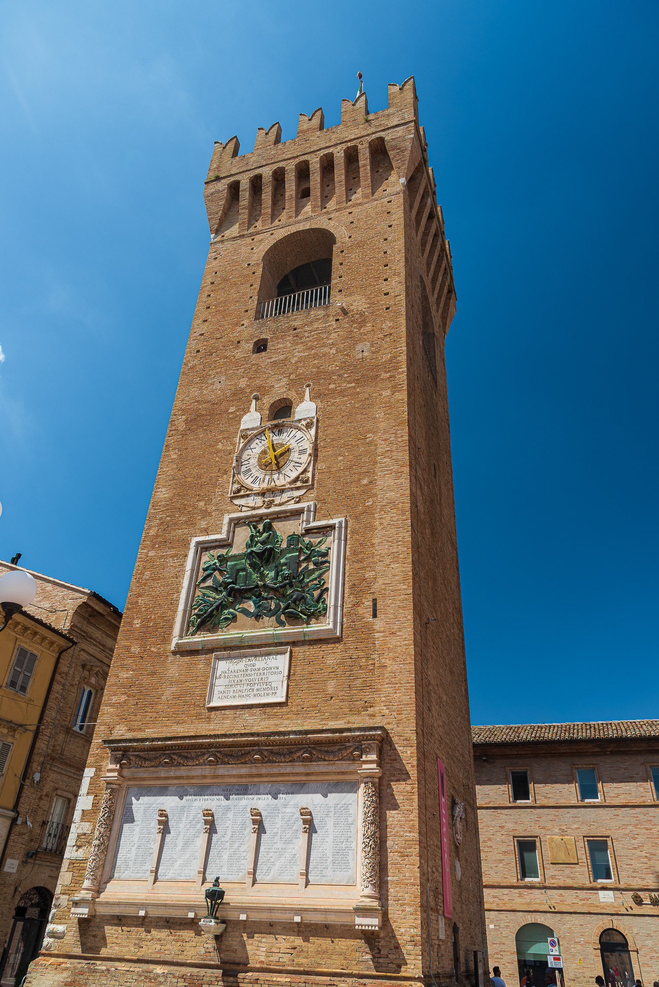 36 meters high and crowned by Ghibelline battlements, the Torre del Borgo was built in the 12th century and is located in Piazza Giacomo Leopardi in Recanati