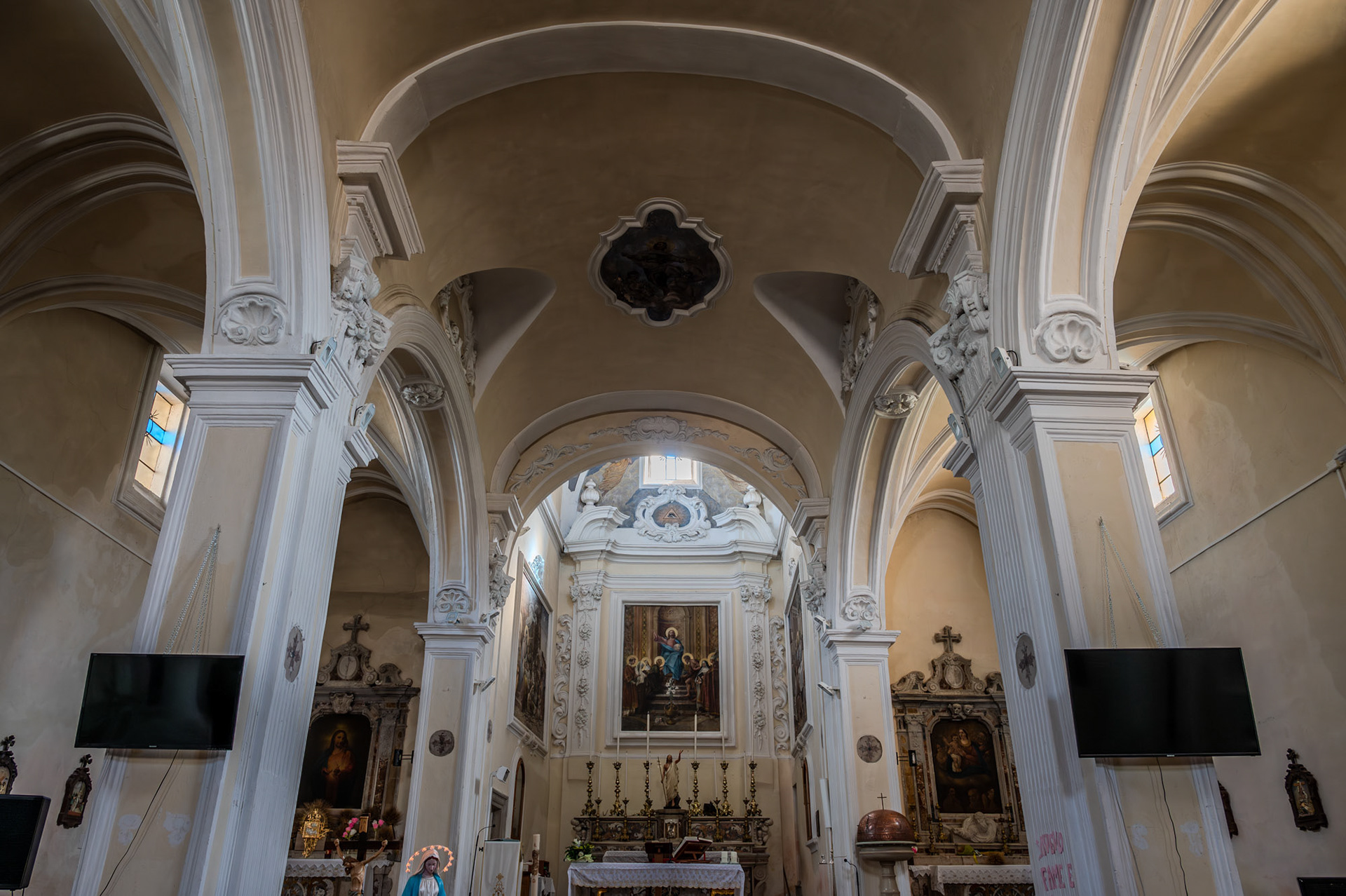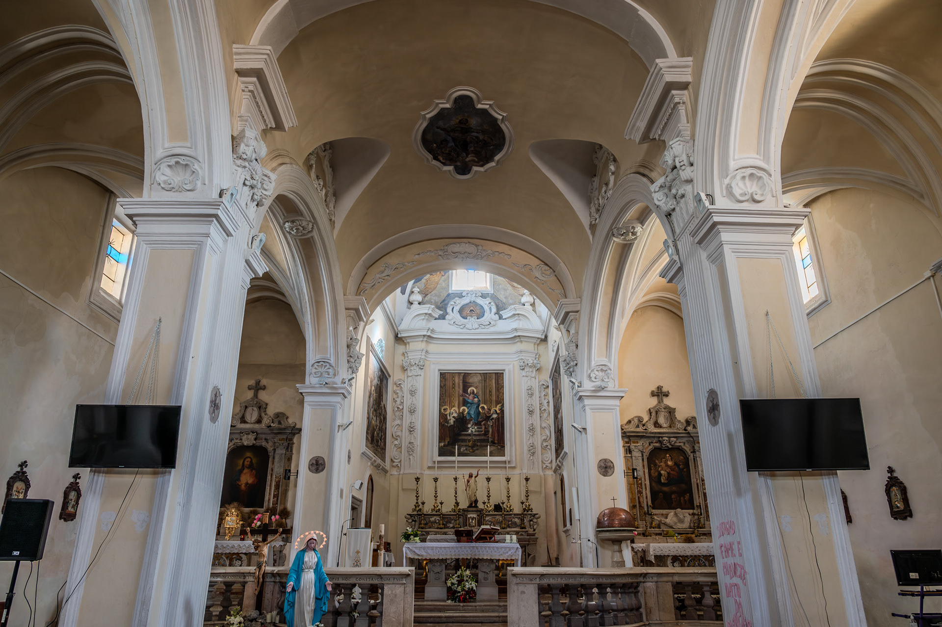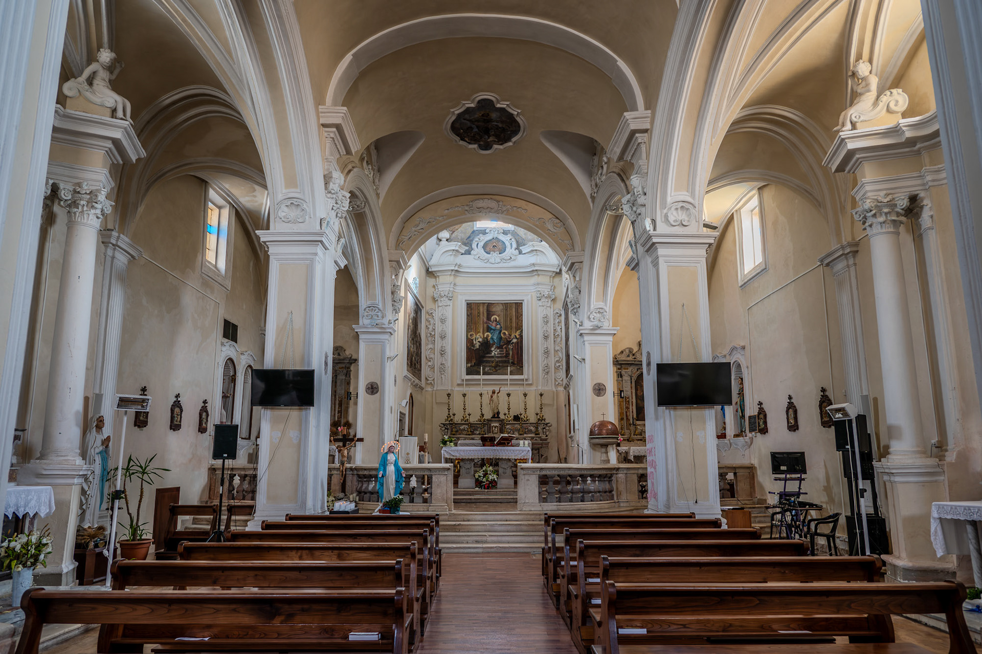 Mother church of San Bartolomeo Apostolo. Formerly dedicated to S. Maria Assunta in cielo. Its shape is a Latin cross, with three naves separated by two rows of columns.