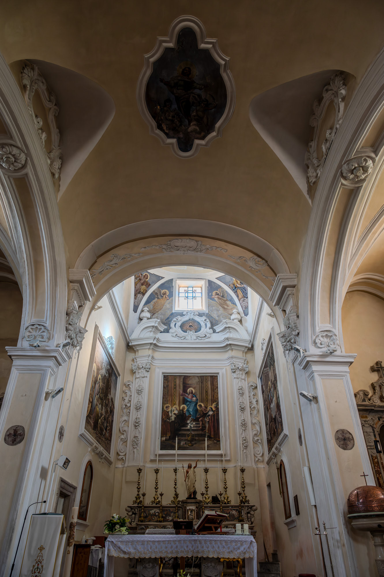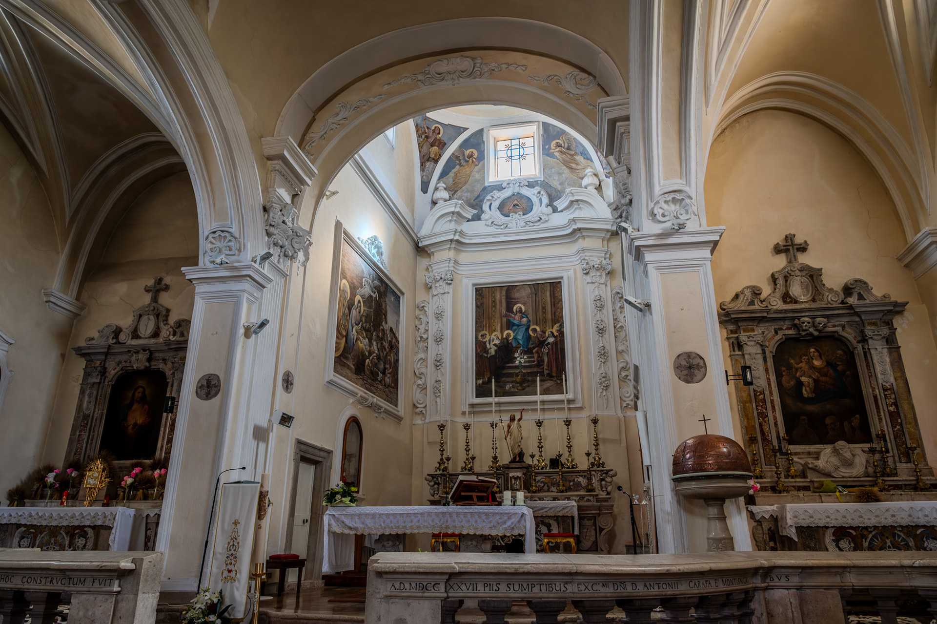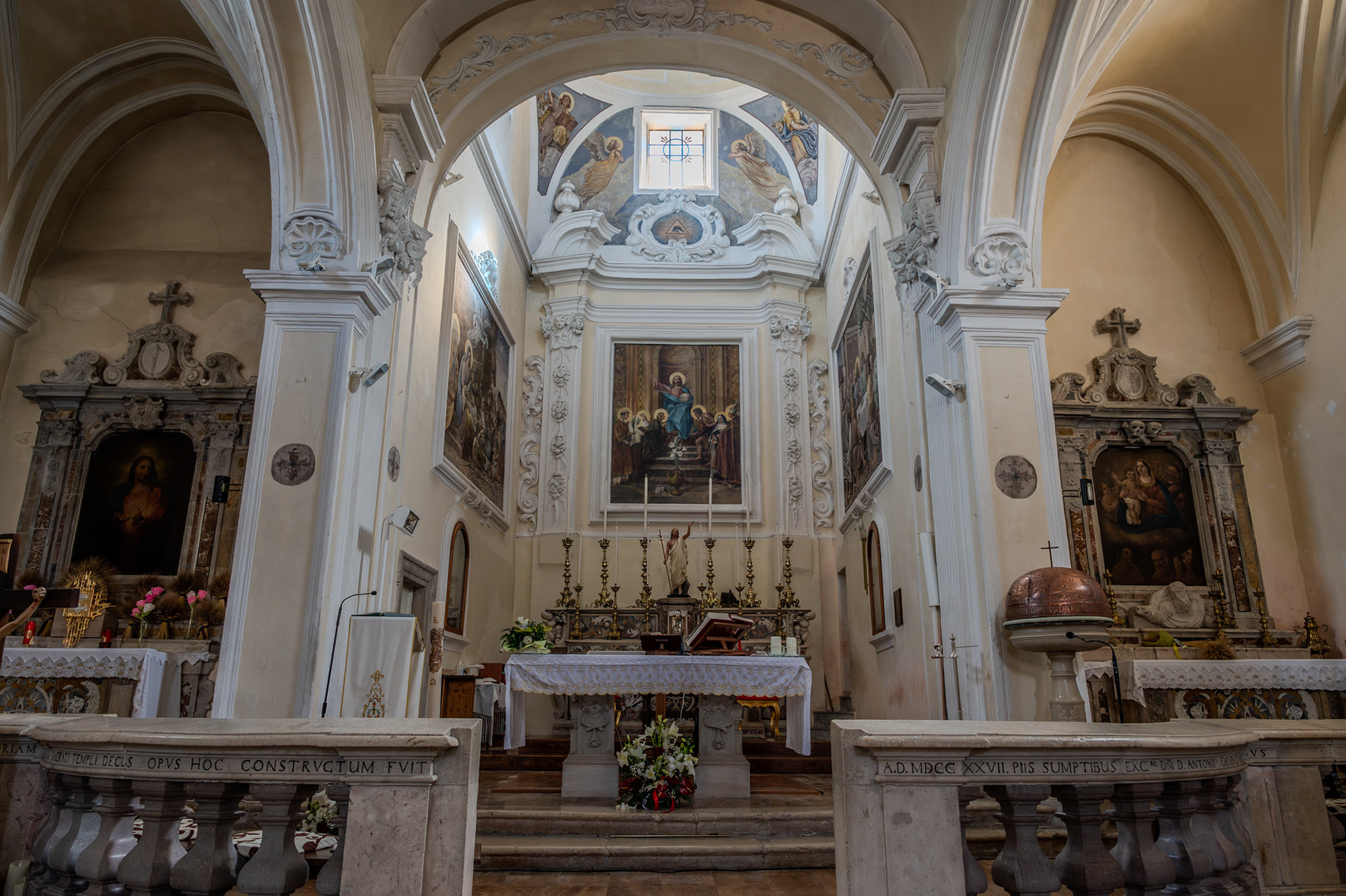 Mother church of San Bartolomeo Apostolo. Formerly dedicated to S. Maria Assunta in cielo. Its shape is a Latin cross, with three naves separated by two rows of columns.