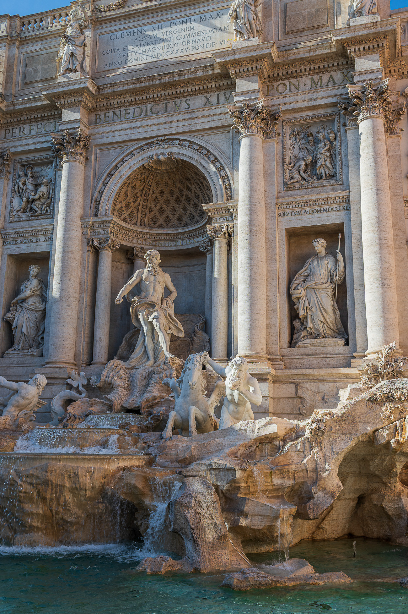 The Trevi Fountain is the largest of the famous fountains in Rome. Built on the facade of Palazzo Poli by Nicola Salvi, the competition announced by Pope Clement XII in 1731 had initially been won by the French sculptor Lambert-Sigisbert Adam but subsequently the assignment passed to Salvi: it is said that the change was due to the fact that the pontiff did not want to entrust the work to a foreigner, however another version explains that Adam had to return to France. Begun in 1732, it was finally entrusted in 1759 to Pietro Bracci helped by his son Virginio. The two completed the work, which was inaugurated in 1762.