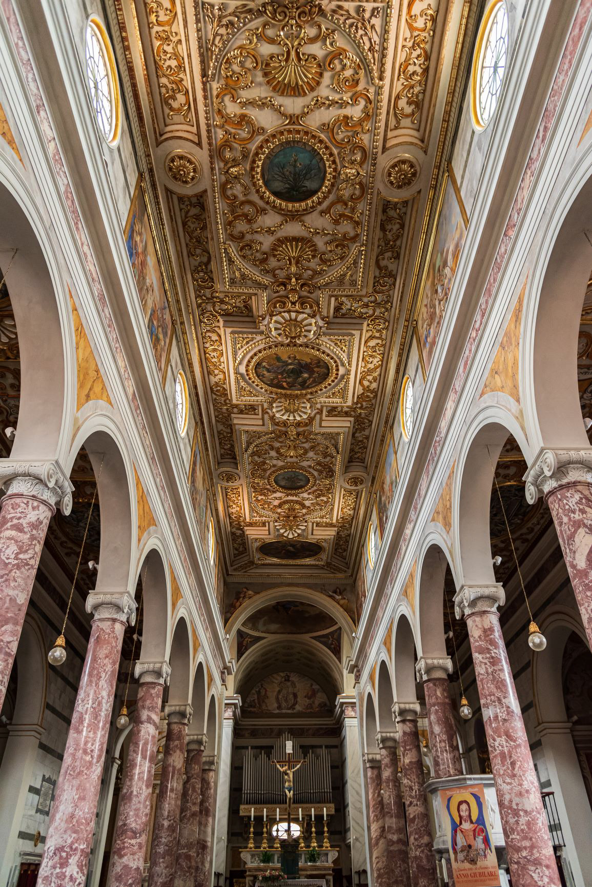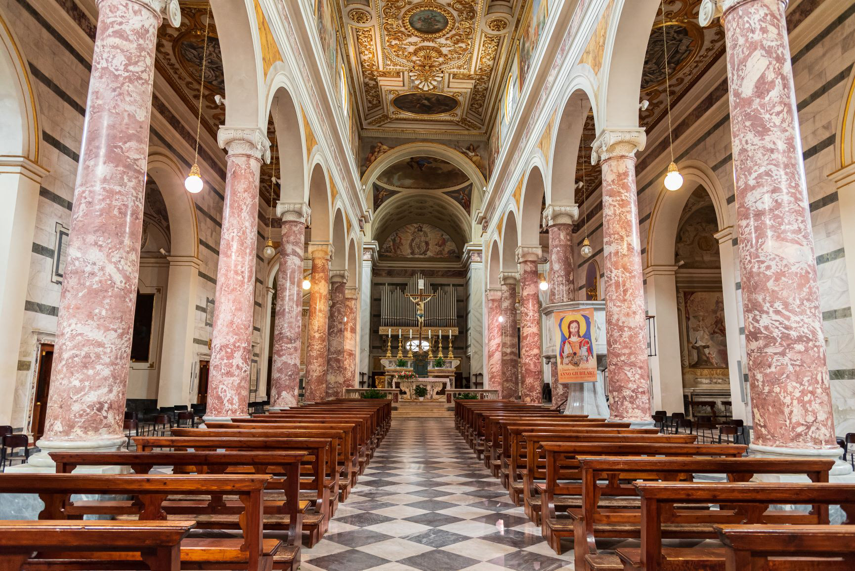 The church, with three naves, is built in white and green marble. It most likely dates back to the 6th century. It is one of the most important examples of religious architecture between the twelfth and fifteenth centuries in the region, with an elegant passage inside it between the large Romanesque-Lombard arches and the impetus of Gothic in the transept, most likely designed by the famous Giovanni Pisano , which inside will create a wooden crucifix and his last masterpiece, the Madonna della Cintola, in 1317. The relic of the sacred Cintola is kept there. The most important works are the external pulpit (built by Michelozzo and decorated by Donatello), the internal pulpit by Mino da Fiesole and Antonio Rossellino from 1472, the Madonna dell'Ulivo, the only work created together by the famous brothers Da Maiano, Giovanni, Benedetto and Giuliano. In the transept instead there are the frescoes by Filippo Lippi (in the Cappella Maggiore), one of the greatest expressions of the Italian Renaissance, the frescoes by Paolo Uccello (in the Cappella dell'Assunta), and by Agnolo Gaddi (in the Chapel of the sacred Cintola), all interior of a bronze gate made by some of the most important goldsmiths of the fifteenth century.