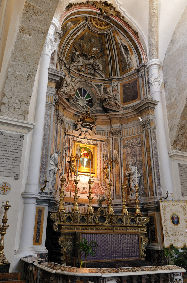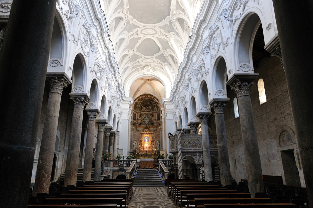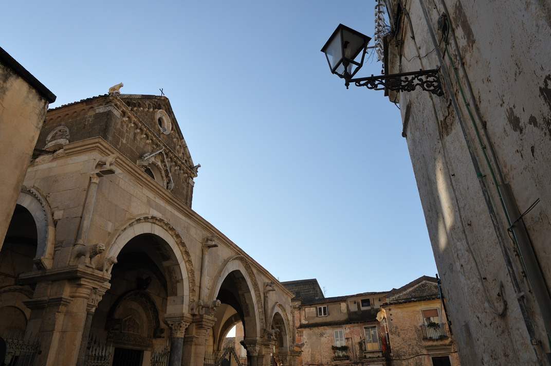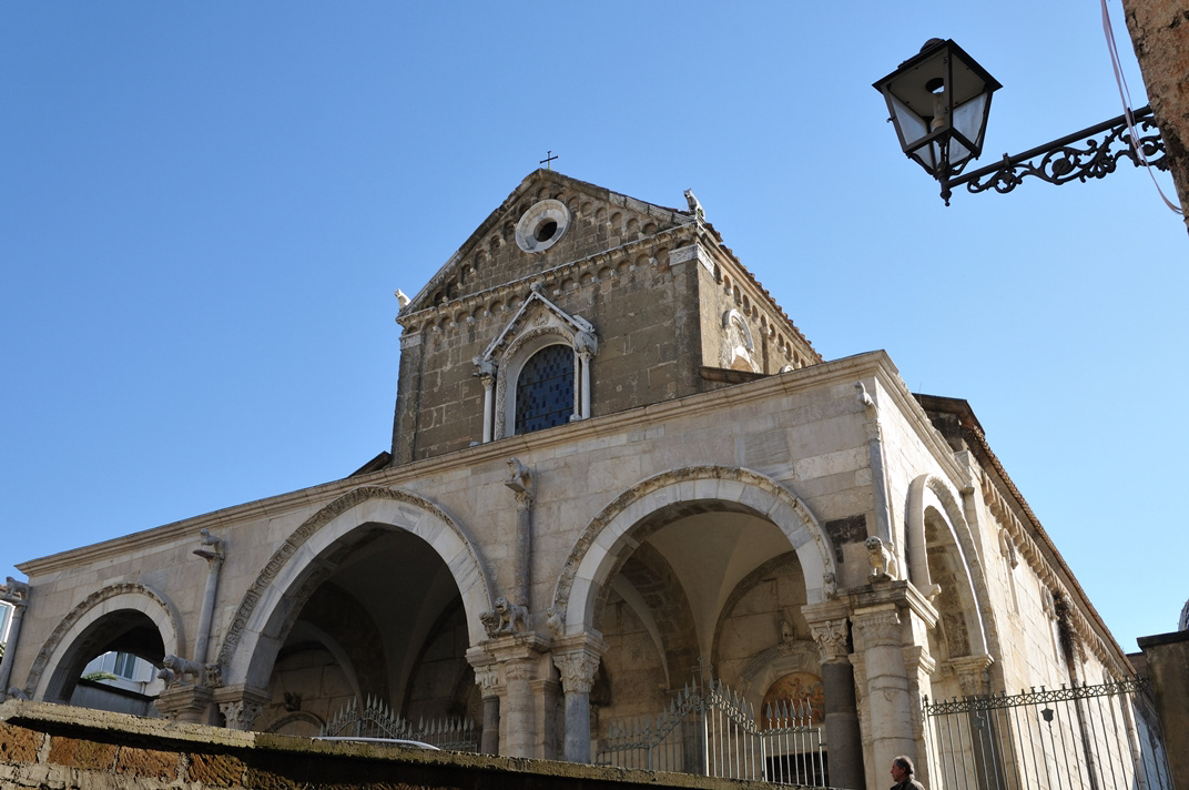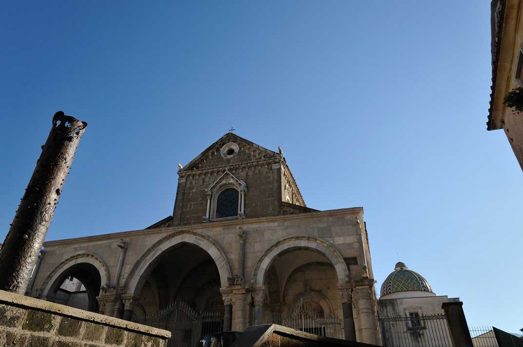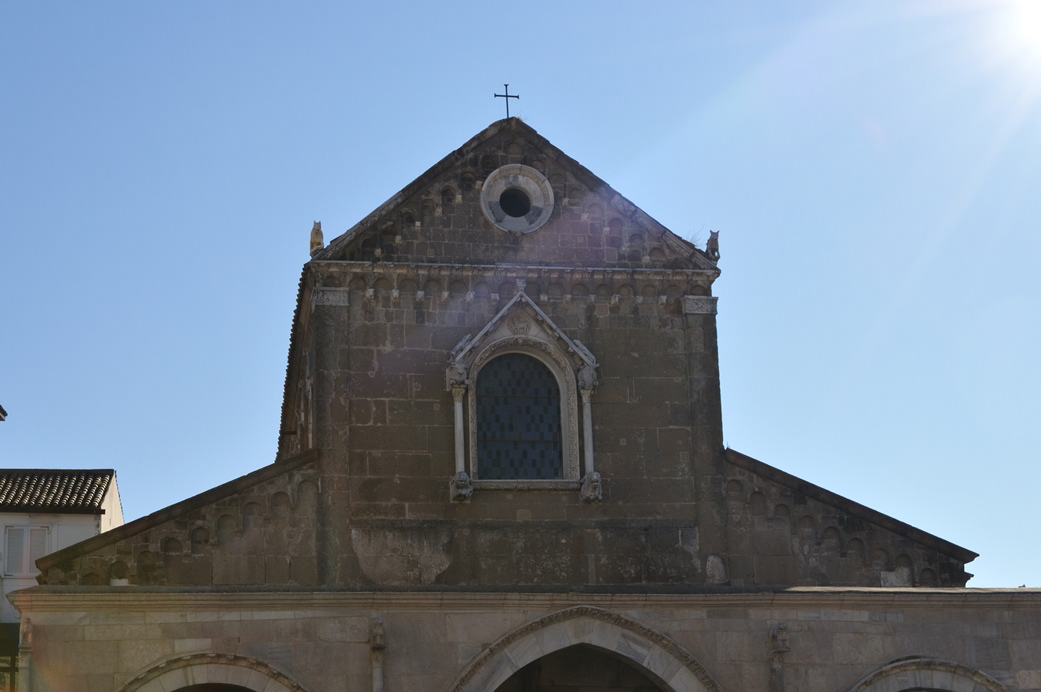 Construction was begun by probable workers of the Casauriense school (see portico of the abbey of S. Clemente a Casauria built between 1176 and 1180) in 1113, partly reusing materials from ancient Roman buildings, and consecrated in 1183; the current external appearance was achieved in the first half of the thirteenth century with the addition of the portico and the large window placed in the upper part of the facade. The interior, on the other hand, having eliminated the trussed ceiling already in the thirteenth century, remained Romanesque until the mid-eighteenth century when the bishop Francesco Caracciolo d'Altamura decided to modernize it according to the tastes and style of the time, namely the Baroque. In July 1929, Pope Pius XI elevated it to the dignity of a minor basilica.