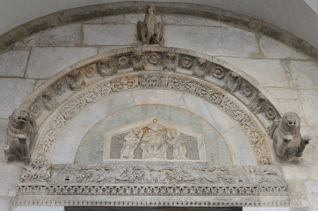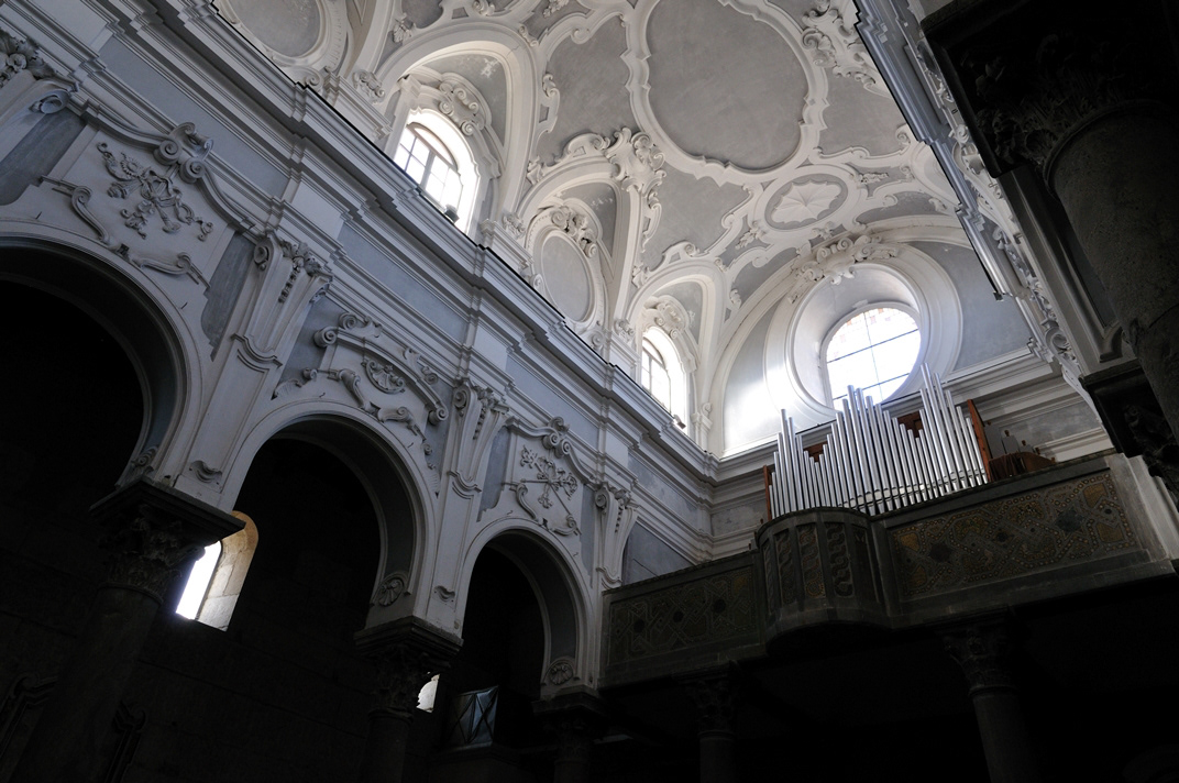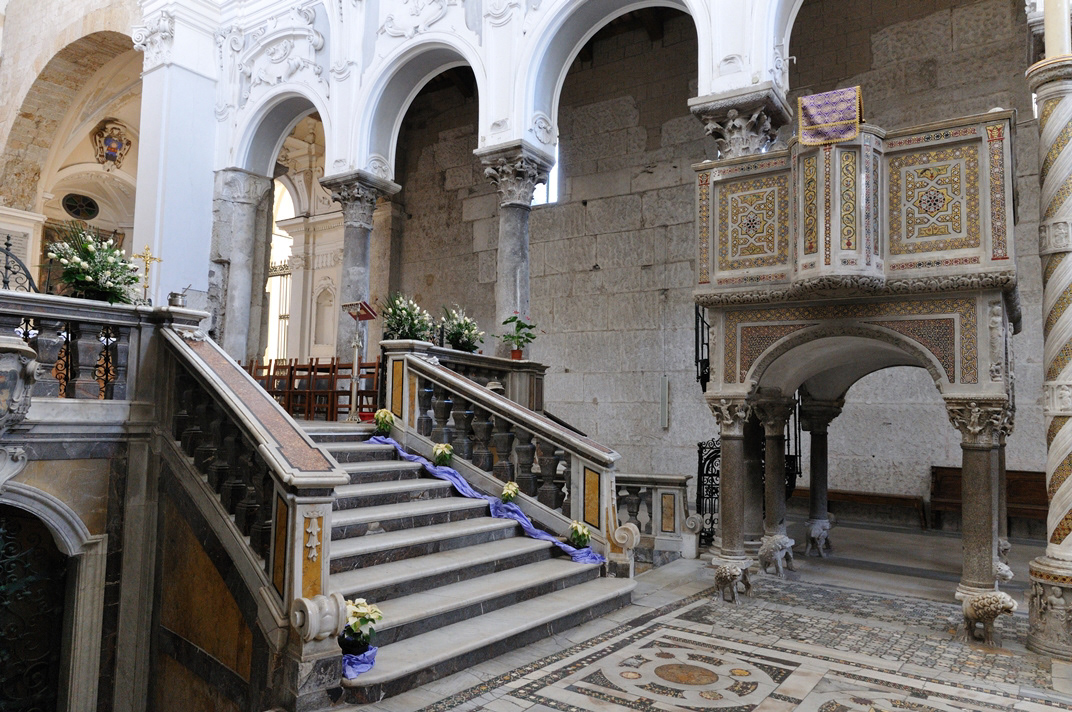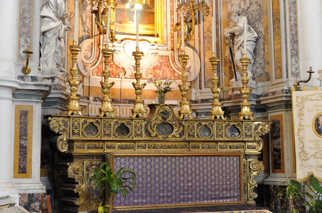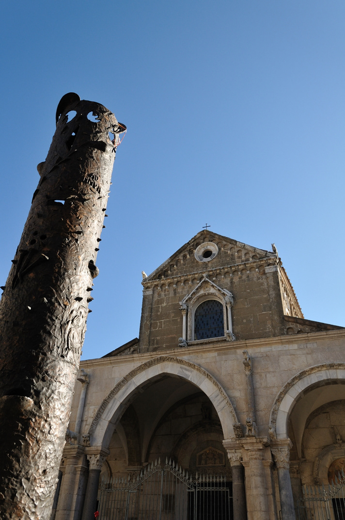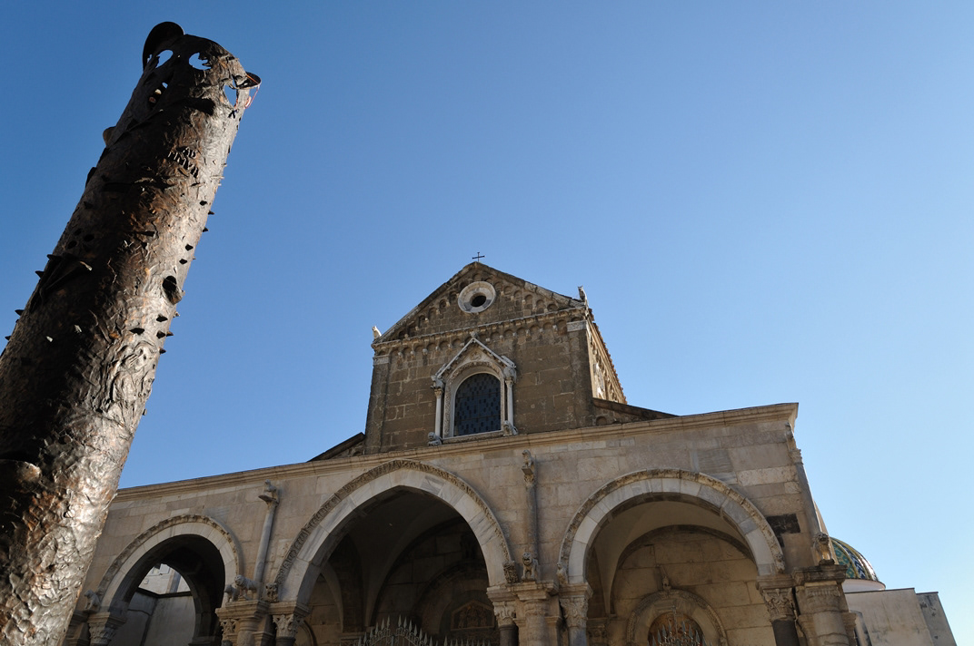 Construction was begun by probable workers of the Casauriense school (see portico of the abbey of S. Clemente a Casauria built between 1176 and 1180) in 1113, partly reusing materials from ancient Roman buildings, and consecrated in 1183; the current external appearance was achieved in the first half of the thirteenth century with the addition of the portico and the large window placed in the upper part of the facade. The interior, on the other hand, having eliminated the trussed ceiling already in the thirteenth century, remained Romanesque until the mid-eighteenth century when the bishop Francesco Caracciolo d'Altamura decided to modernize it according to the tastes and style of the time, namely the Baroque. In July 1929, Pope Pius XI elevated it to the dignity of a minor basilica.