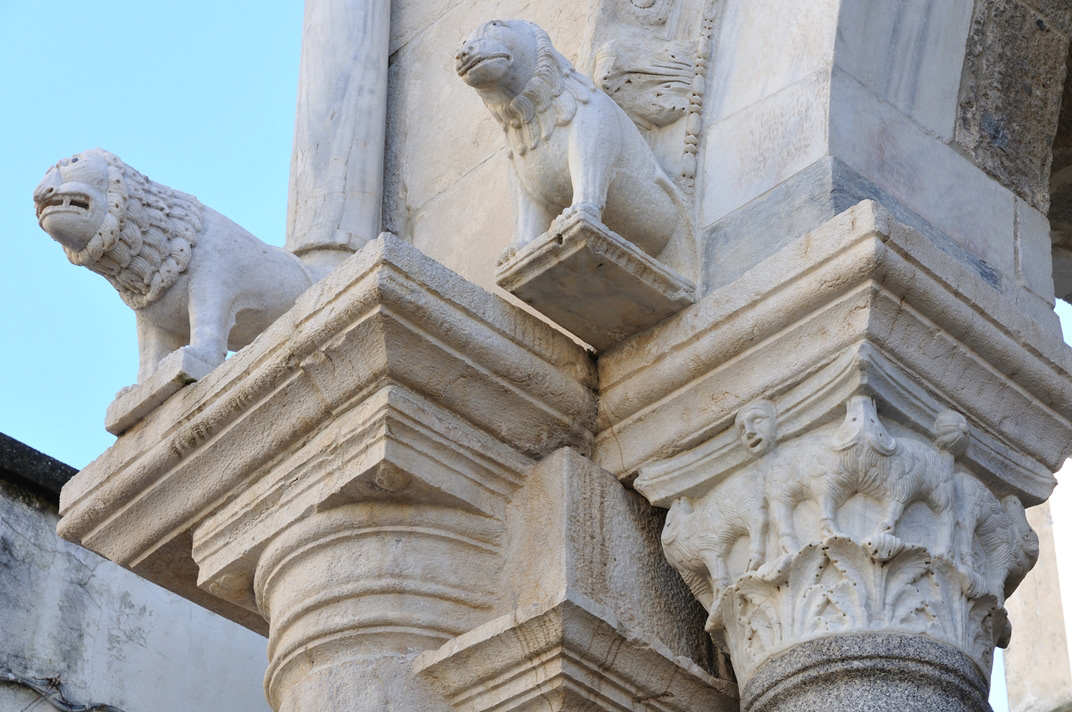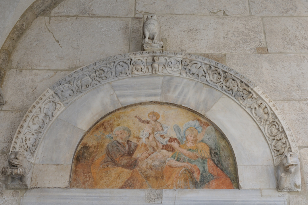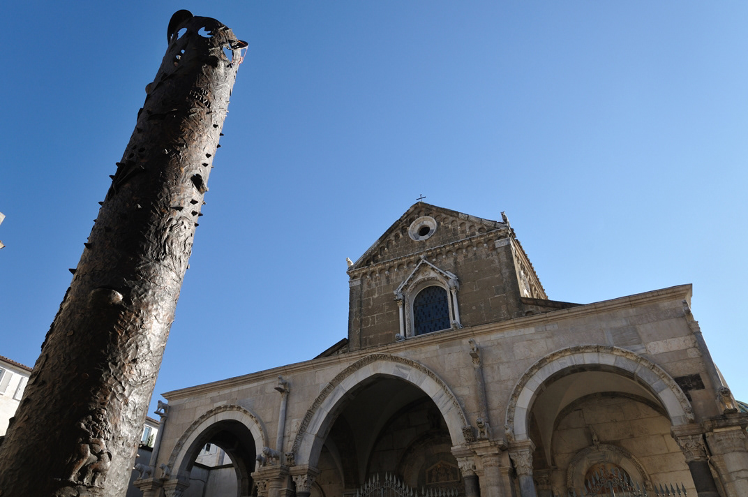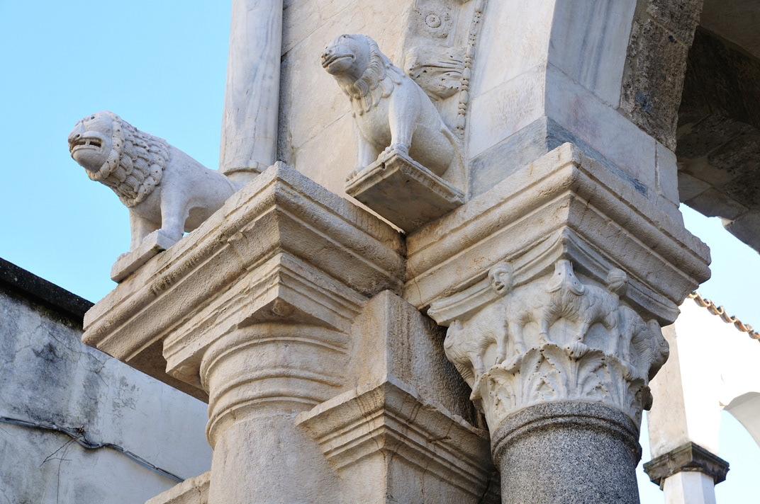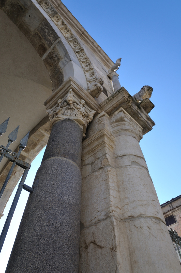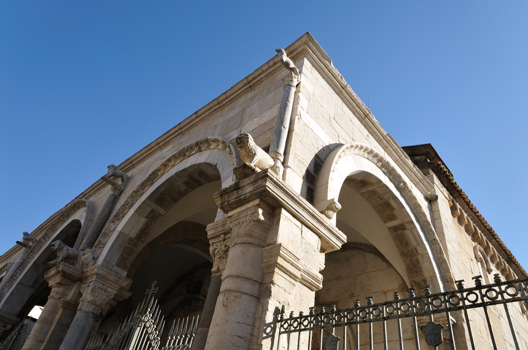 Construction was begun by probable workers of the Casauriense school (see portico of the abbey of S. Clemente a Casauria built between 1176 and 1180) in 1113, partly reusing materials from ancient Roman buildings, and consecrated in 1183; the current external appearance was achieved in the first half of the thirteenth century with the addition of the portico and the large window placed in the upper part of the facade. The interior, on the other hand, having eliminated the trussed ceiling already in the thirteenth century, remained Romanesque until the mid-eighteenth century when the bishop Francesco Caracciolo d'Altamura decided to modernize it according to the tastes and style of the time, namely the Baroque. In July 1929, Pope Pius XI elevated it to the dignity of a minor basilica.