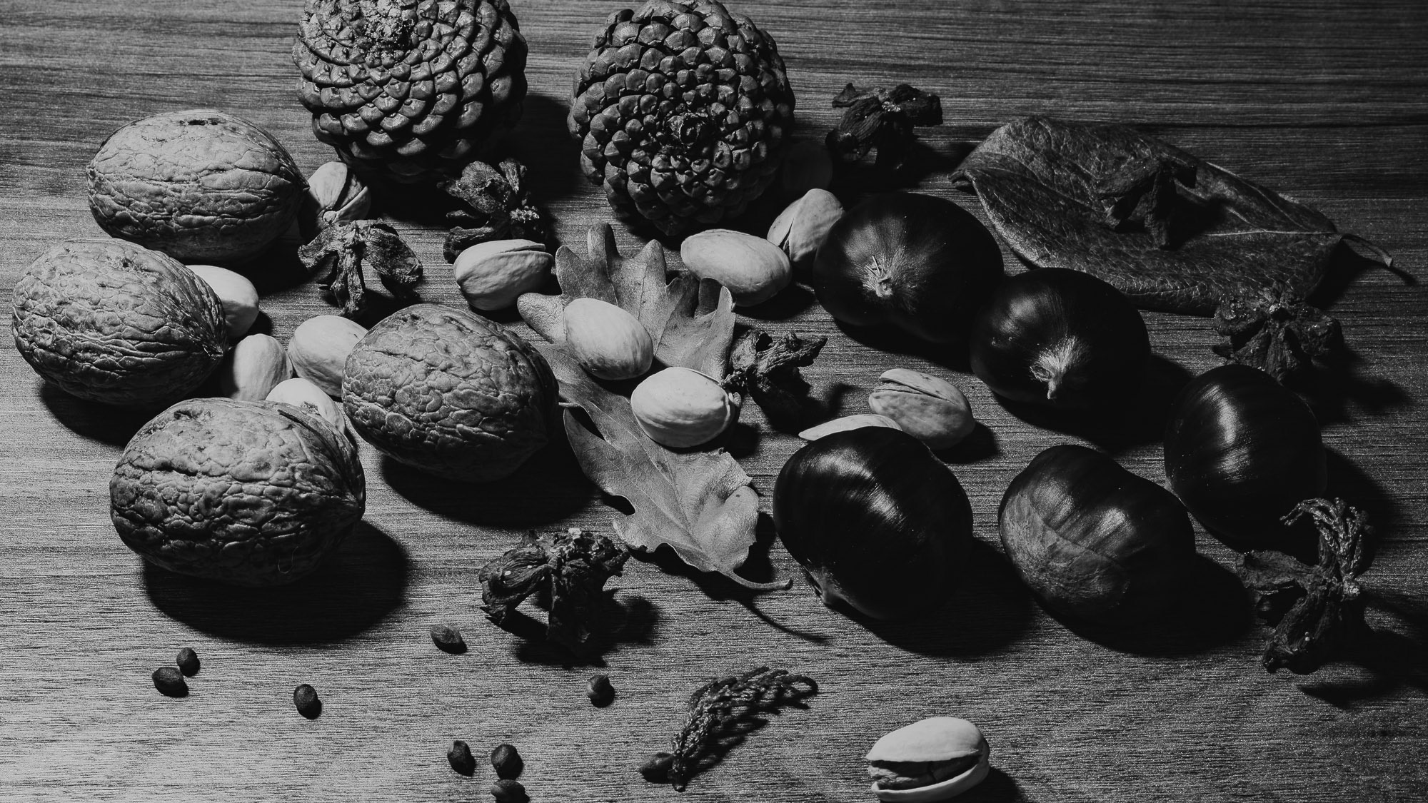 Still life of chestnuts and walnuts