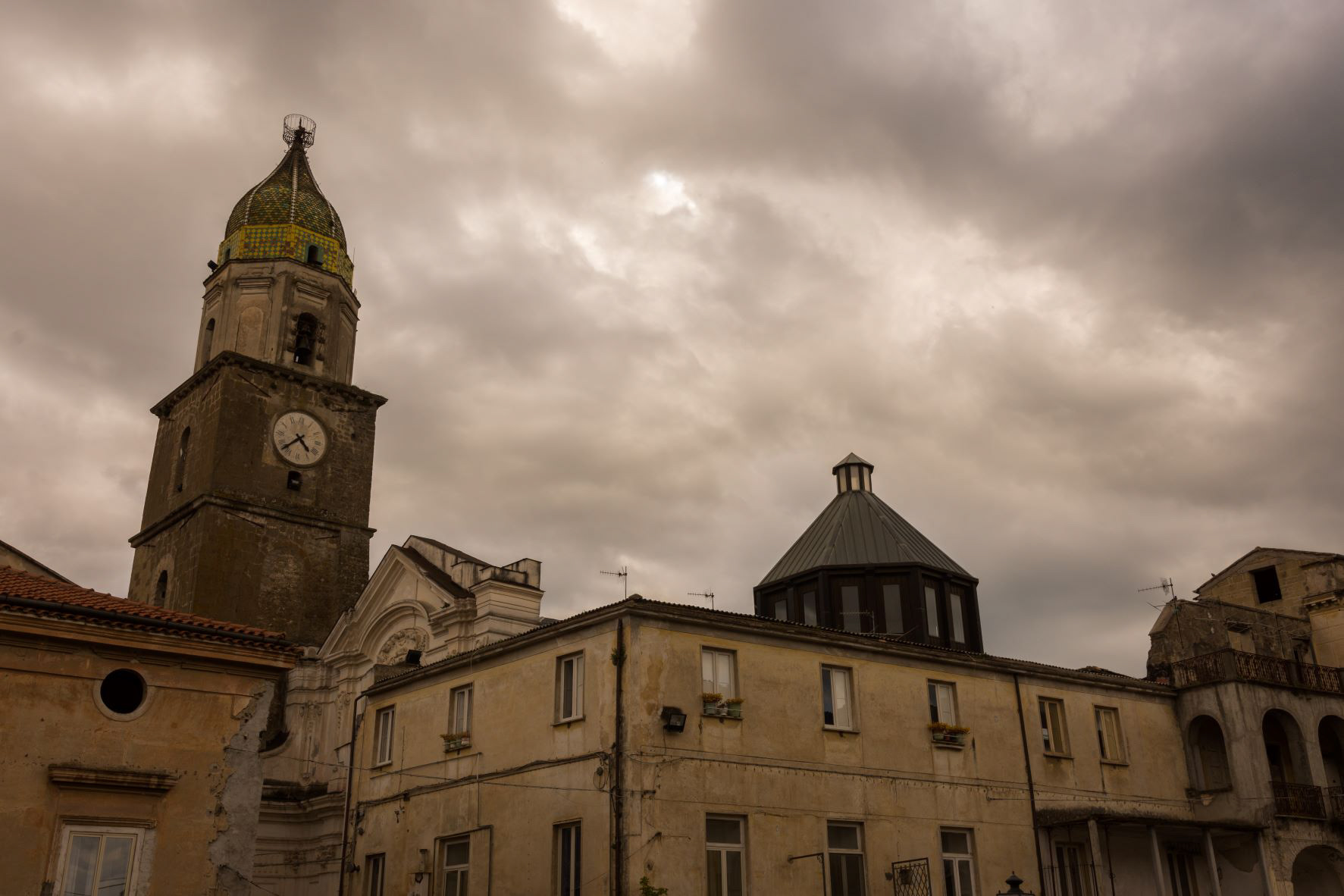 The cathedral, originally dedicated to San Terenziano, was later named after San Clemente. Construction began in 1050 by Bishop Guglielmo, to replace the old cathedral of San Paride ad Fontem, located outside the city walls. The works were completed in 1116 by Bishop Pandulfo. The building has a basilica structure divided into three naves by two rows of columns. In 1608 it was damaged internally by a fire that almost completely destroyed the cosmates ambo, subsequently recomposed using the remains of the previous one integrated with the marble slabs of a fourteenth-century sepulchral monument already present in the church and positioned on twisted columns, two of which rested on fountain lions. During the 16th century the Romanesque apse was modified and on that occasion a precious carved wooden choir was built in the presbytery, built in 1539 by the Benedictine Antonio Maria Sertorio. The choir underwent two restorations, the first in the 17th century and the second in 1957, following the damage suffered during the Second World War.