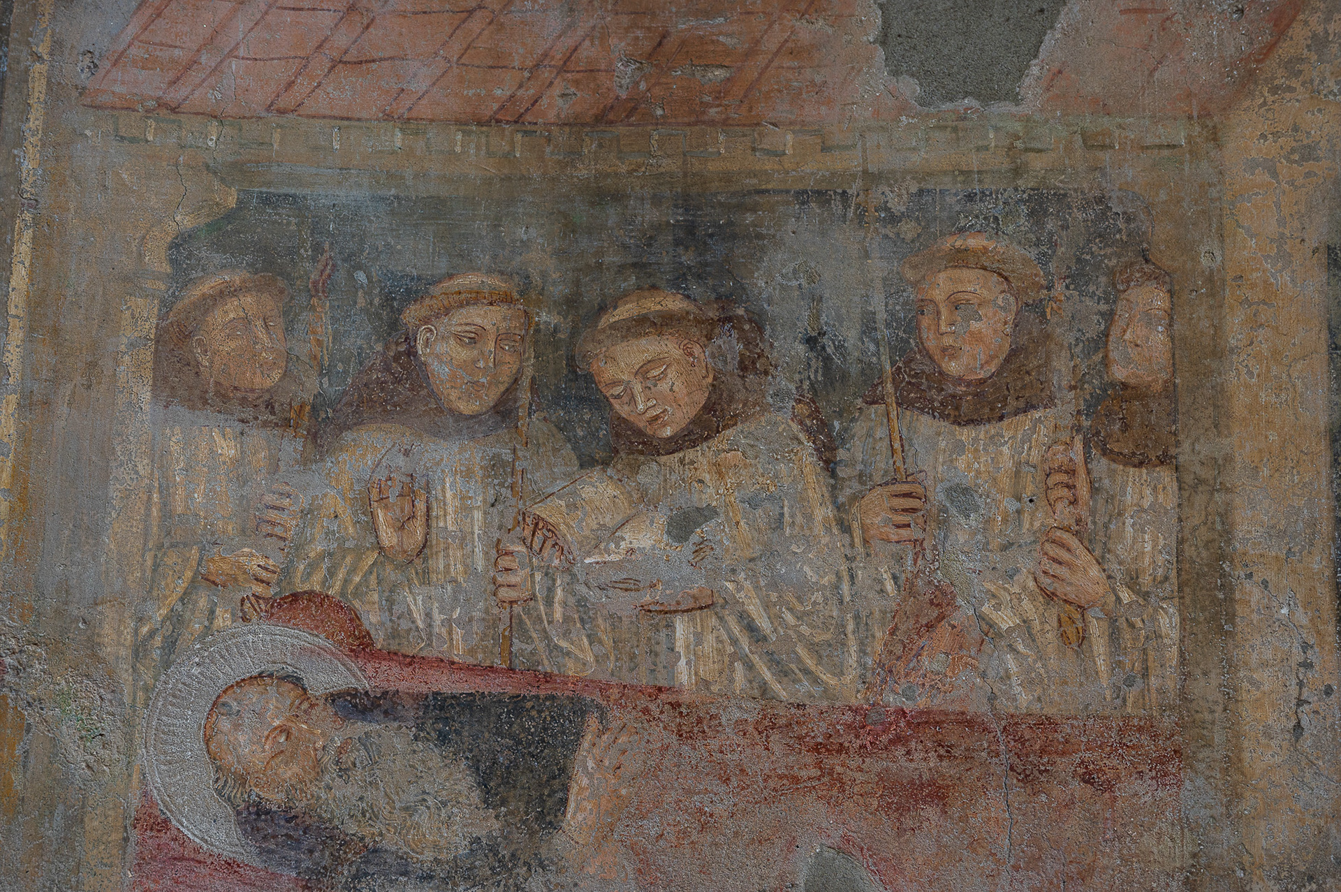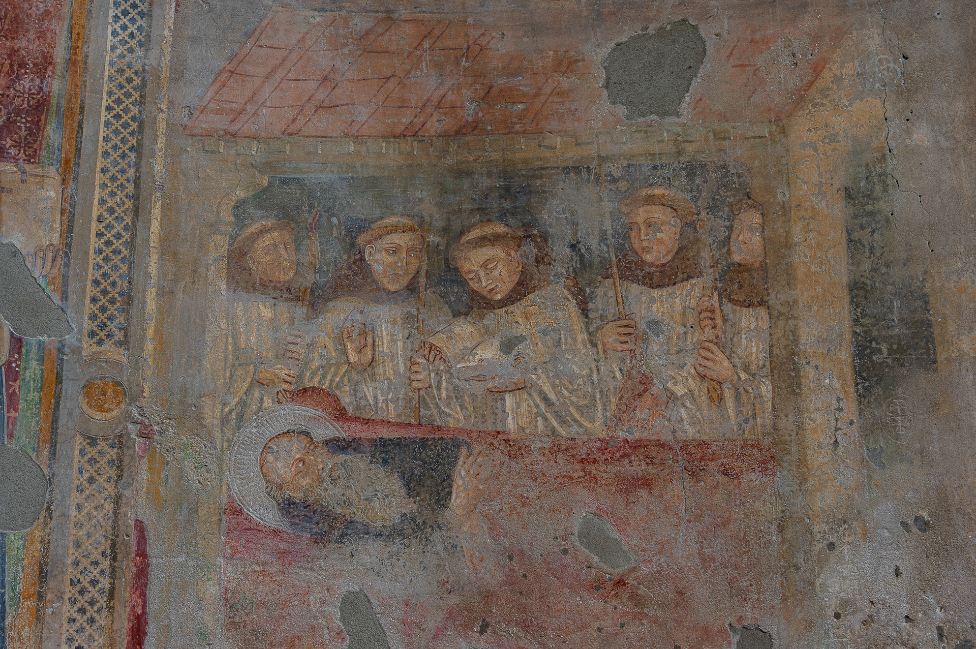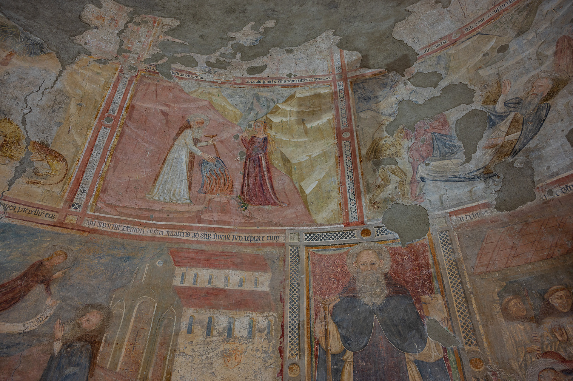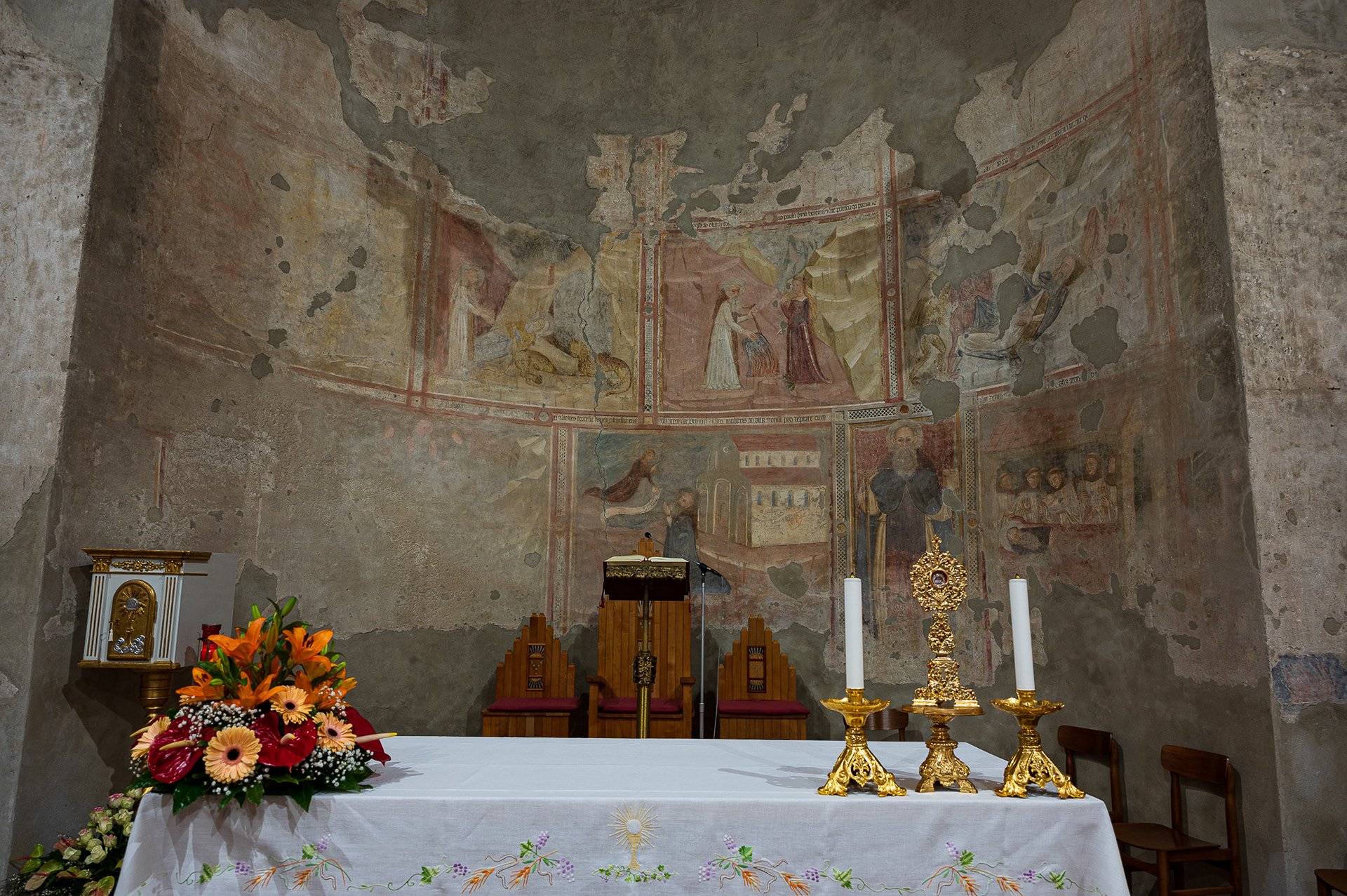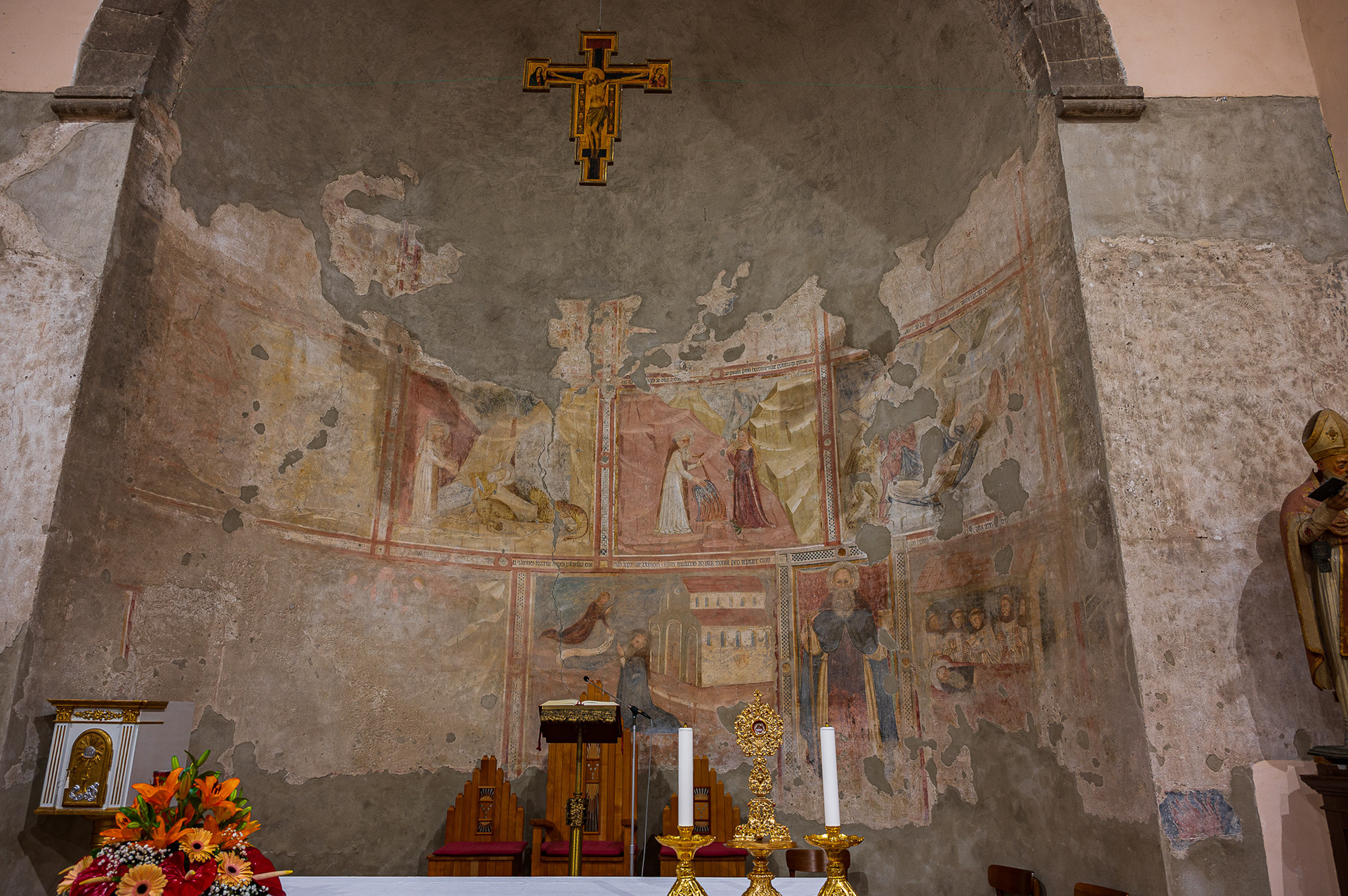 Dating back to the 14th century, the Church is made up of a single rectangular nave and a semicircular apse, the latter frescoed with episodes from the life of the Saint.