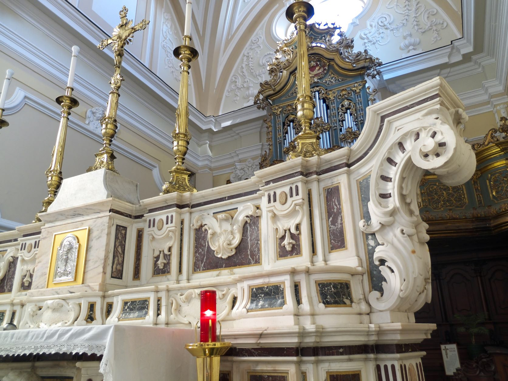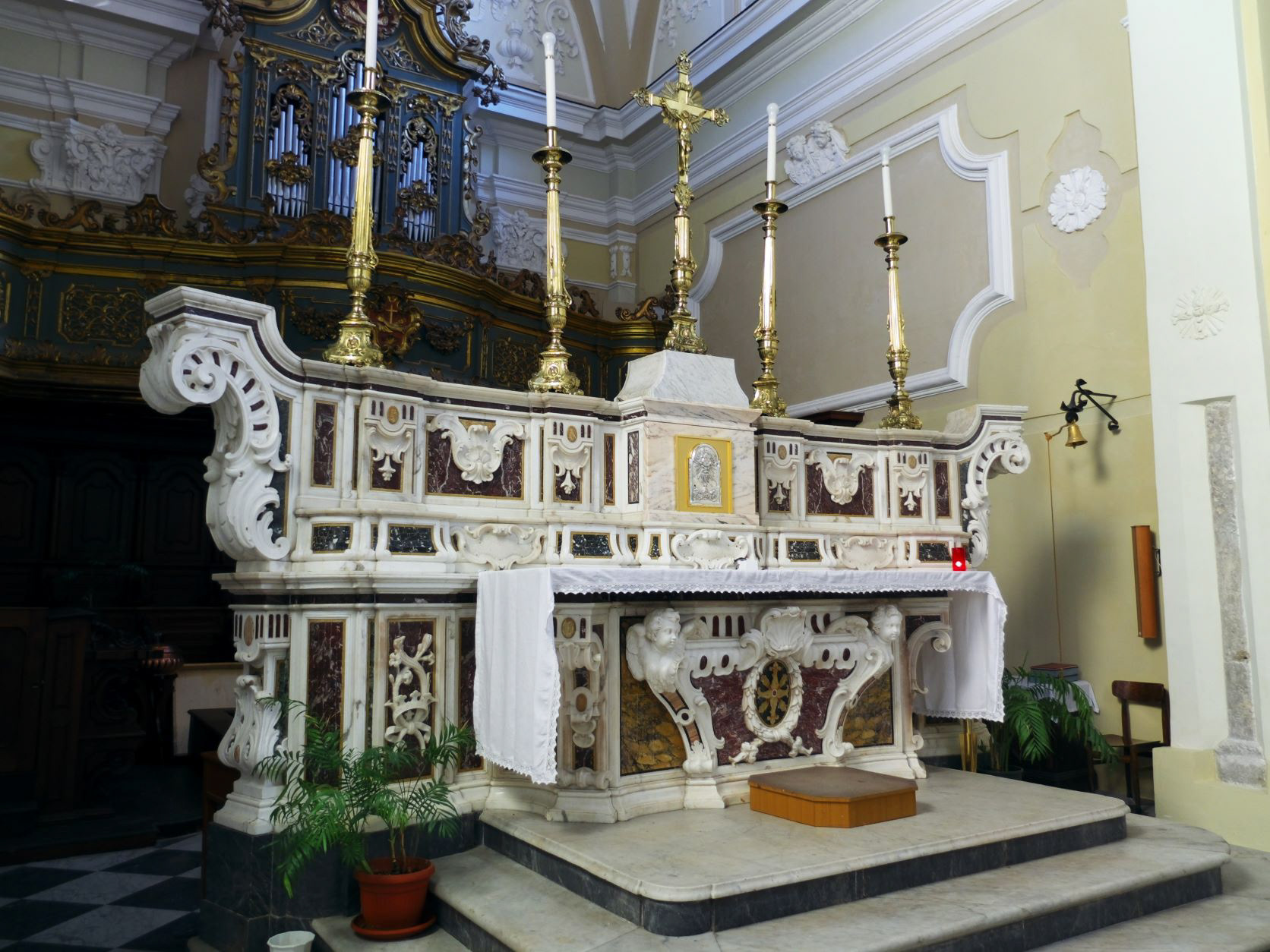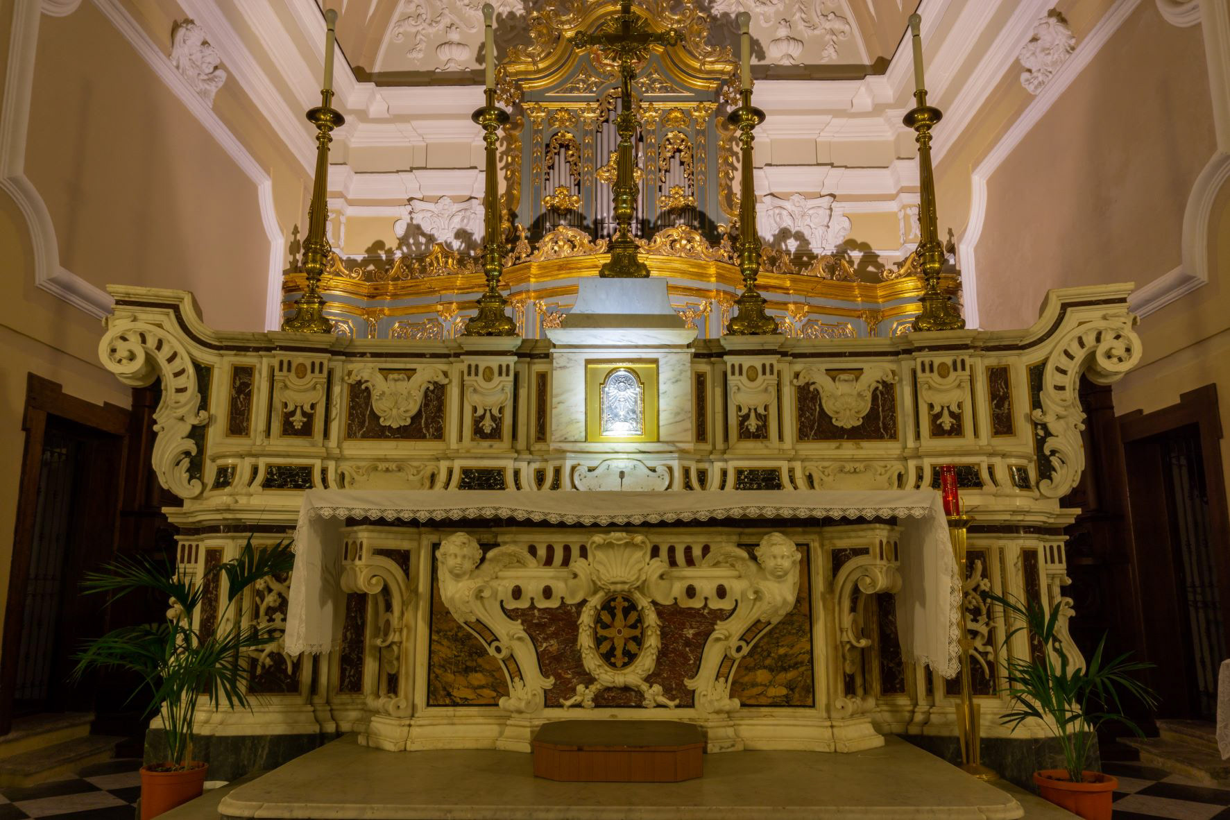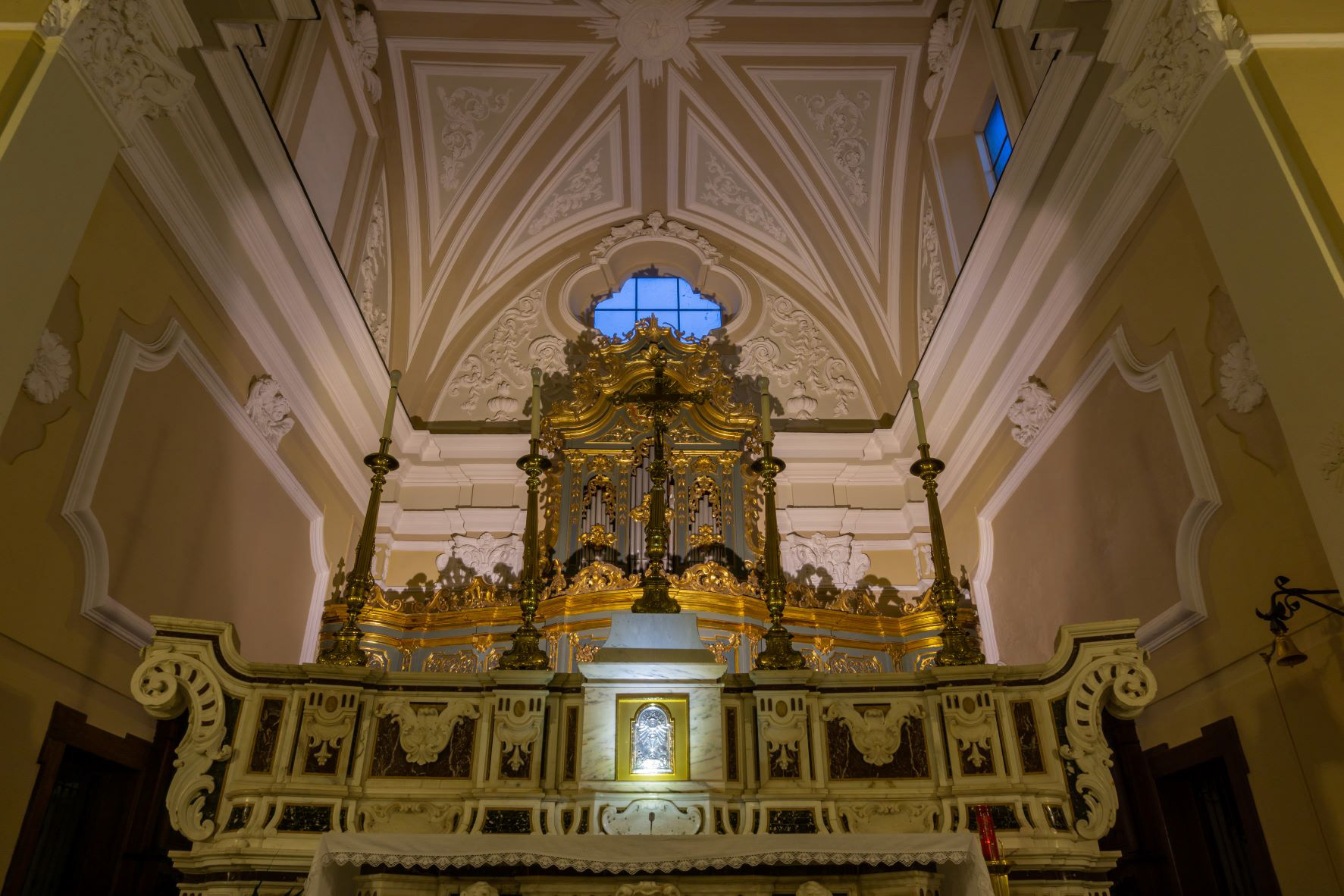 Built in the fourteenth century, in Gothic style, by the Conventual Minors it was extensively remodeled in the Baroque age. The magnificent gilded wooden ceiling with one hundred finely carved coffers, with outlines decorated with wreaths of painted roses, for the splendor of the gilded mass wins the comparison with many other similar works. The panel in the center of the ceiling (St. Francis and the council), in which the popes Pius XII, John XXIII and Paul VI and the late bishop of Teano Mons. Sperandeo are depicted, is a modern work by Augusto De Rose. On the entrance door there is a large canvas of the Immaculate Conception by Girolamo Cenatiempo (first half of the 18th century).