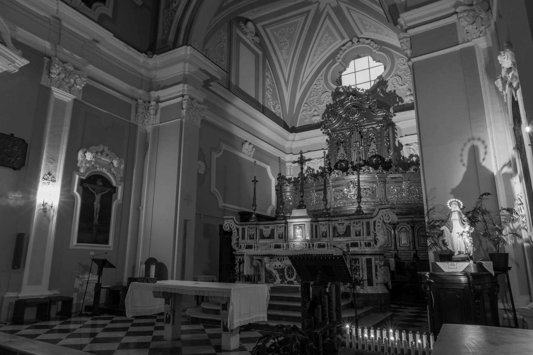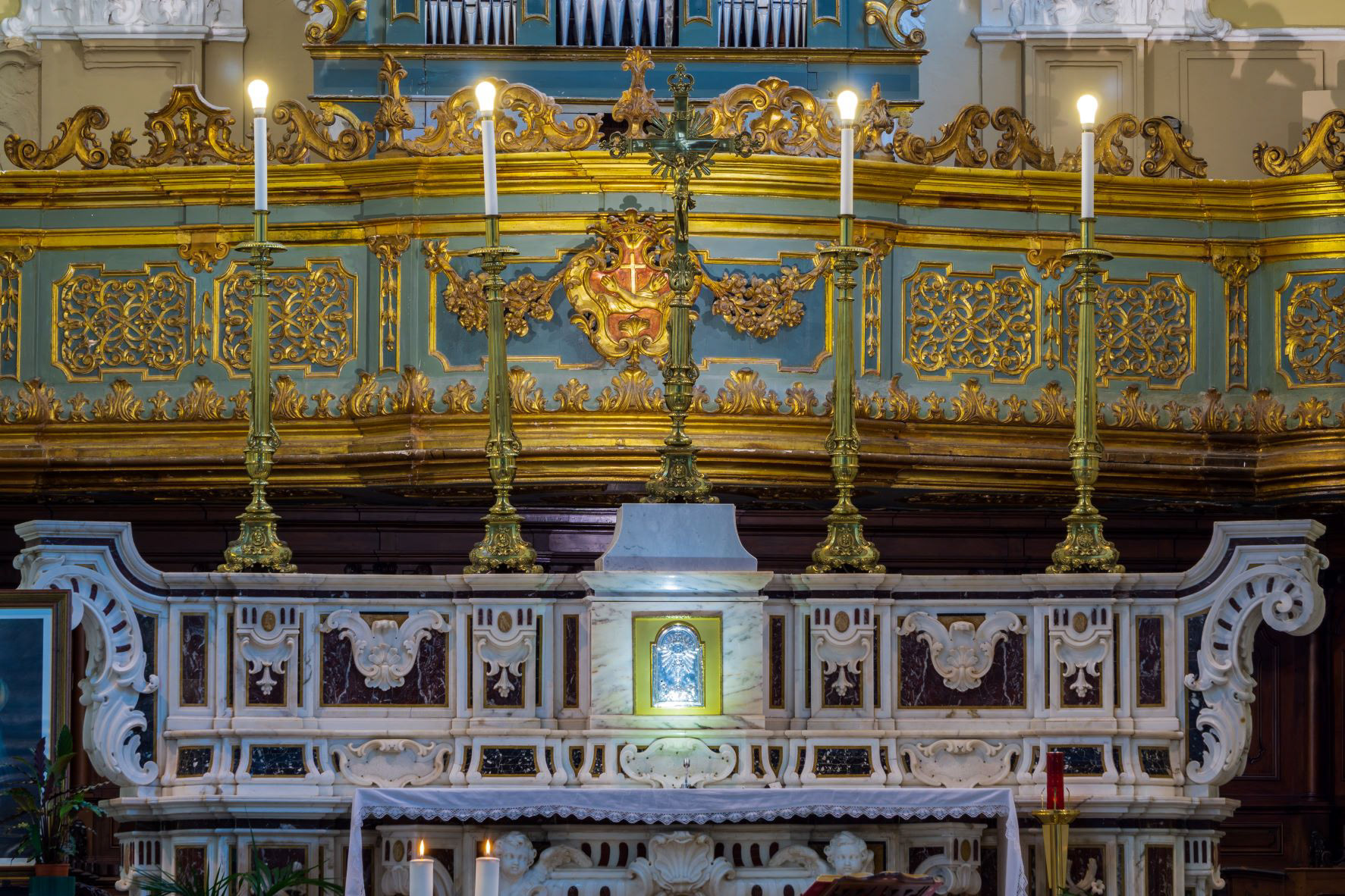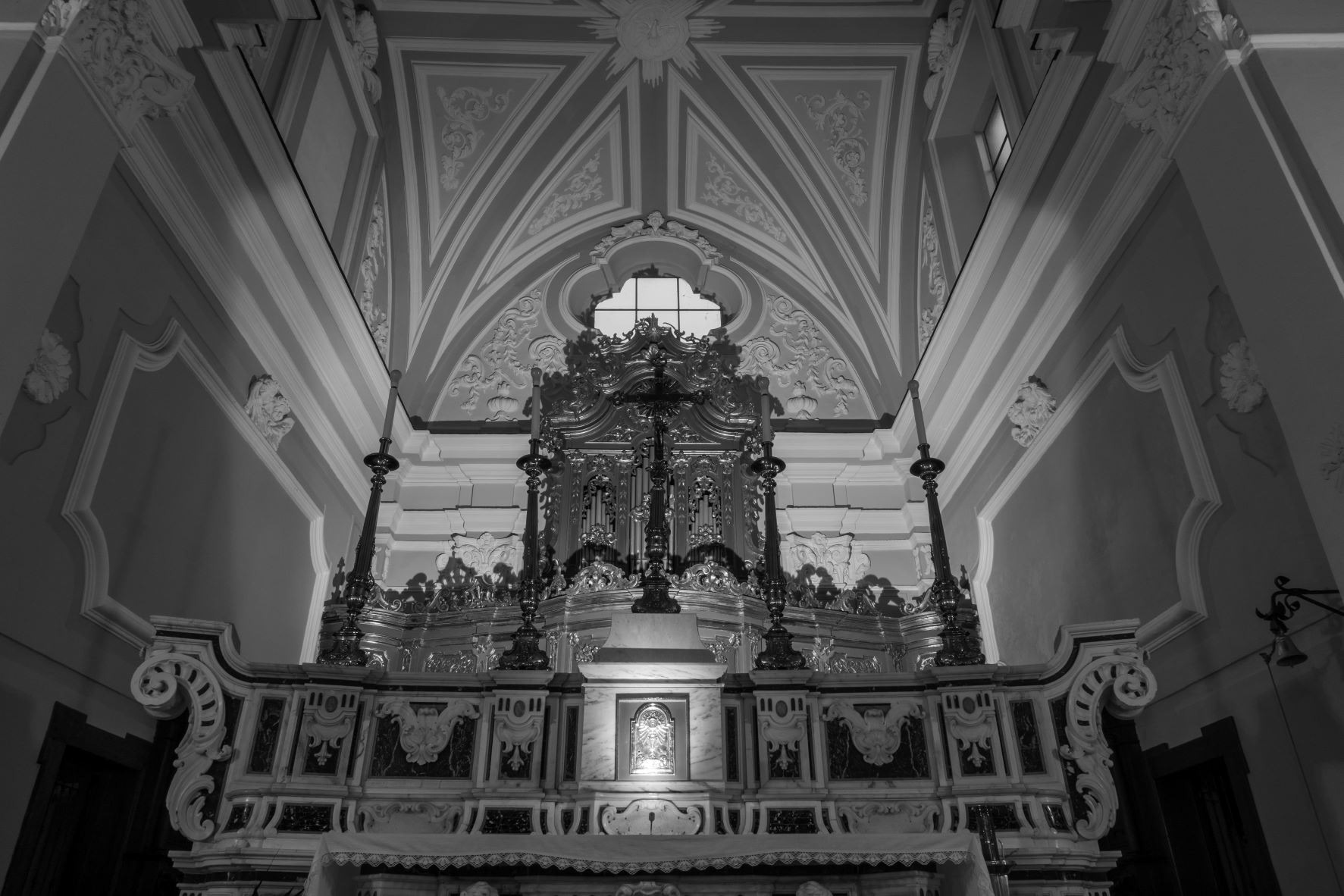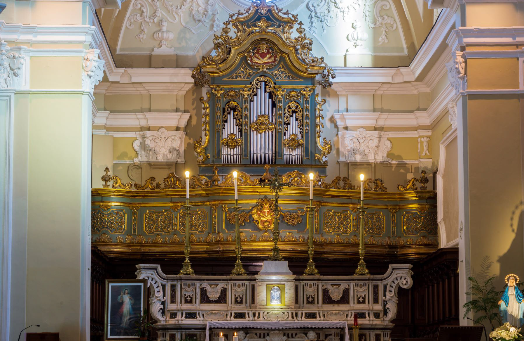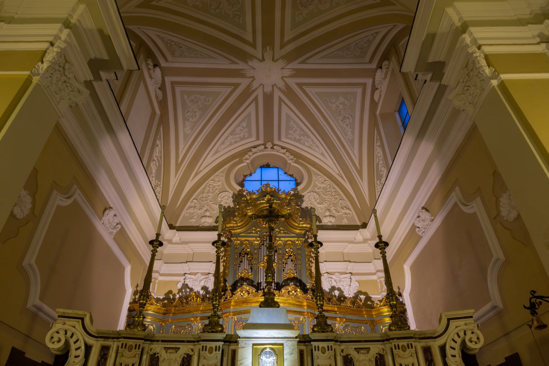 Built in the fourteenth century, in Gothic style, by the Conventual Minors it was extensively remodeled in the Baroque age. The magnificent gilded wooden ceiling with one hundred finely carved coffers, with outlines decorated with wreaths of painted roses, for the splendor of the gilded mass wins the comparison with many other similar works. The panel in the center of the ceiling (St. Francis and the council), in which the popes Pius XII, John XXIII and Paul VI and the late bishop of Teano Mons. Sperandeo are depicted, is a modern work by Augusto De Rose. On the entrance door there is a large canvas of the Immaculate Conception by Girolamo Cenatiempo (first half of the 18th century).