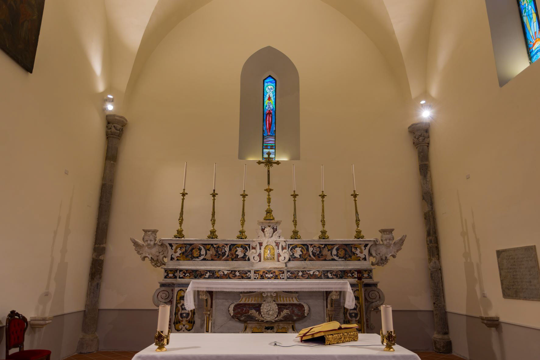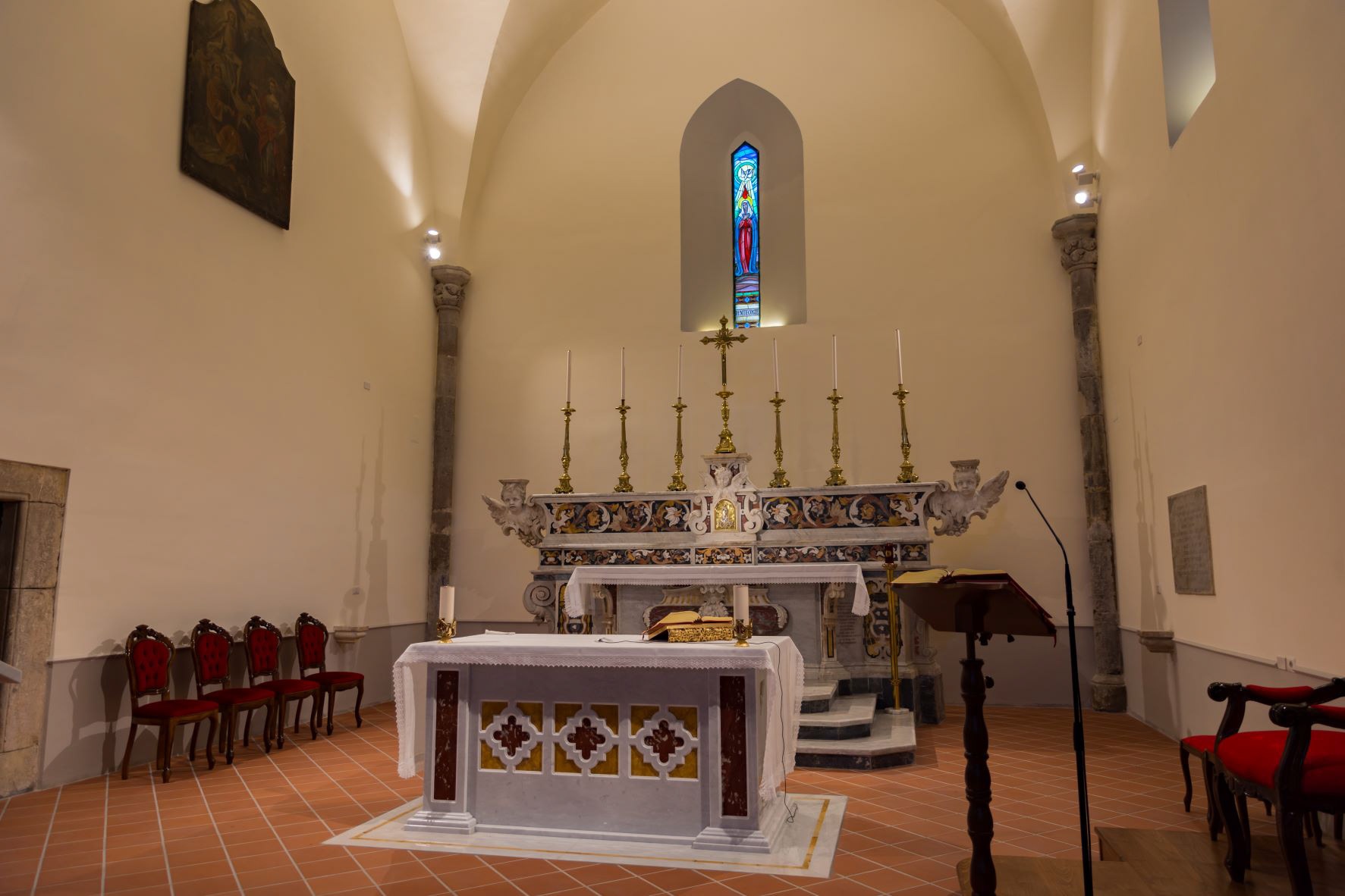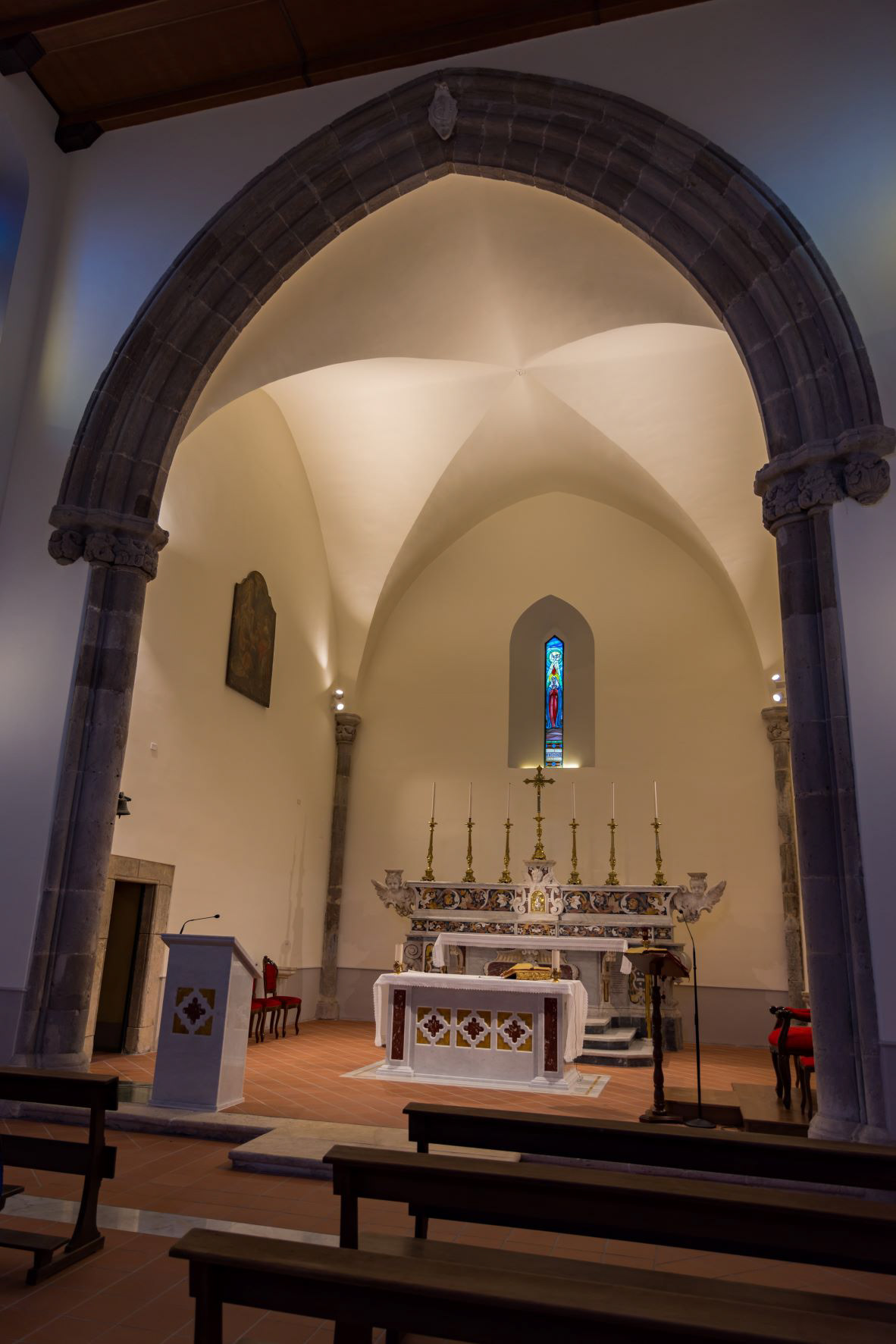 Dating back to the 14th century, the Church is made up of a single rectangular nave and a semicircular apse, the latter frescoed with episodes from the life of the Saint.