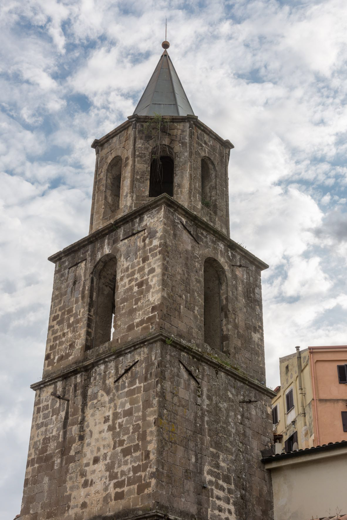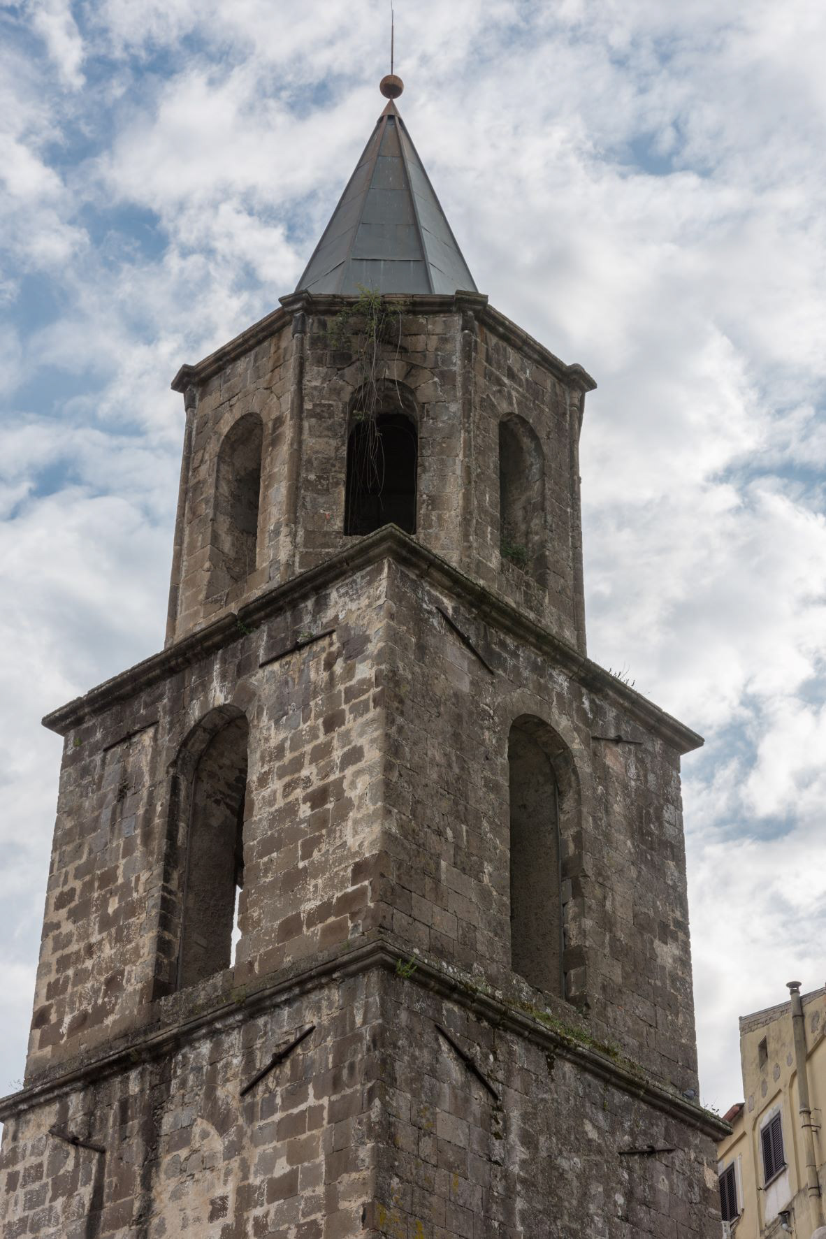 The cathedral, originally dedicated to San Terenziano, was later named after San Clemente. Construction began in 1050 by Bishop Guglielmo, to replace the old cathedral of San Paride ad Fontem, located outside the city walls. The works were completed in 1116 by Bishop Pandulfo. The building has a basilica structure divided into three naves by two rows of columns. In 1608 it was damaged internally by a fire that almost completely destroyed the cosmates ambo, subsequently recomposed using the remains of the previous one integrated with the marble slabs of a fourteenth-century sepulchral monument already present in the church and positioned on twisted columns, two of which rested on fountain lions. During the 16th century the Romanesque apse was modified and on that occasion a precious carved wooden choir was built in the presbytery, built in 1539 by the Benedictine Antonio Maria Sertorio. The choir underwent two restorations, the first in the 17th century and the second in 1957, following the damage suffered during the Second World War.
