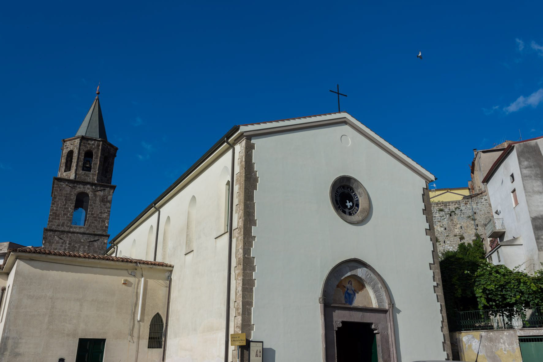 Built in the fourteenth century, in Gothic style, by the Conventual Minors it was extensively remodeled in the Baroque age. The magnificent gilded wooden ceiling with one hundred finely carved coffers, with outlines decorated with wreaths of painted roses, for the splendor of the gilded mass wins the comparison with many other similar works. The panel in the center of the ceiling (St. Francis and the council), in which the popes Pius XII, John XXIII and Paul VI and the late bishop of Teano Mons. Sperandeo are depicted, is a modern work by Augusto De Rose. On the entrance door there is a large canvas of the Immaculate Conception by Girolamo Cenatiempo (first half of the 18th century).